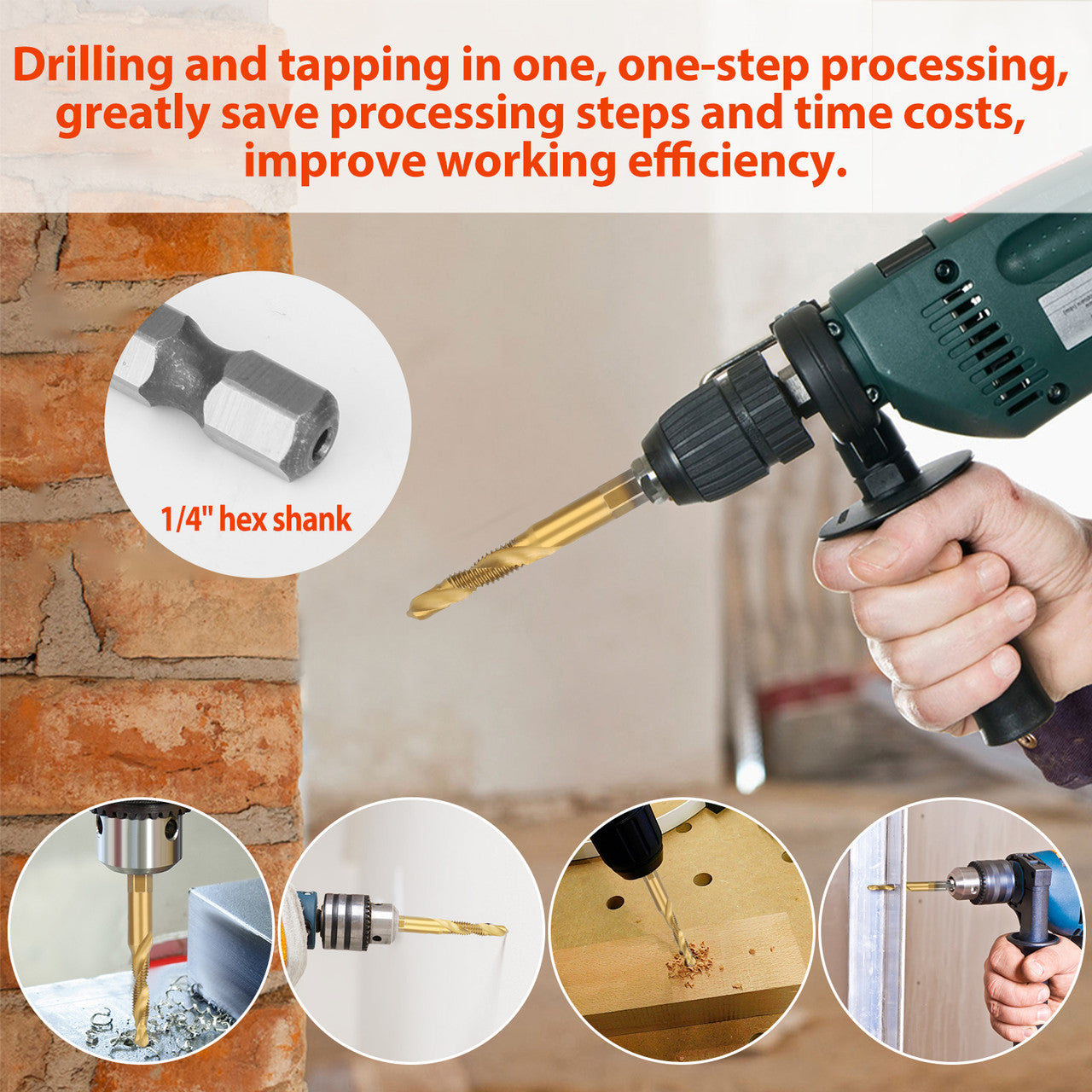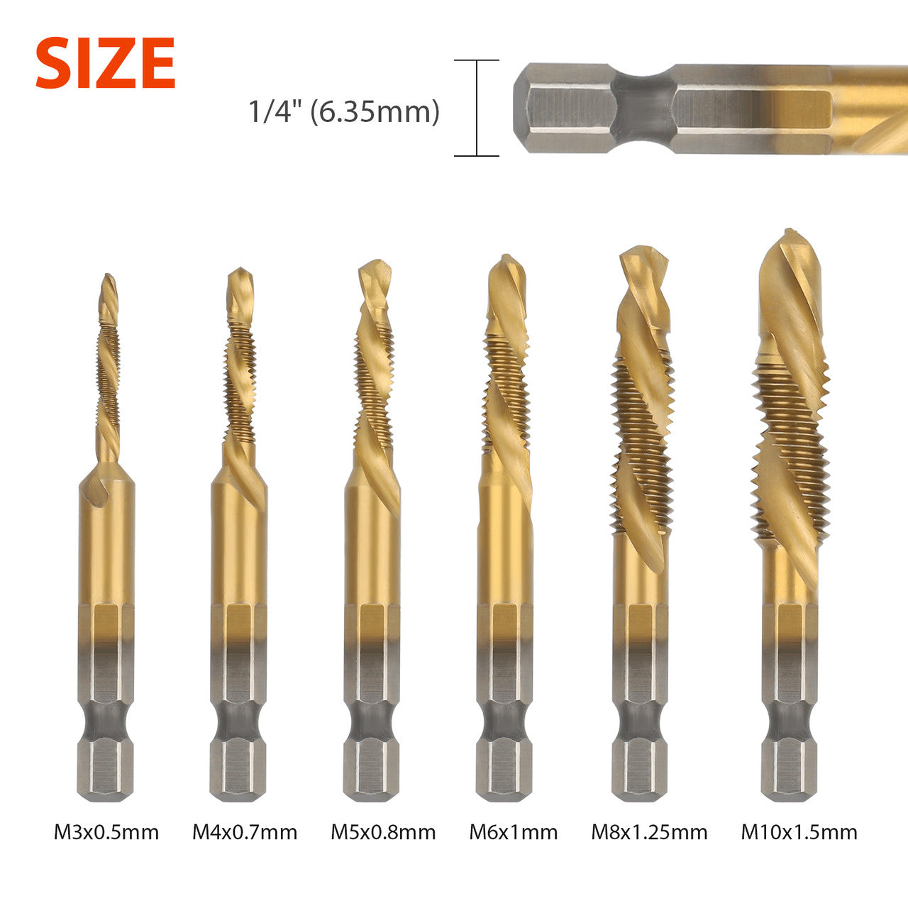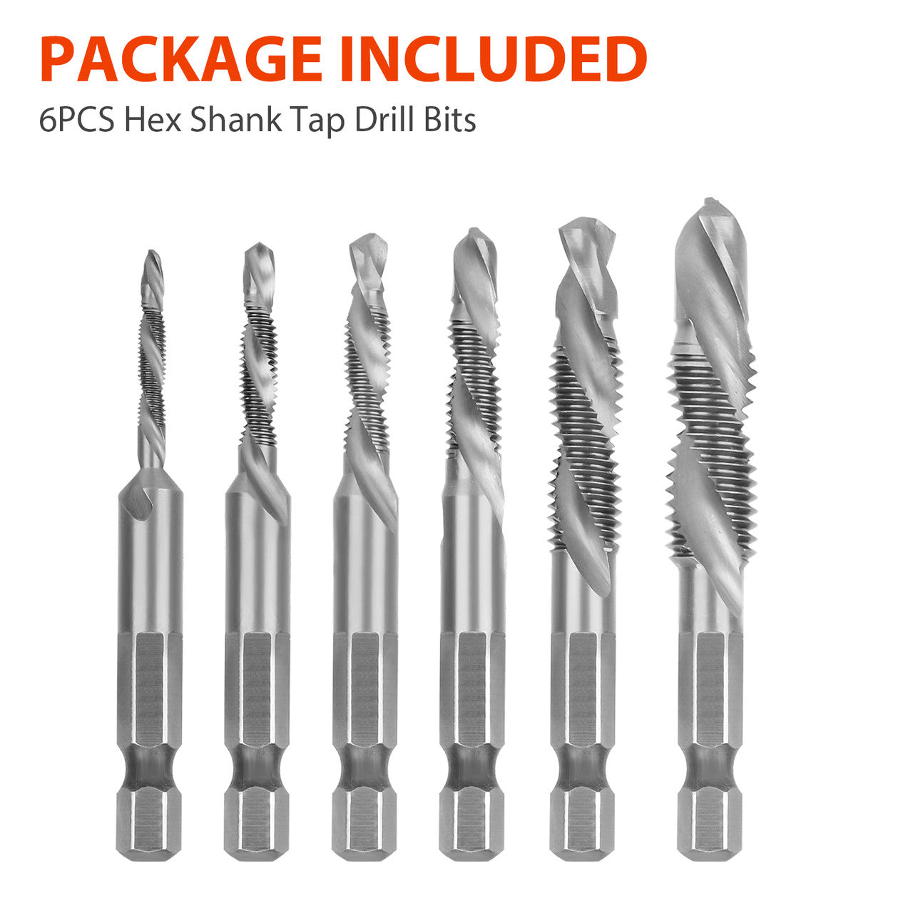 Drill and tap with ease with our 1/4 Inch Hex Shank HSS Drill Bit & Screw Tap Set. Includes 6 different hex shank tap drill bits so you can use the one that best fits your needs.
