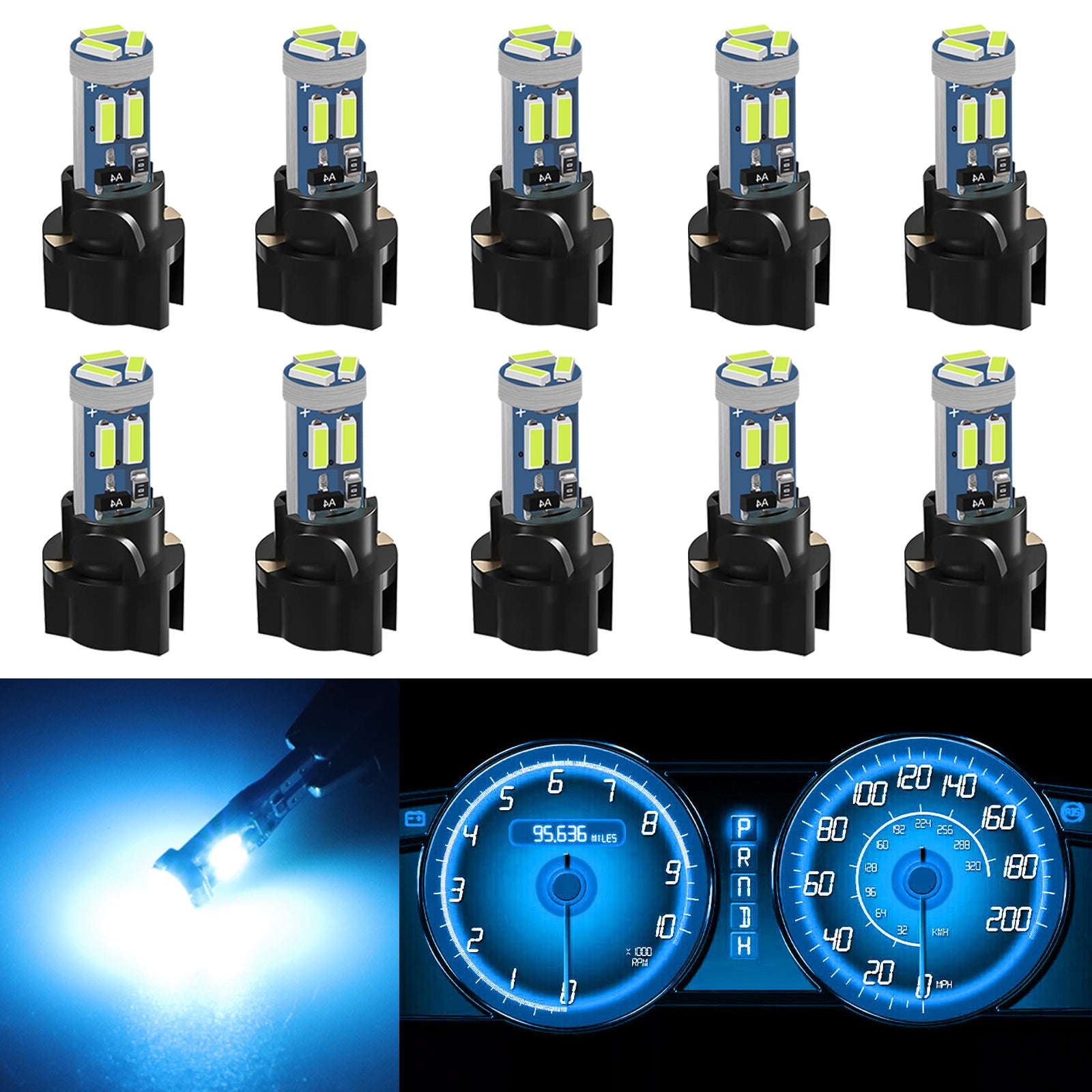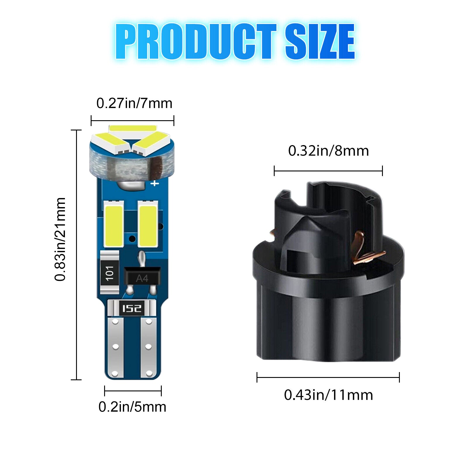 These bulbs feature a 7-SMD 4014 chipset design for uniform illumination and increased stability. They serve as a direct replacement for T5 wedge type sizes and are suitable for various applications, such as dashboard instrument panels, gauge clusters, indicators, map lights, and more. With easy installation and versatile usage, these LED bulbs are the perfect choice for enhancing your vehicle's lighting.