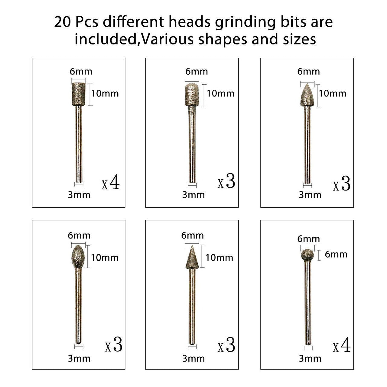 1 x Set Electroplated Diamond Grinding Burr Drill Bits(20Pcs)