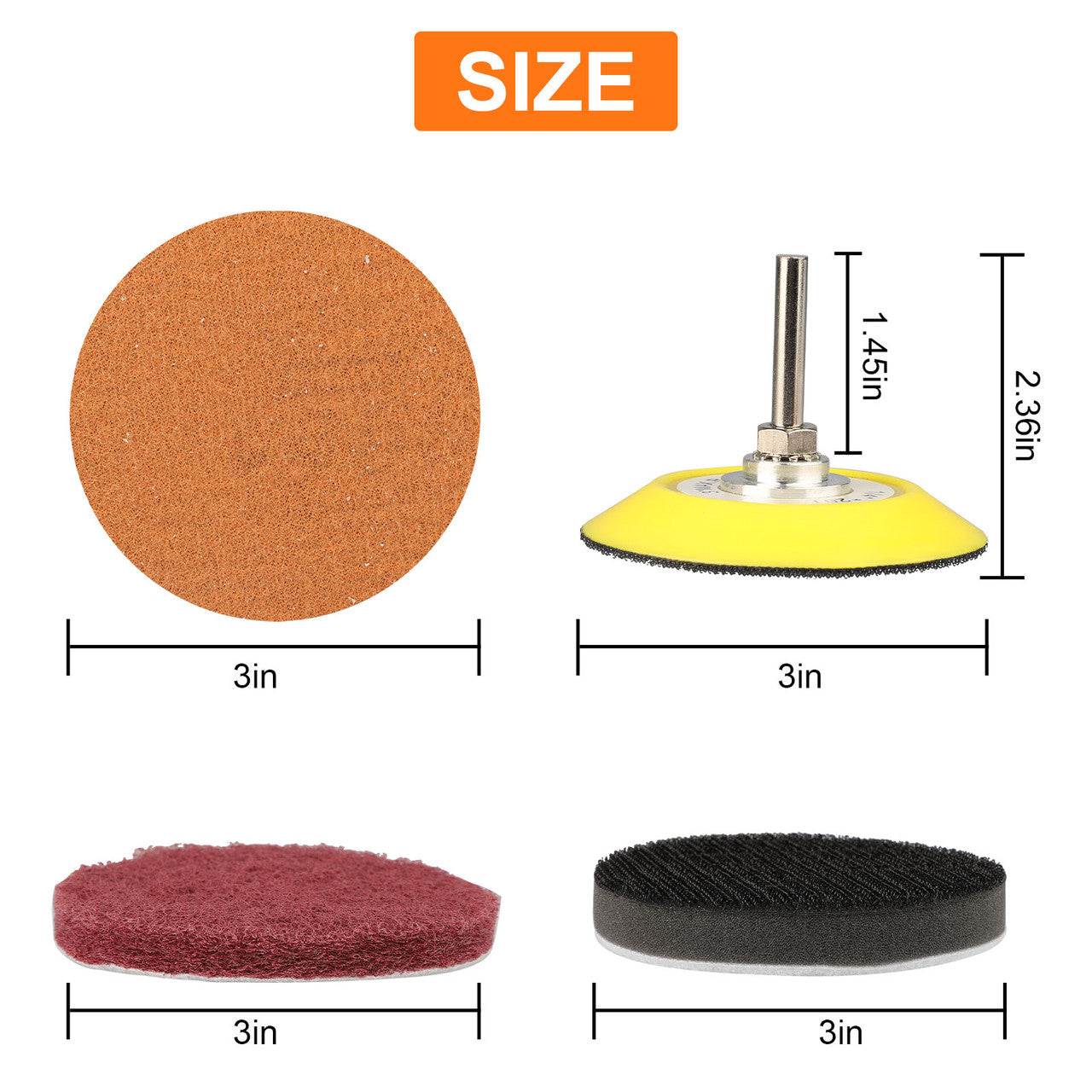 PACKAGE INCLUDE: 1pc each of 3 inches 240, 400, 1000 grit scrubber scouring pad, 5 pcs each of 2000, 5000, and 10000 grit high-precision waterproof sanding discs + 1pc of back-up sanding pad + 1pc of drill Attachment + 1pc of soft sponge interface pad.