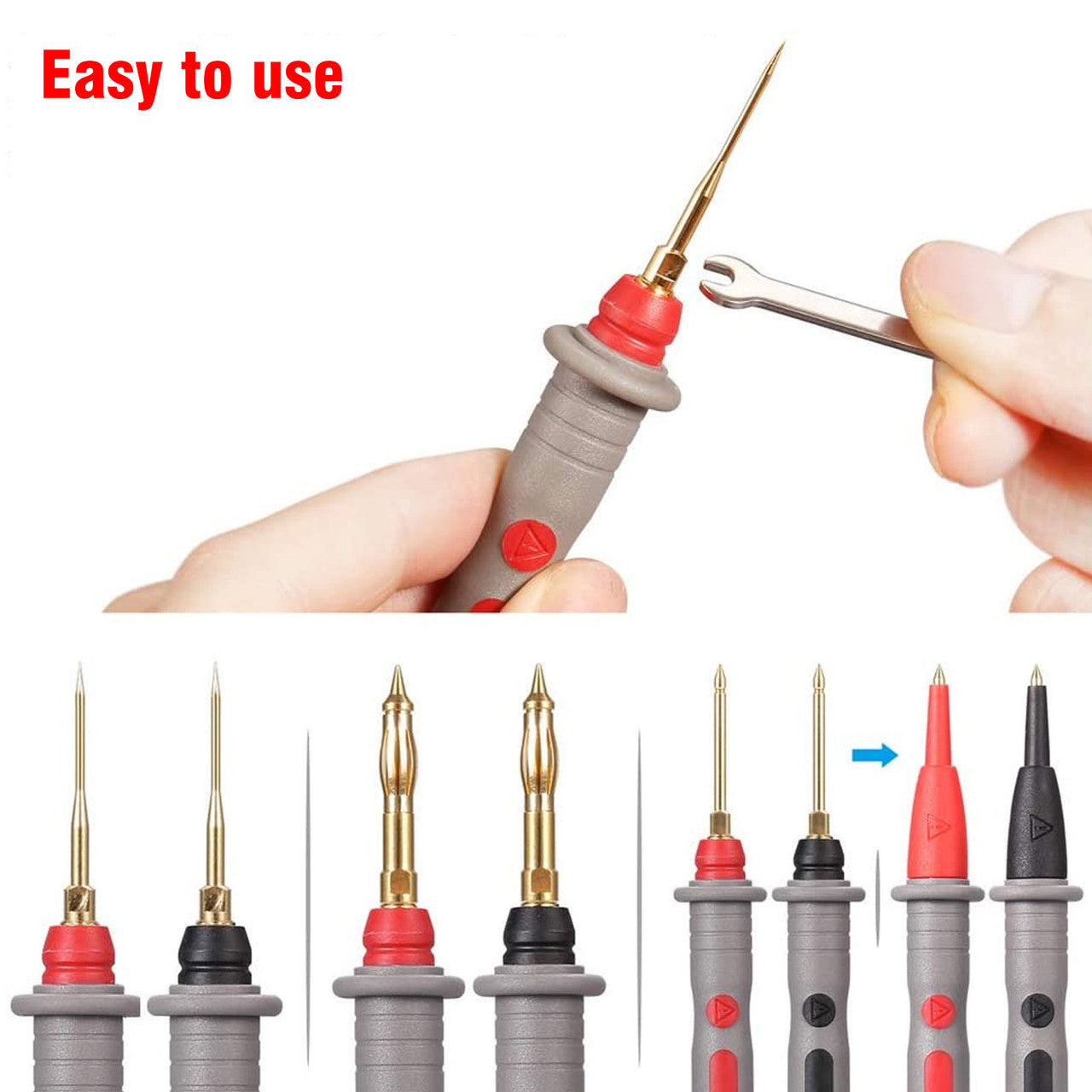 Precise, Durable, and Comfortable: A replaceable gold-plated probe ensures high strength, high conductivity, long service life, and accurate test data. The surface gives the user a comfortable, reliable grip on the accessory. Versatile: The replaceable gold-plated multimeter test probes, alligator clips, test hook, and back probe pins can be used in different measurement environments such as industrial, electronics, home, and automotive.