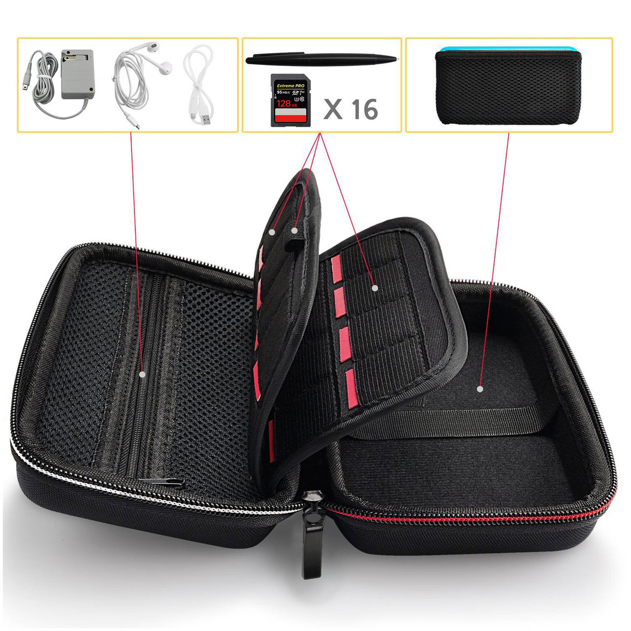 ✅Large Secure Storage: A mesh pocket that will hold your 3DS XL/2DS XL console.