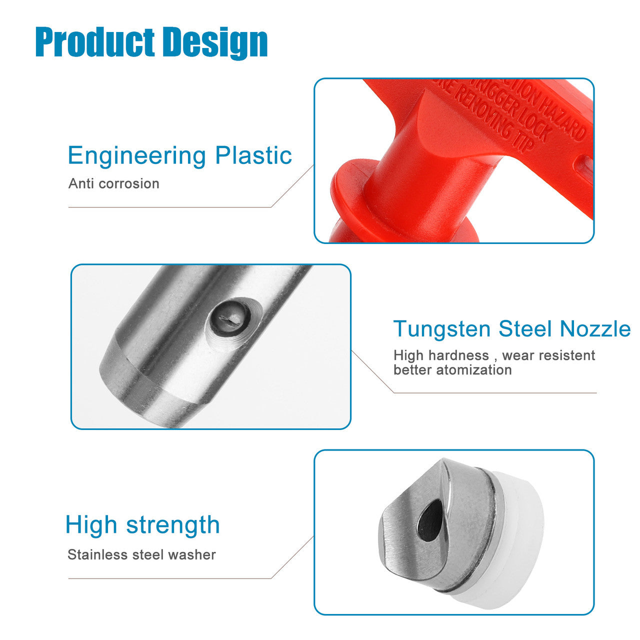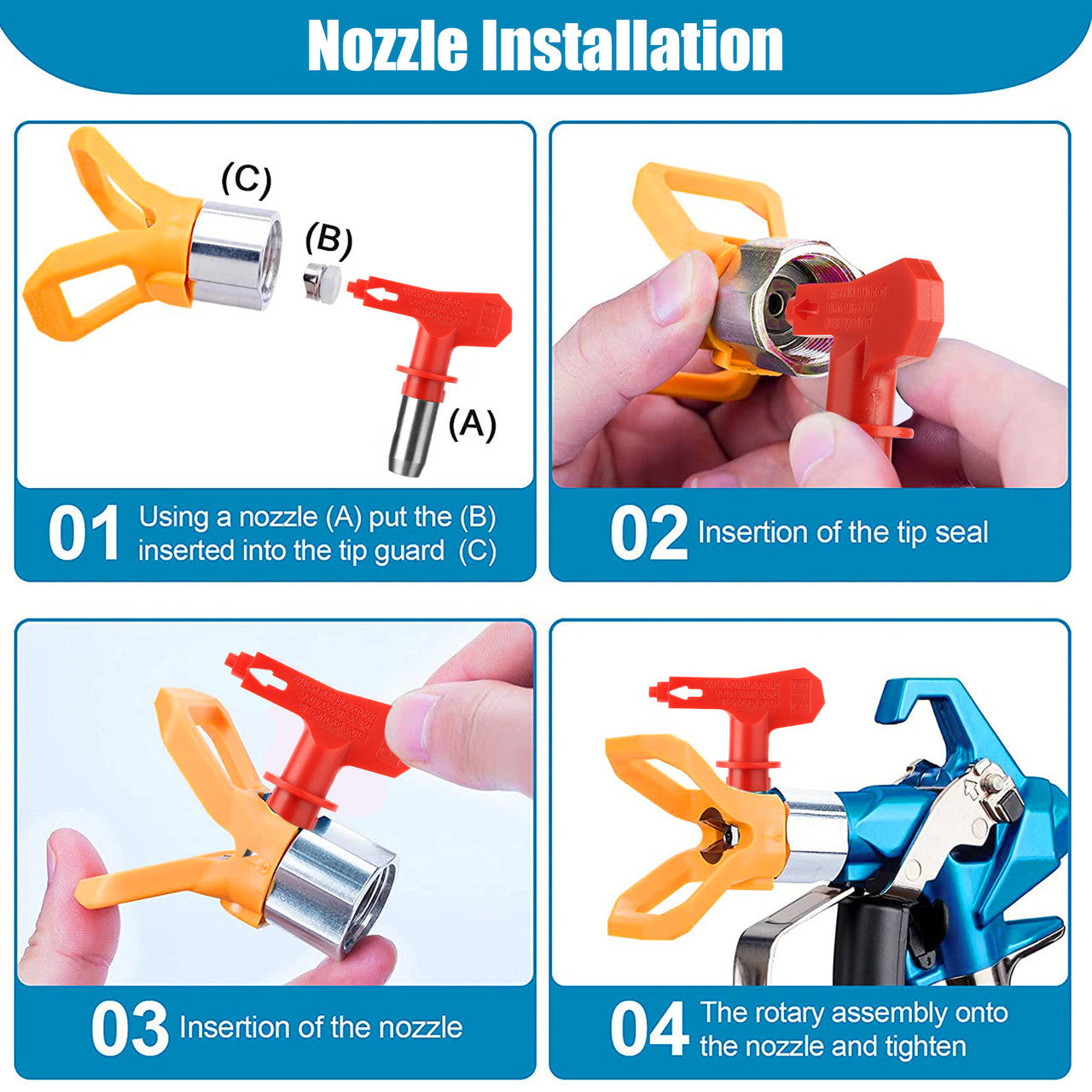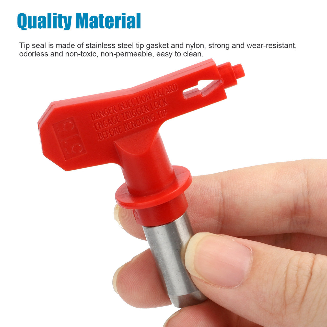 Package includes: you will receive 2pcs of reversible airless sprayer tips Quality Material:Tip seal is made of stainless steel tip gasket and nylon, strong and wear-resistant, odorless and non-toxic, non-permeable, easy to clean, and can be applied for a long time Easy to Use: it can be easily installed on the spray gun without tools; Use spray tip inserts the tip seal into the guard base; Then inserts the spray tip into the guard base and rotates to complete the installation steps; The operation is convenient and easy to use Widely Use: compatible with most major airless spray guns, can be applied for home decoration, painting and industrial fine painting and decoration, etc.; They make the preparation of the surface, painting and other coatings and cleaning after painting changed more easier
