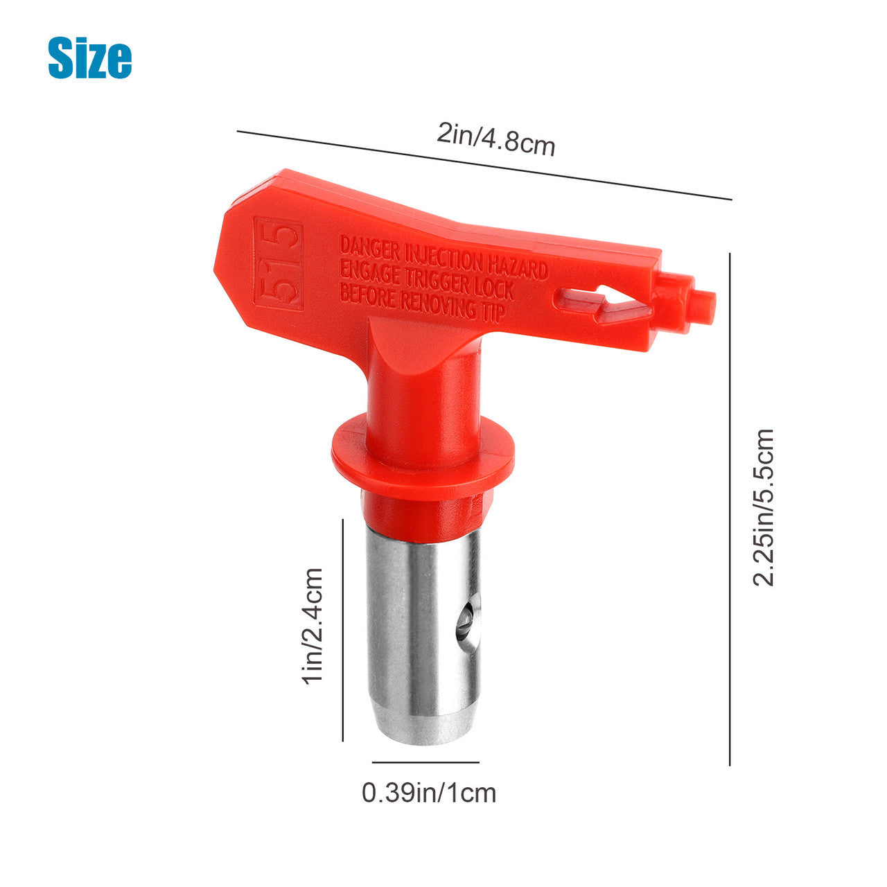 Product name: Airless spray tip Optional Type:211/515 Material: Tungsten steel Color: Red Size: Approx. 6x5cm/2.36"x1.96" Package Include: 2x Airless spray tips