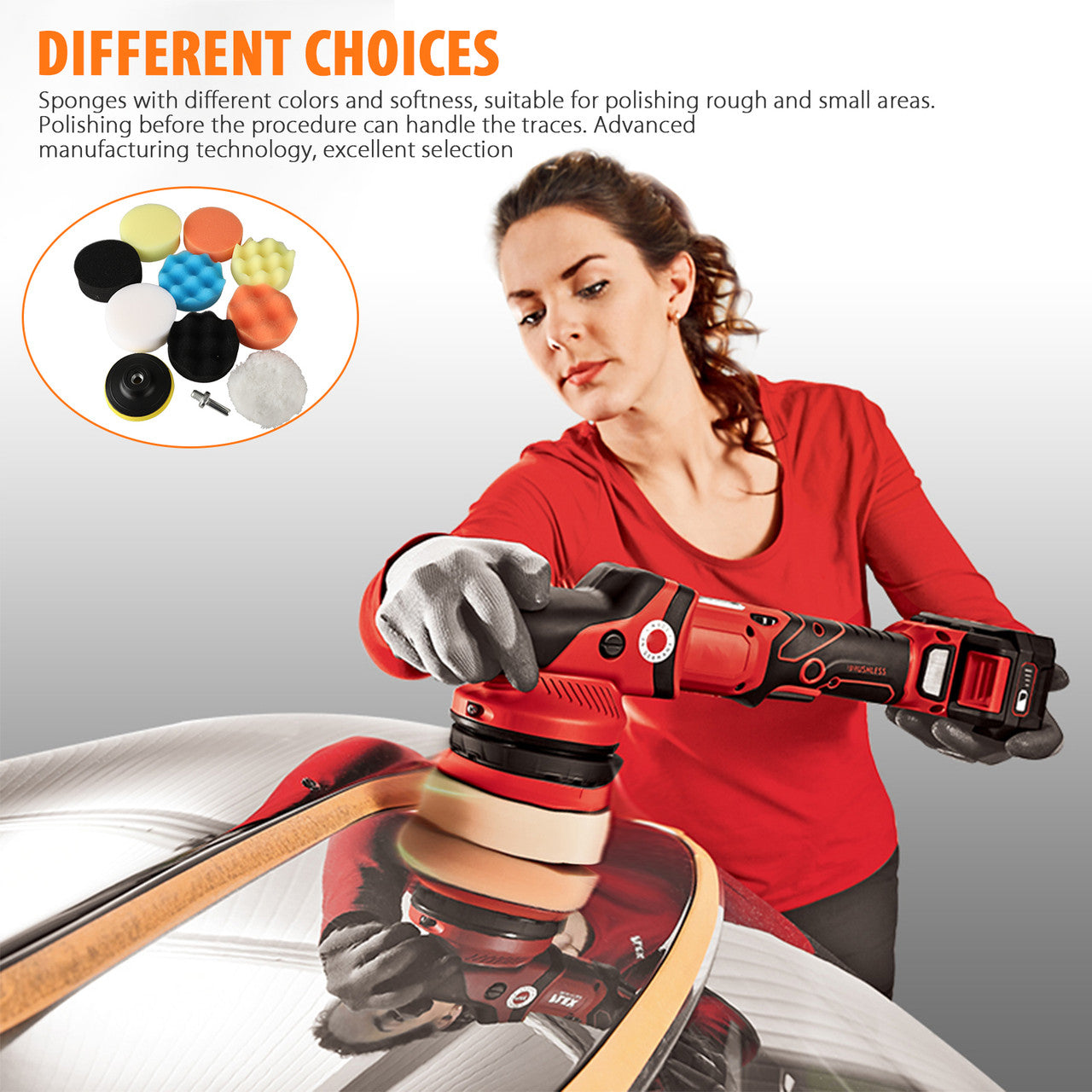 Suitable: Used for all kinds of coat paints's waxing, polishing and sealing glaze, to clean and improve their lightness; And for auto car detail polishing. Adhesive backing, you can change pads just in seconds.