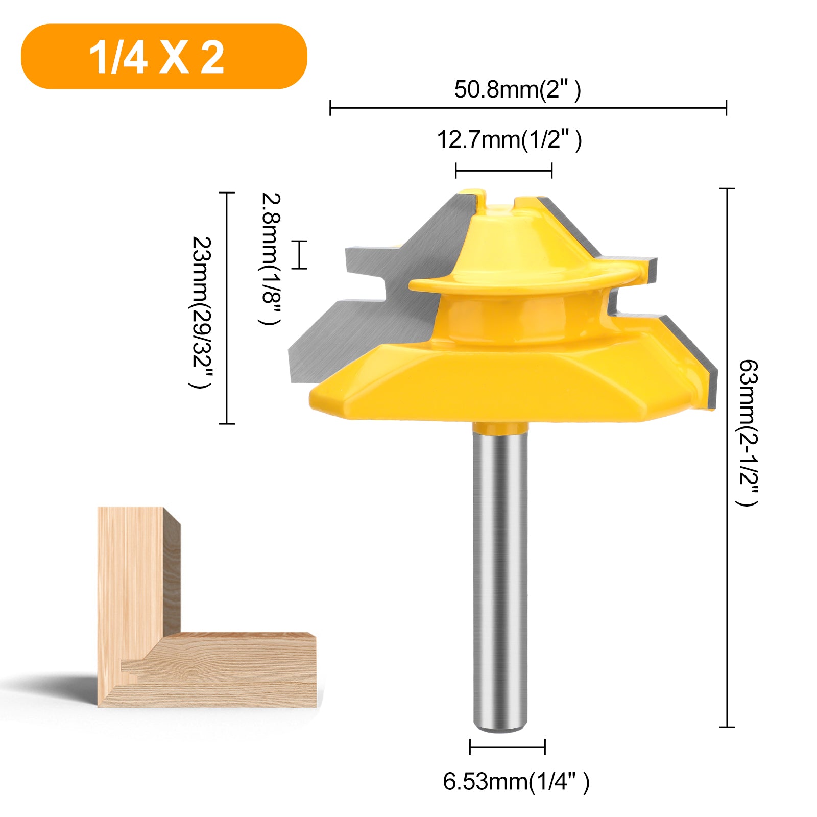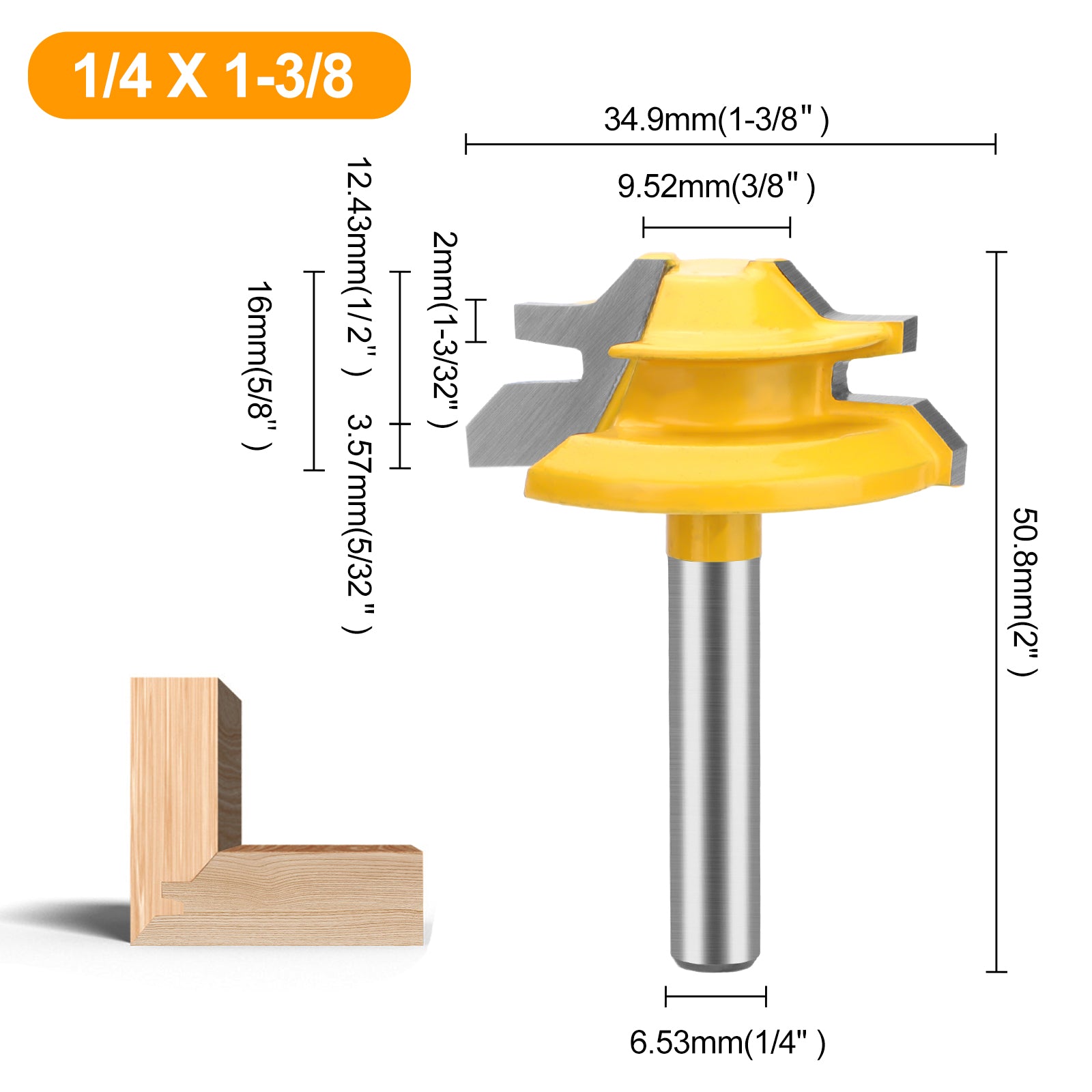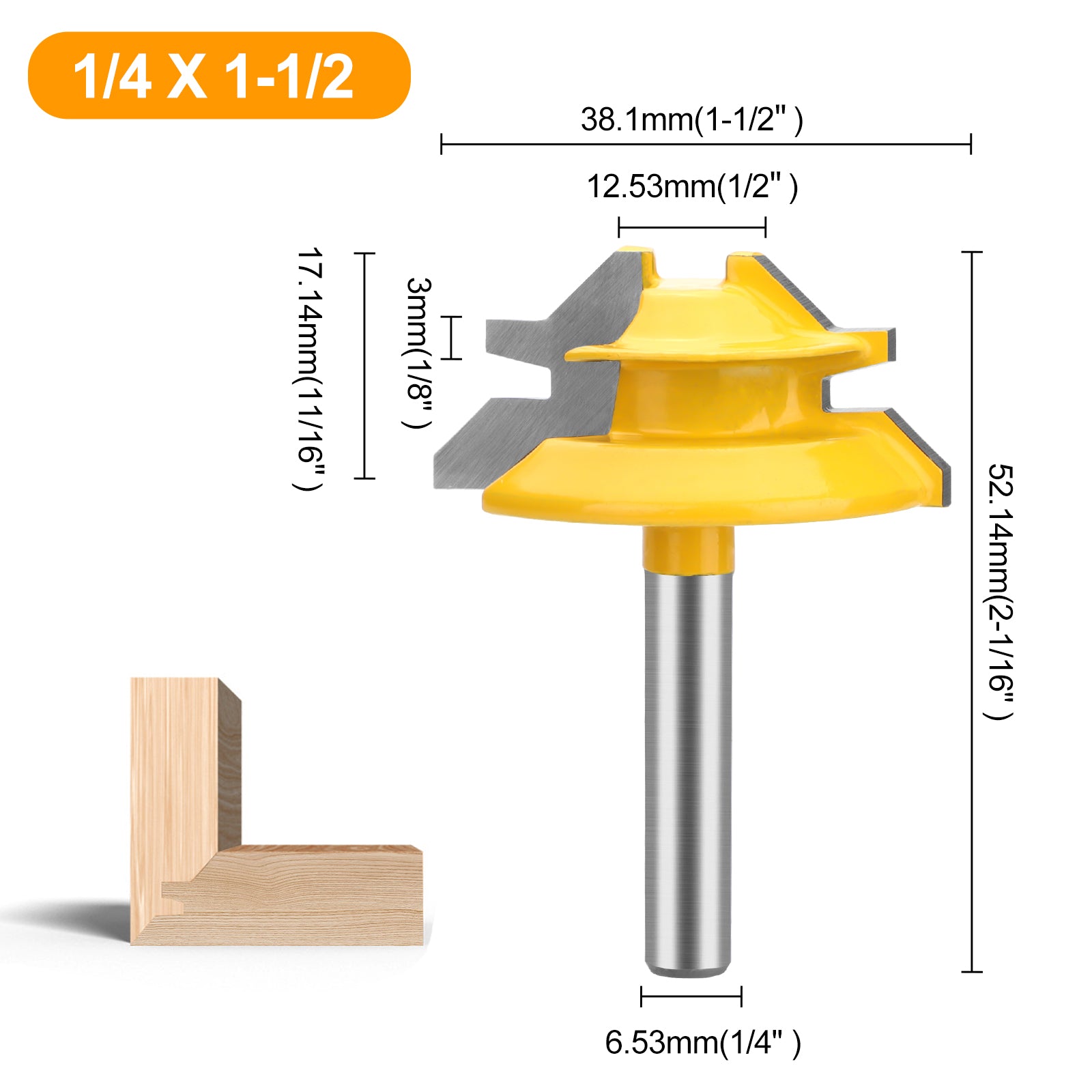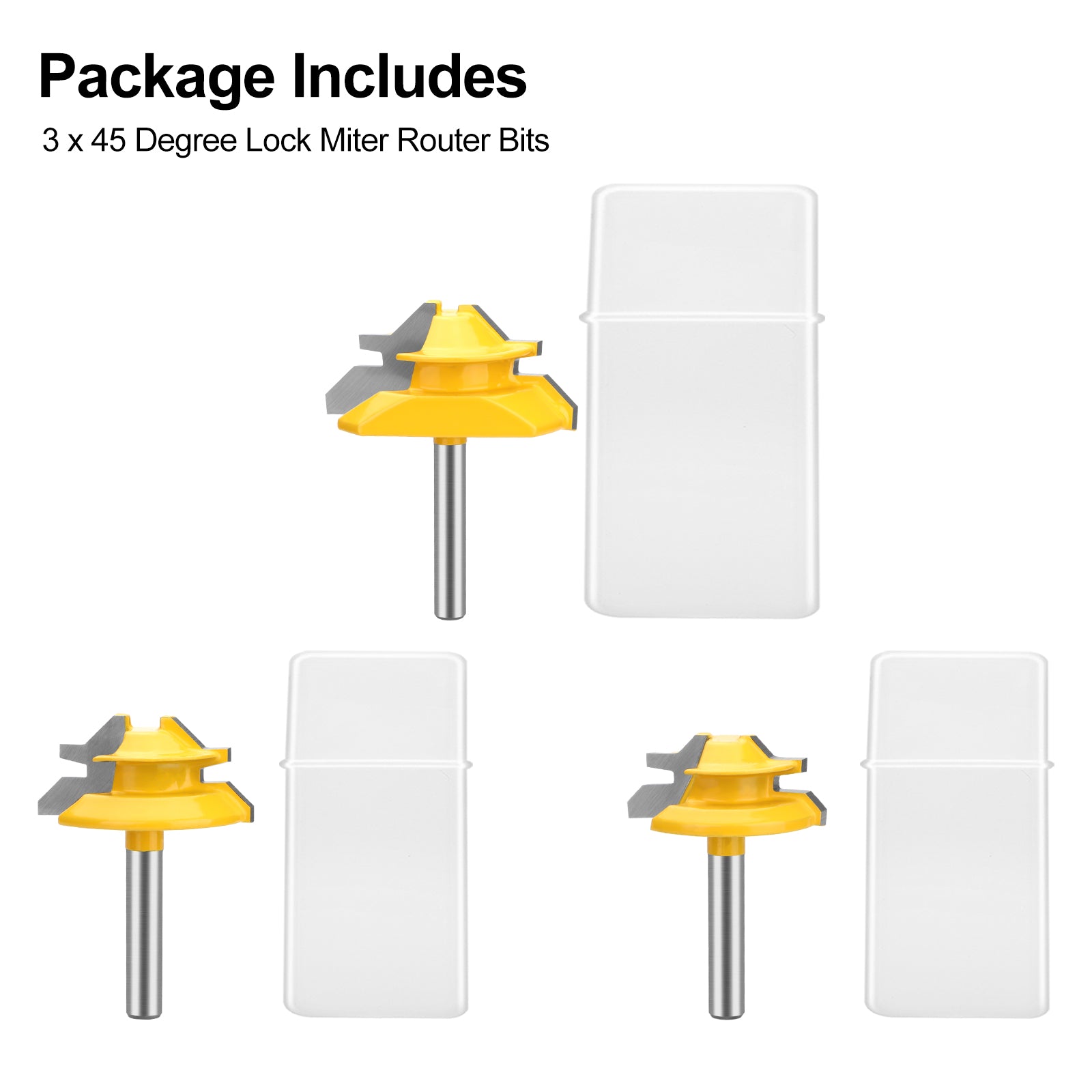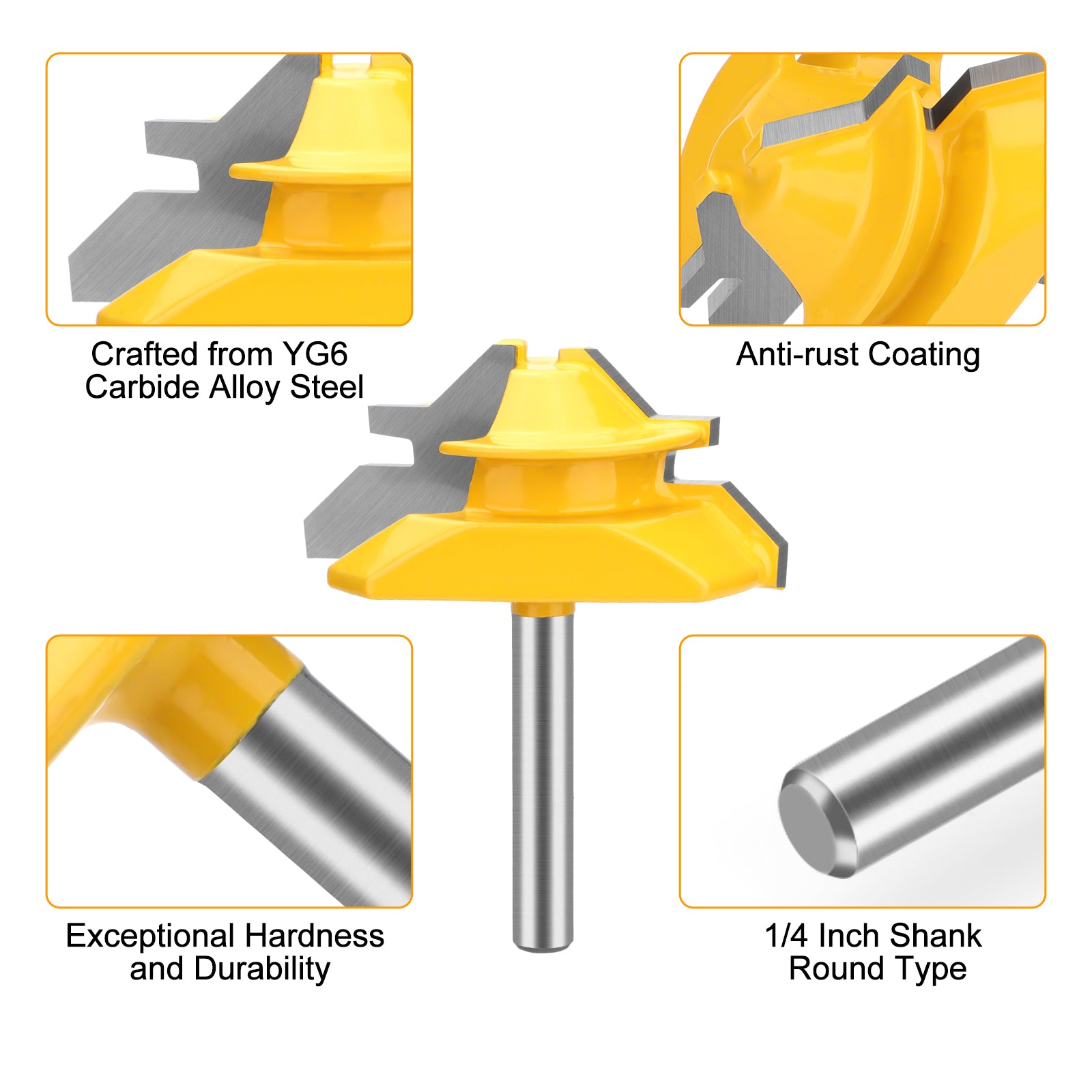 Elevate the precision and quality of your woodworking projects with our exceptional 3Pcs 1/4 Inch Shank 45 Degree Router Bit set. These lock miter router bits are manufactured with top-grade YG6 carbide alloy steel, providing outstanding hardness and endurance for long-lasting use.
