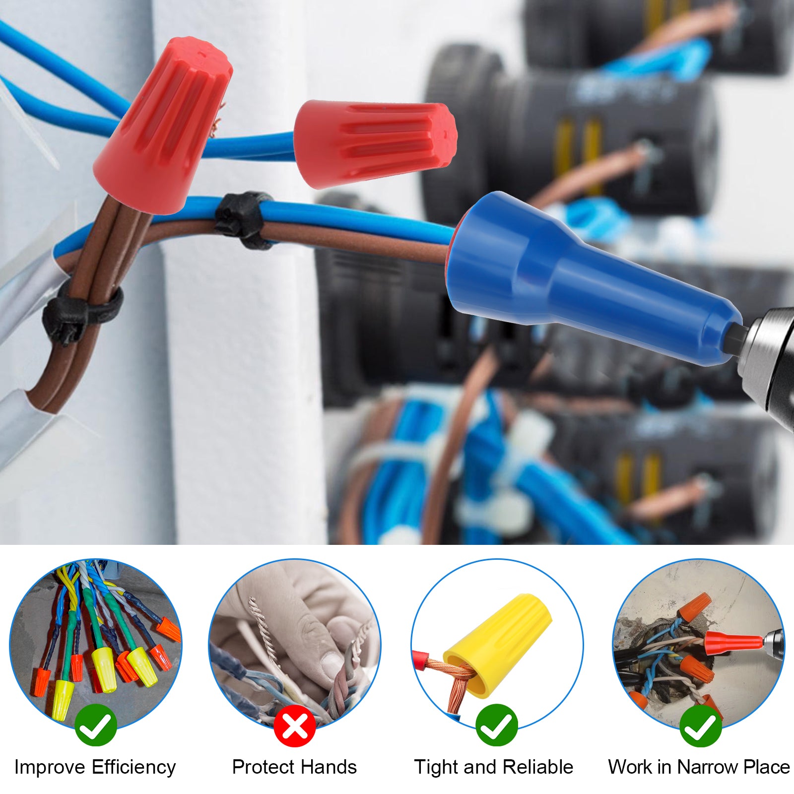 3PCS Wire Nut Twister Tools, designed to make wire stripping and twisting effortless and efficient. Crafted from premium nylon material with a steel shank, these tools are durable and lightweight, ensuring long-term use and easy portability. Perfectly compatible with both wingless and winged wire caps, these wire twisters can handle various cap sizes and standard electrical wires, making them versatile for any job.