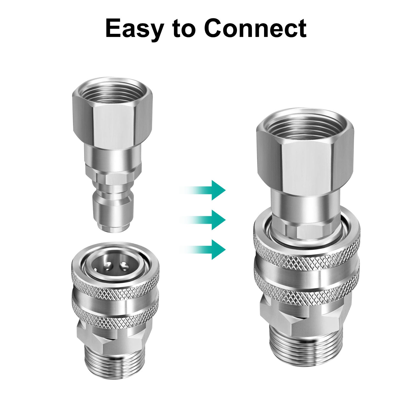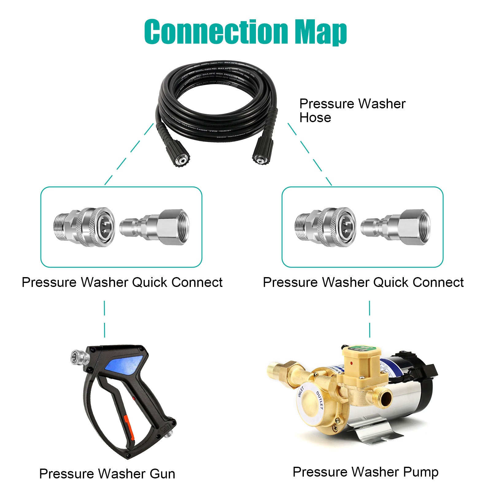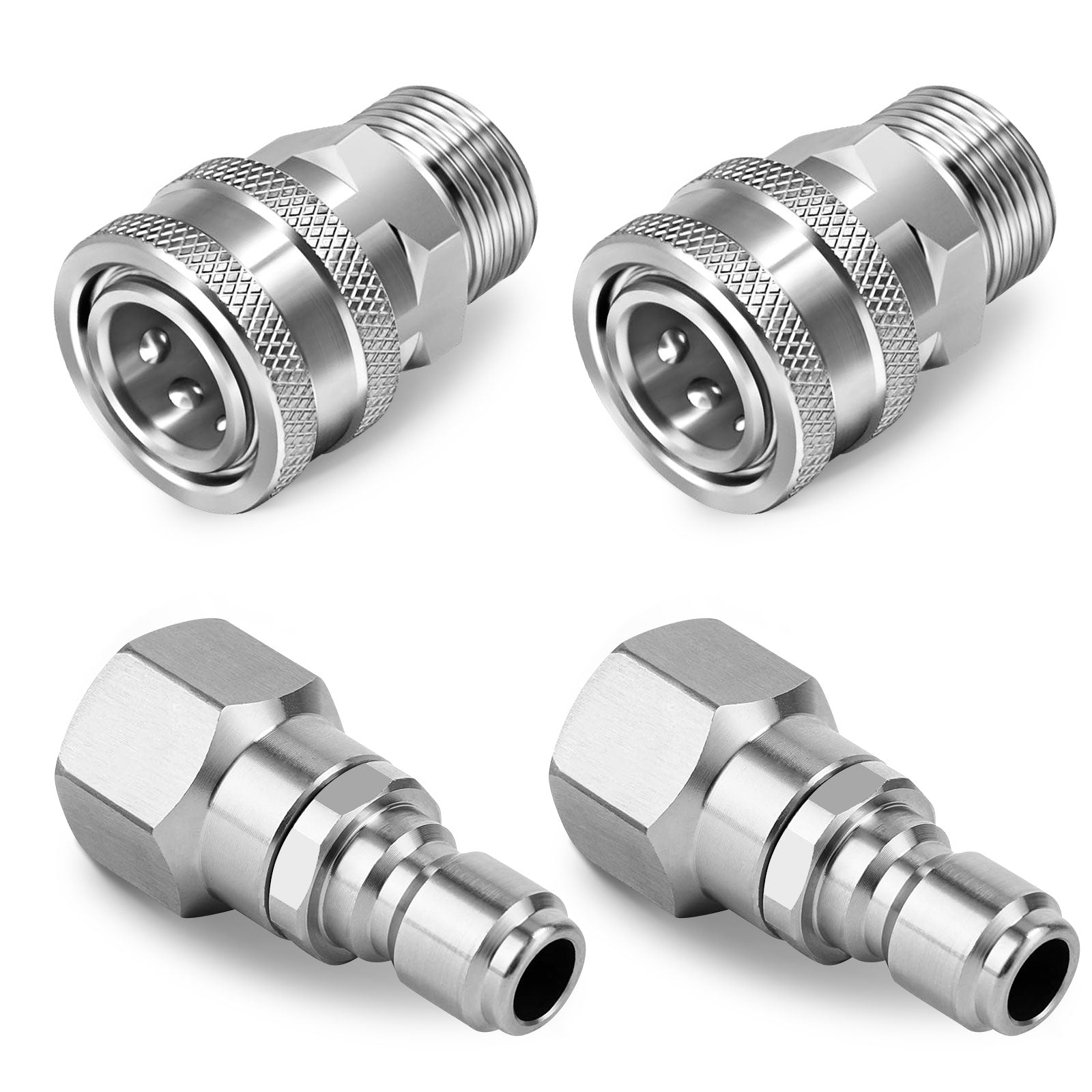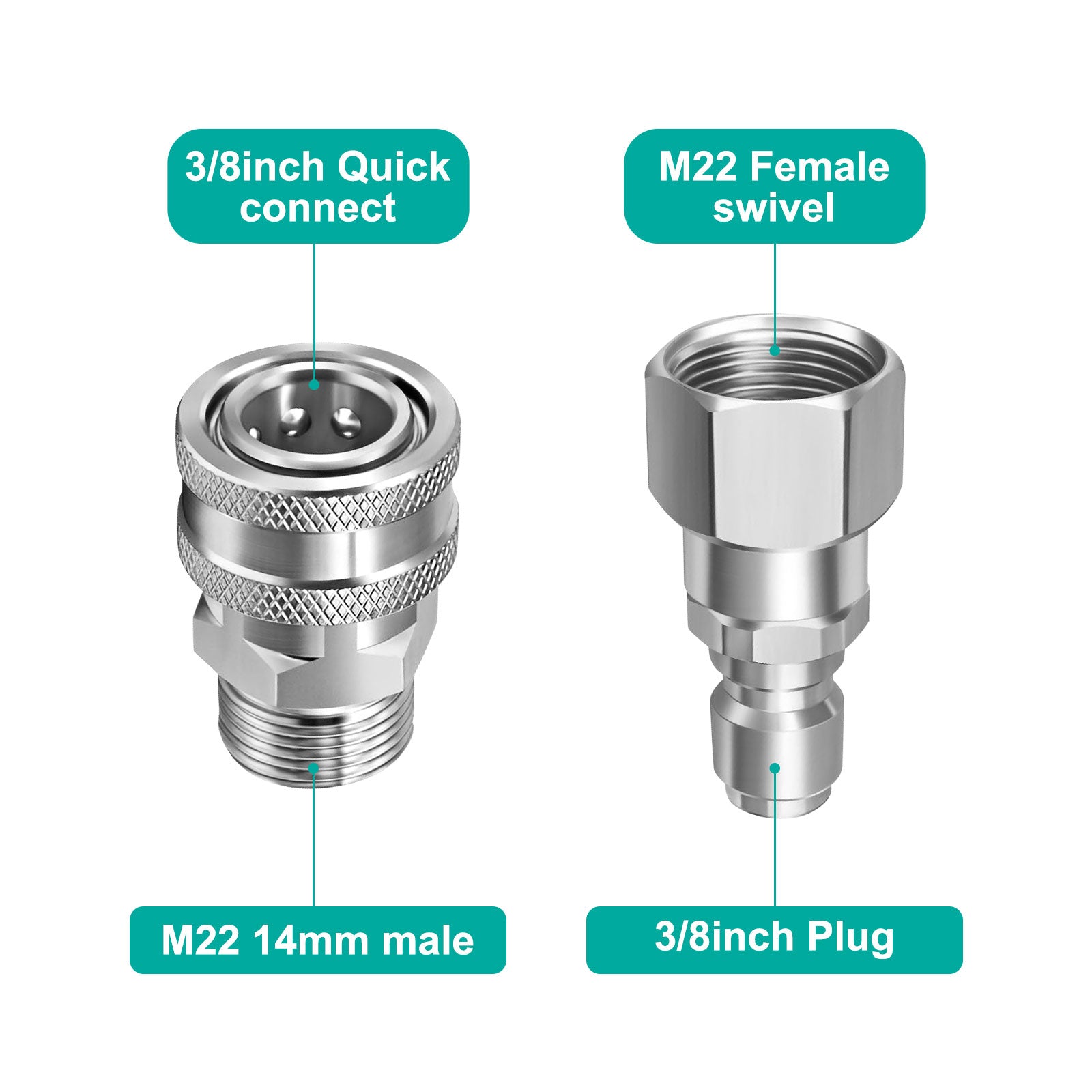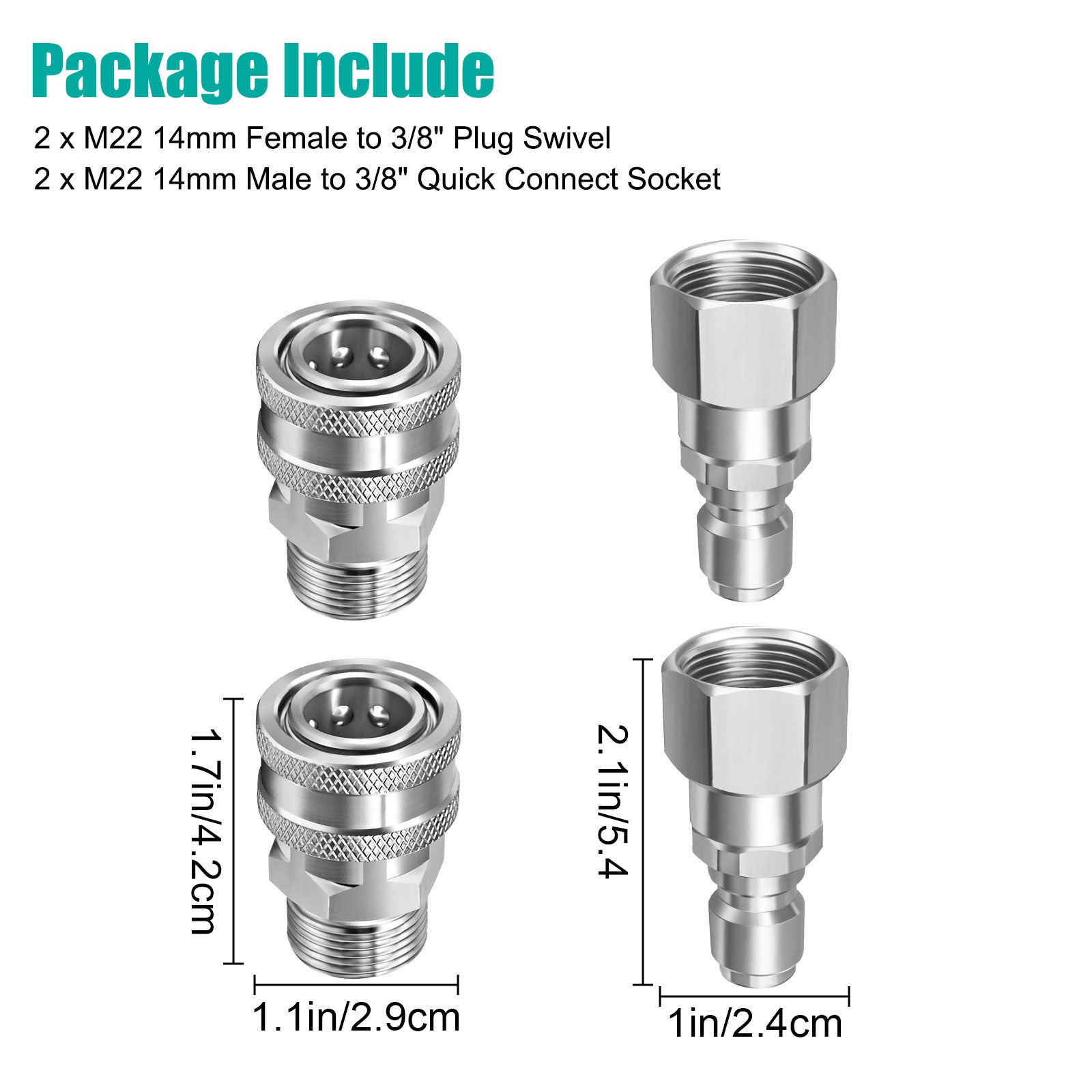 Upgrade your pressure washing setup with the Pressure Washer Swivel Adapter Set, featuring two M22 14mm to 3/8 inch quick connect adapters. Designed to withstand a maximum pressure of 5000 PSI, these adapters ensure robust connections while maintaining peak performance for your cleaning tasks.