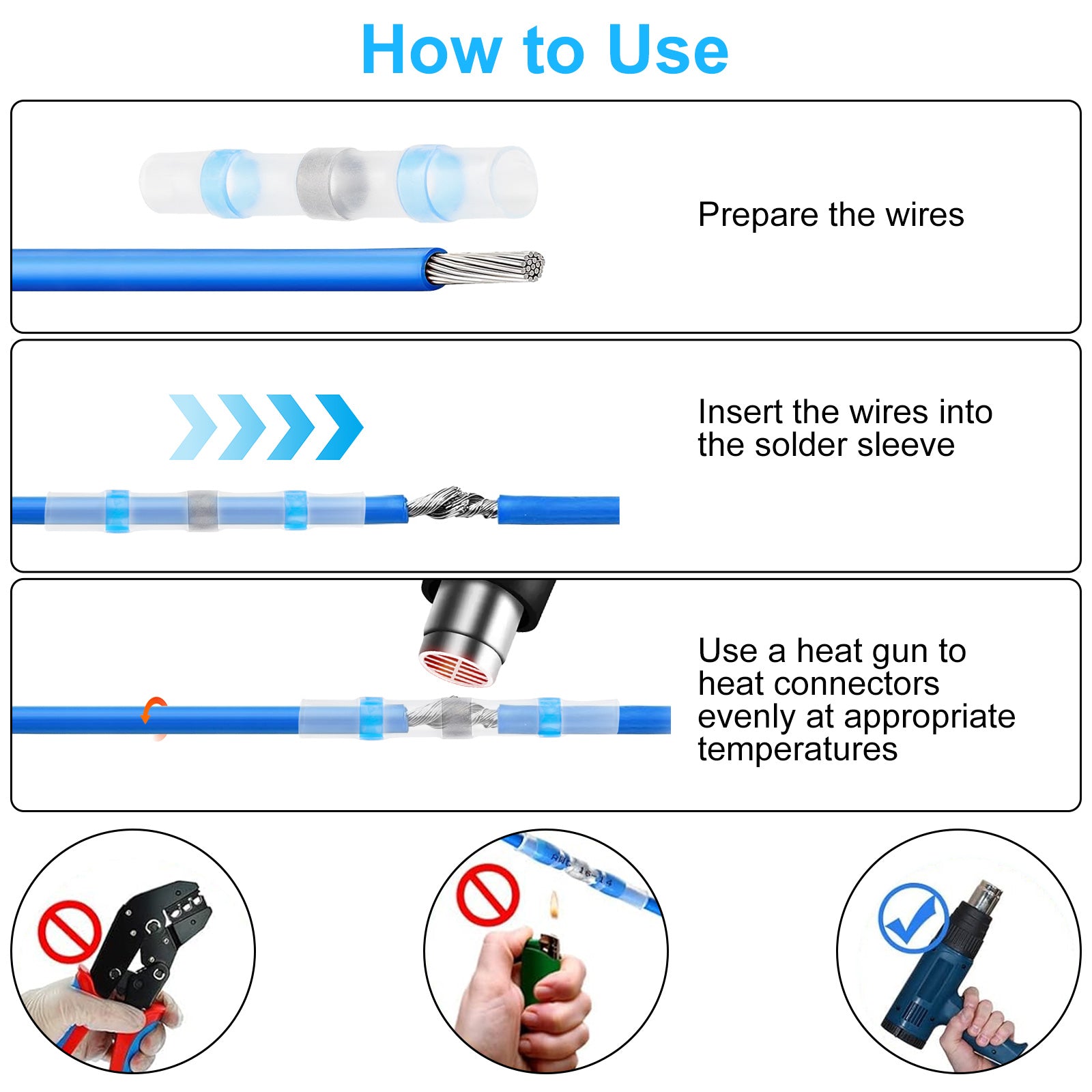 Ensure superior wire connections with our 410pcs Heat Shrink Wire Connectors. Designed with a double wall and hot melt adhesive inside, these connectors provide an exceptional waterproof solution, preventing wires from slipping out and ensuring a lasting connection. The premium solder seal ring and abrasion-resistant heat shrinkable tube protect your wires in harsh environments, making them ideal for various applications such as motorcycles, off-road vehicles, marine electronics, and more.