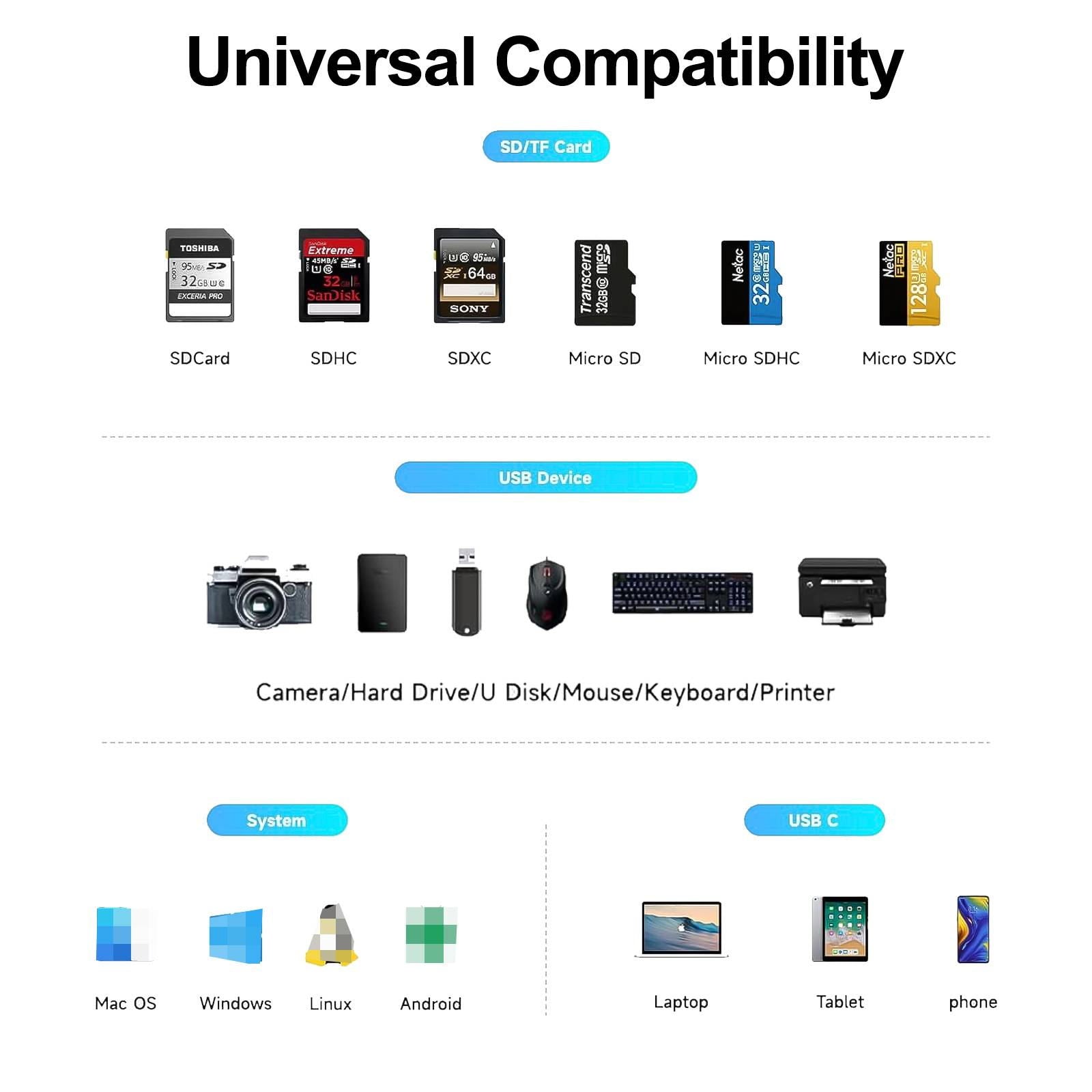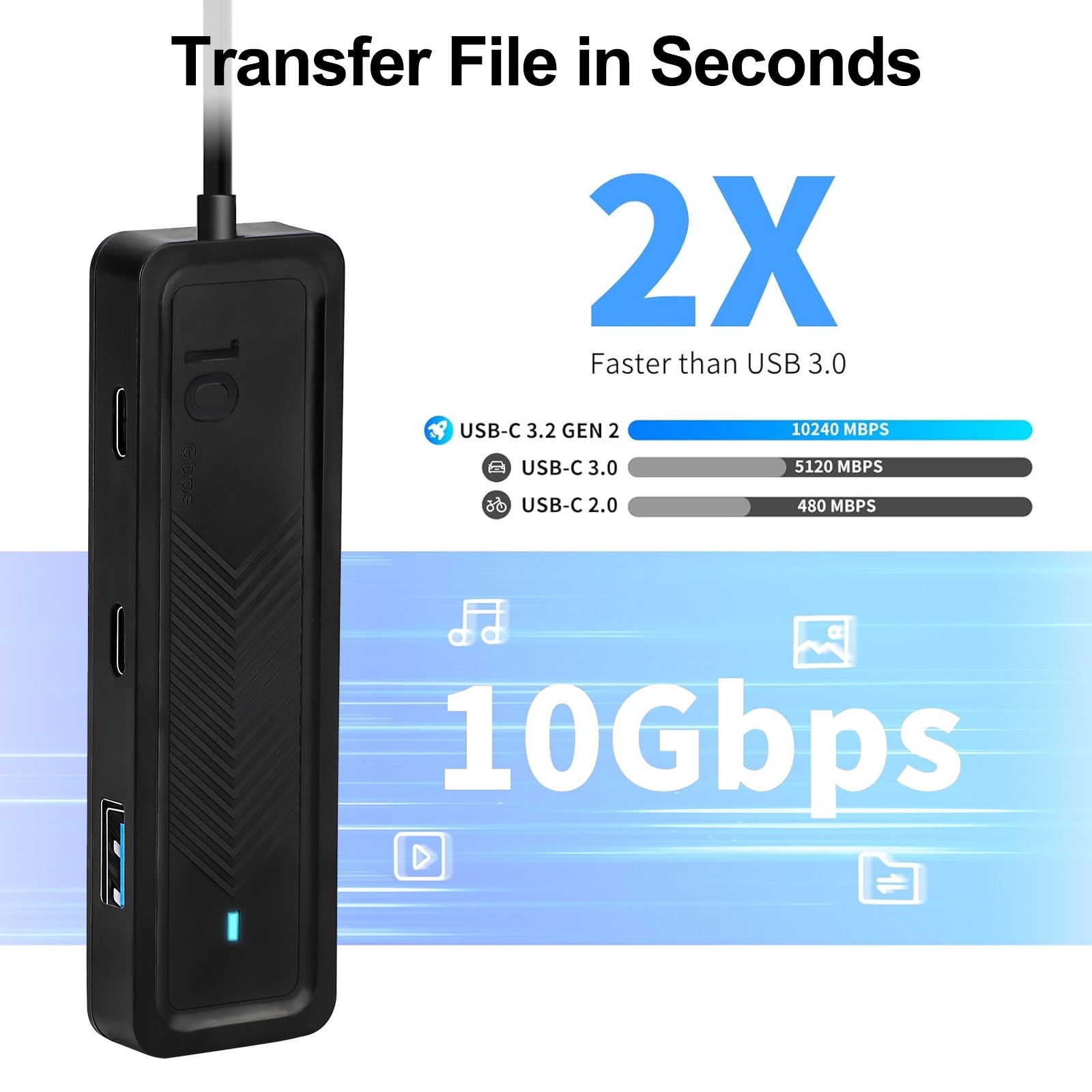 Unleash the full potential of your device with our versatile 6-in-1 USB-C Hub. This compact adapter expands your connectivity, offering dual 10Gbps USB 3.2 and USB-C ports, as well as a swift SD/TF card reader. Designed for professionals and compatible with multiple systems, this hub brings efficiency and speed to every task, whether at home or on the go.