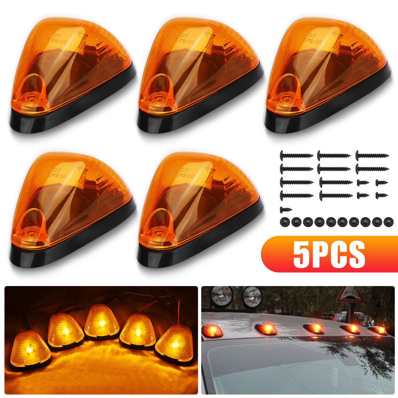 Elevate the safety and style of your Ford E-Series and Super Duty Pickup Trucks from 1999 to 2016 with this 5-pack of amber cab roof marker lights. Crafted for compatibility with stock cab markers, these top-quality lights feature ultra-strong ABS plastic lenses treated with UV protection, ensuring long-lasting durability, waterproofing, and resistance to fading. Each roof marker light boasts 10 built-in LED chips, delivering brilliantly bright amber light with minimal power consumption. Enhance nighttime visibility and alert vehicles behind you to maintain a safe distance, especially during heavy snow, rain, and fog. Installation is a breeze – simply replace your factory cab lights with these units, with potential minor modifications or drilling. The included soft pads and screws facilitate installation, and the removable amber lens adds versatility. Maintain the original car's aesthetic seamlessly without drilling or rewiring—experience direct installation or roof light replacement with these consistent light models.