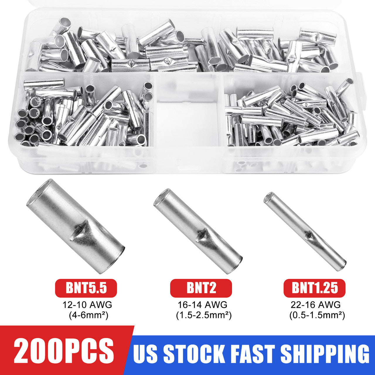 Product Features:● High Quality: The wire connectors are made of high quality copper, has good electrical conductivity. Tin plated on the surface, make them has a better anti-oxidation and corrosion resistance. ● Performance: Butt splice connectors easy to connect with electrical wire and strengthen its reliability and safety; Wire stop structure is conductive to insertion wire in right space to ensure the effect of compression. ● Easy to use: The uninsulated butt connectors are great for non-bulky splices, simplify the process of electrical splicing. ● Function and Use: These wire crimp butt connectors are works good when building custom wire harnesses or making repairs to existing wiring. ● Package Include: This wire connectors kit includes 22-16AWG 16-14AWG 12-10AWG bare crimp connectors, 200 Pcs electrical butt connectors packed in a plastic box.