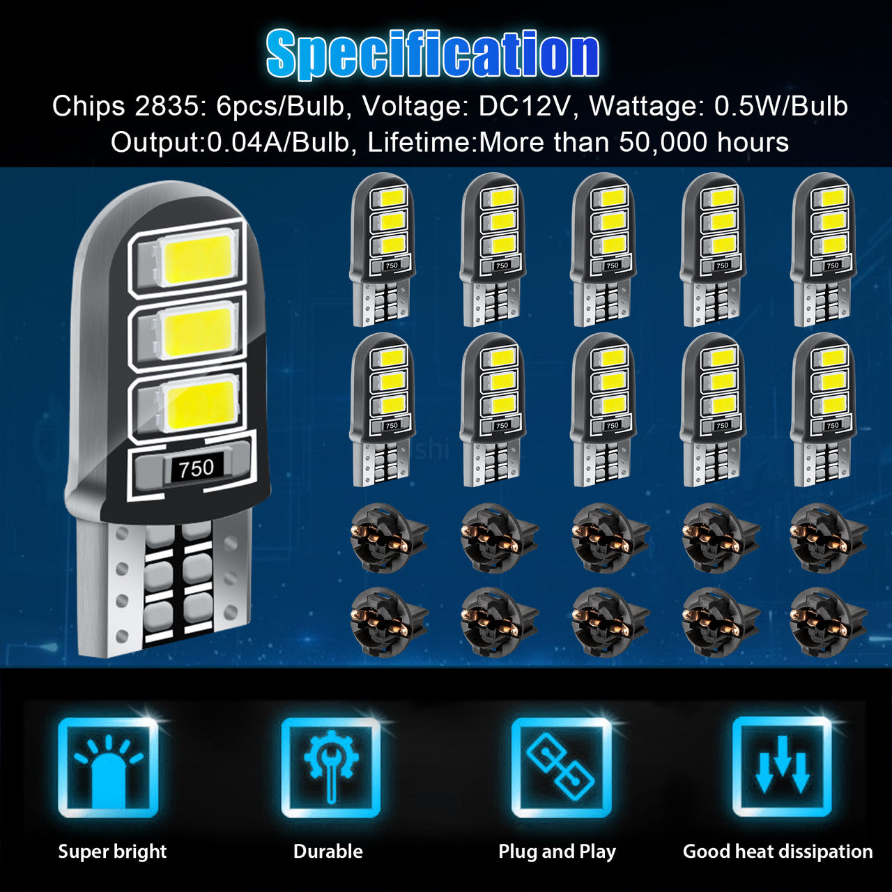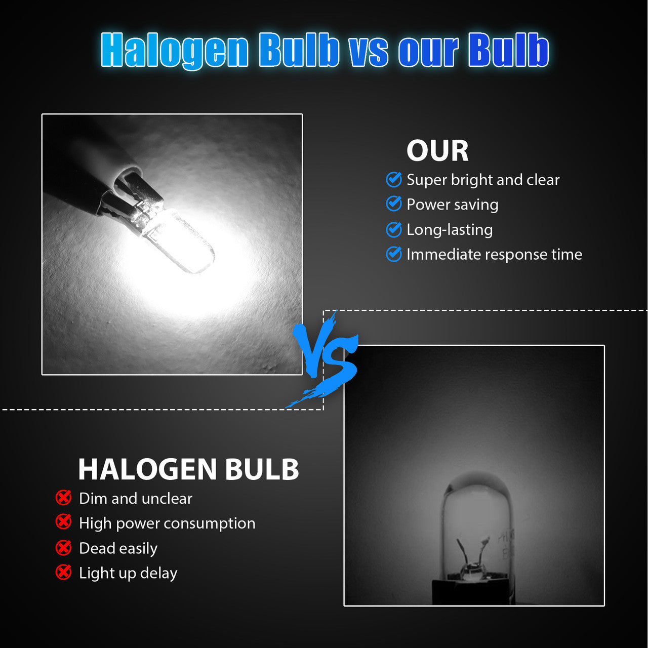 Our LED Instrument Dash Light bulbs are designed to enhance the brightness of your car's instrument panel and interior. Each bulb features 2835 SMD LED chips, ensuring stability, energy efficiency, and exceptional brightness. These bulbs can be used as replacements for various cross-reference models, including W5W (194 168), 147, 152, 158, and more. The installation is simple, requiring no modifications, wiring, or soldering. Just plug and play. If the LED does not light up, you can flip its base 180 degrees to reverse the polarity. These versatile bulbs are suitable for instrument panels, dashboards, speedometers, odometers, gauge clusters, and more. Upgrade your car's interior lighting with our LED Instrument Dash Light bulbs.