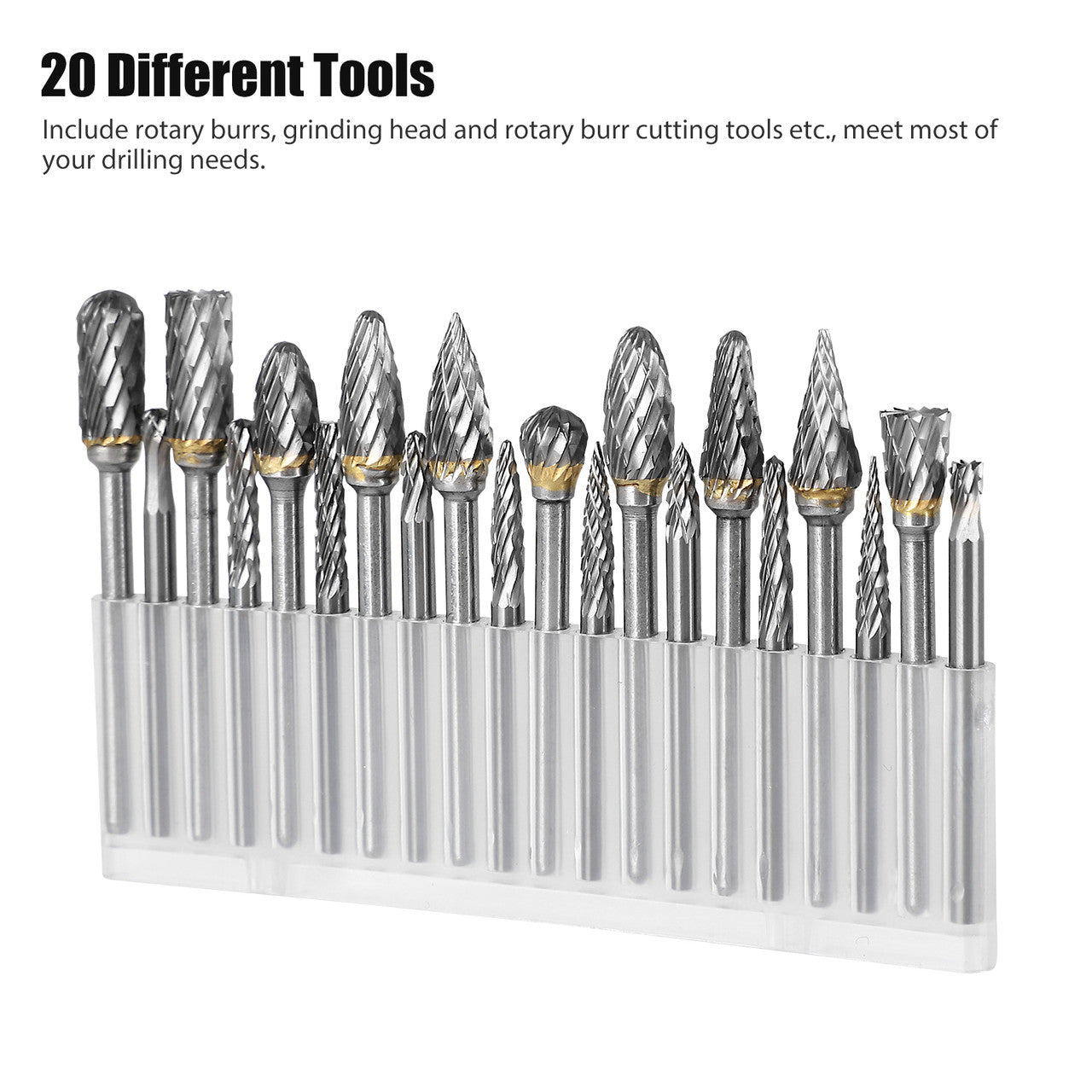 ✅20 Different Tools: Include rotary burrs, grinding head and rotary burr cutting tools etc., meet most of your drilling needs.