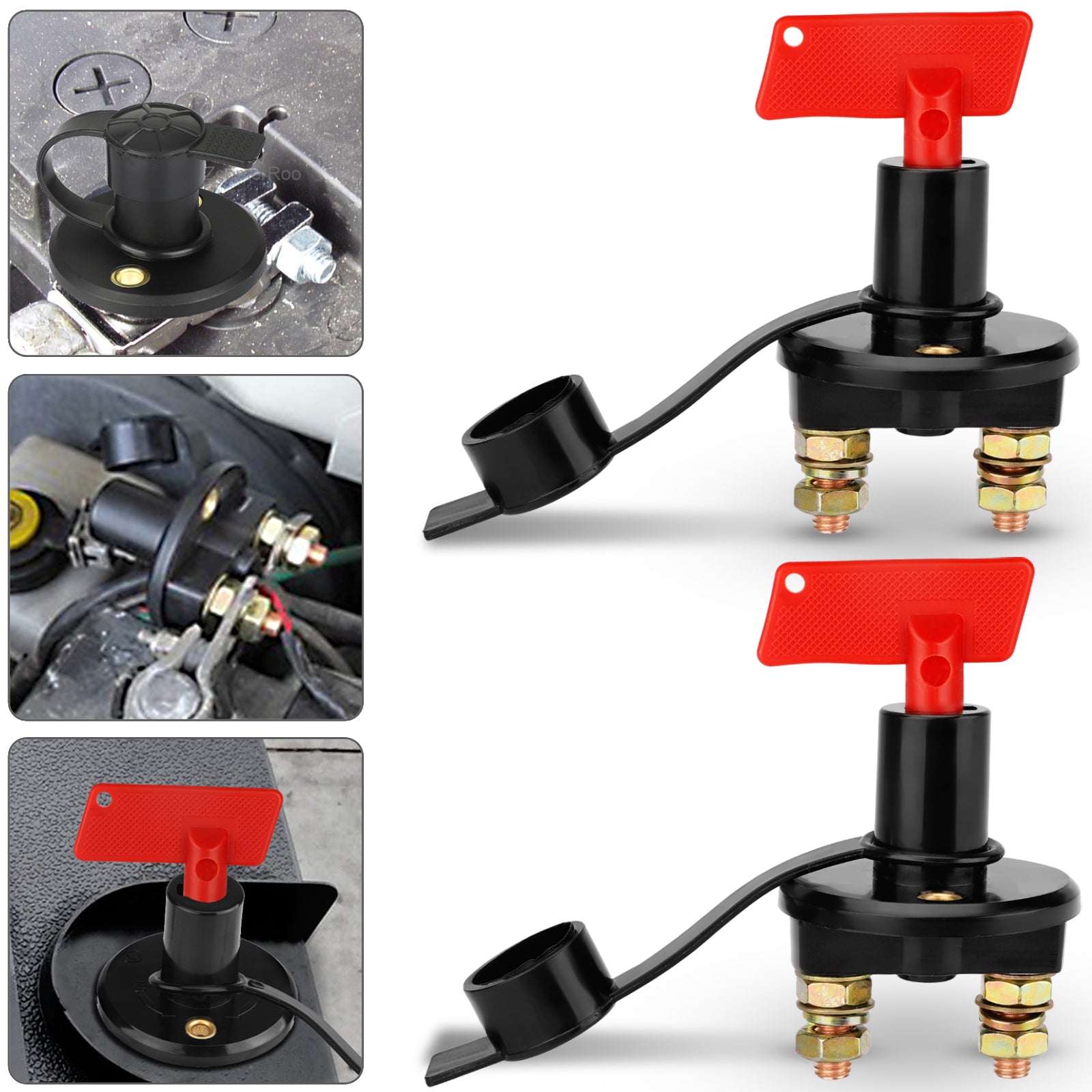 Protect your vehicle with the Car Battery Cut Off Switch Set, a crucial device for enhanced security. This set includes two battery switches designed for easy power control and protection against theft. The switches, made of durable brass and flame retardant nylon, ensure high-temperature resistance, rust resistance, and corrosion resistance. The bright red color allows for easy daily checks, and the spare keys add convenience. The set is suitable for DC 12V and 24V systems, making it versatile for cars, boats, trucks, vehicles, yachts, and more. With a simple installation process and no special tools required, you can have the switches ready in about an hour. Say goodbye to drained batteries and unwanted parasitic power draw with this essential automotive accessory.