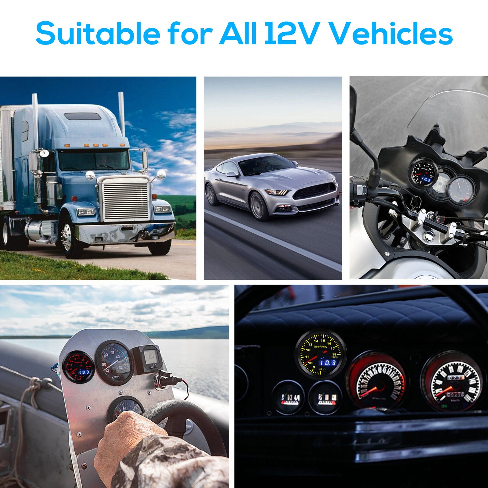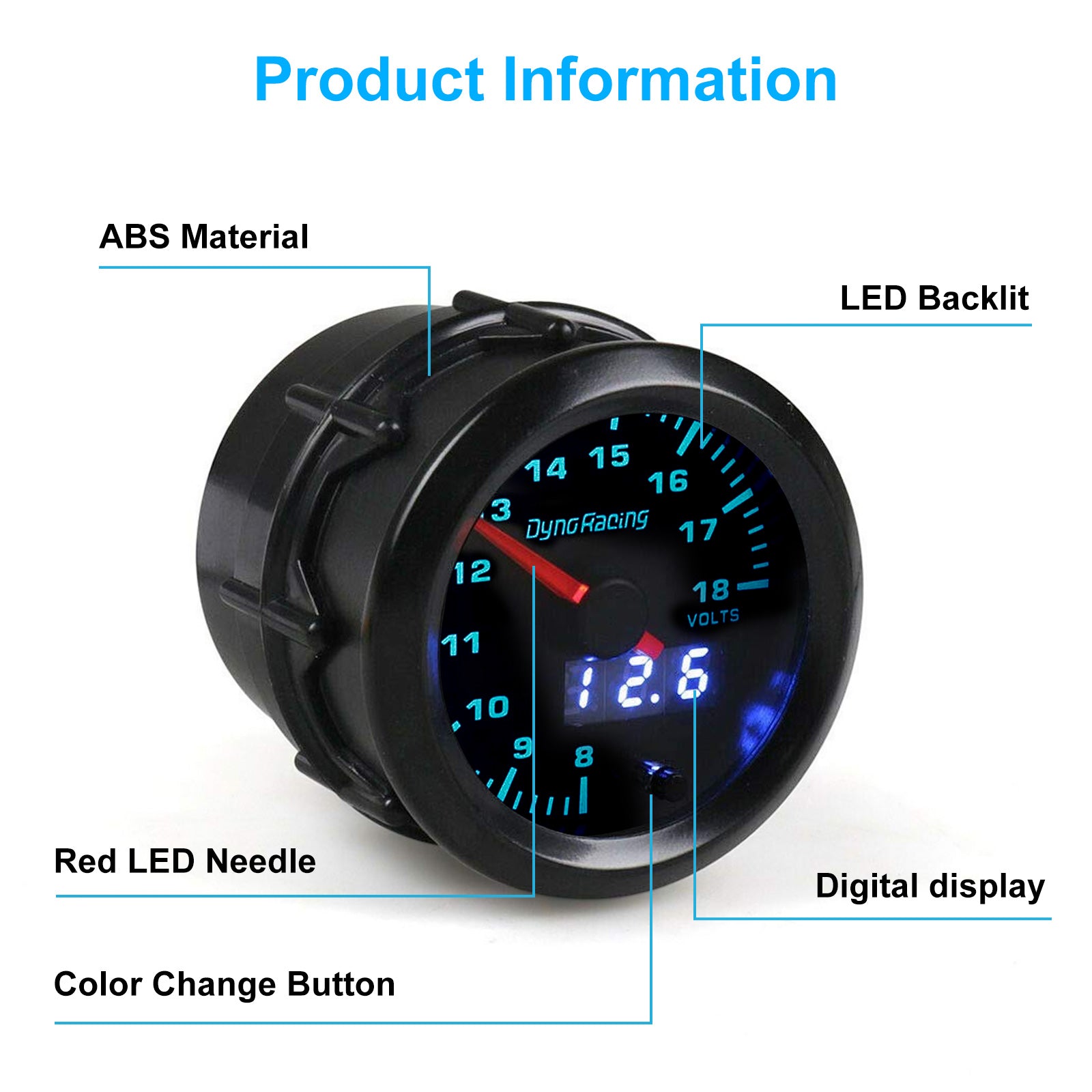 Keep your car's electrical system in check with this 2-inch Volt Gauge. Monitor voltage from 8 to 18 Volts for optimal component performance. The illuminated red needle and blue LED display with 7 color settings ensure enhanced visibility during night driving.