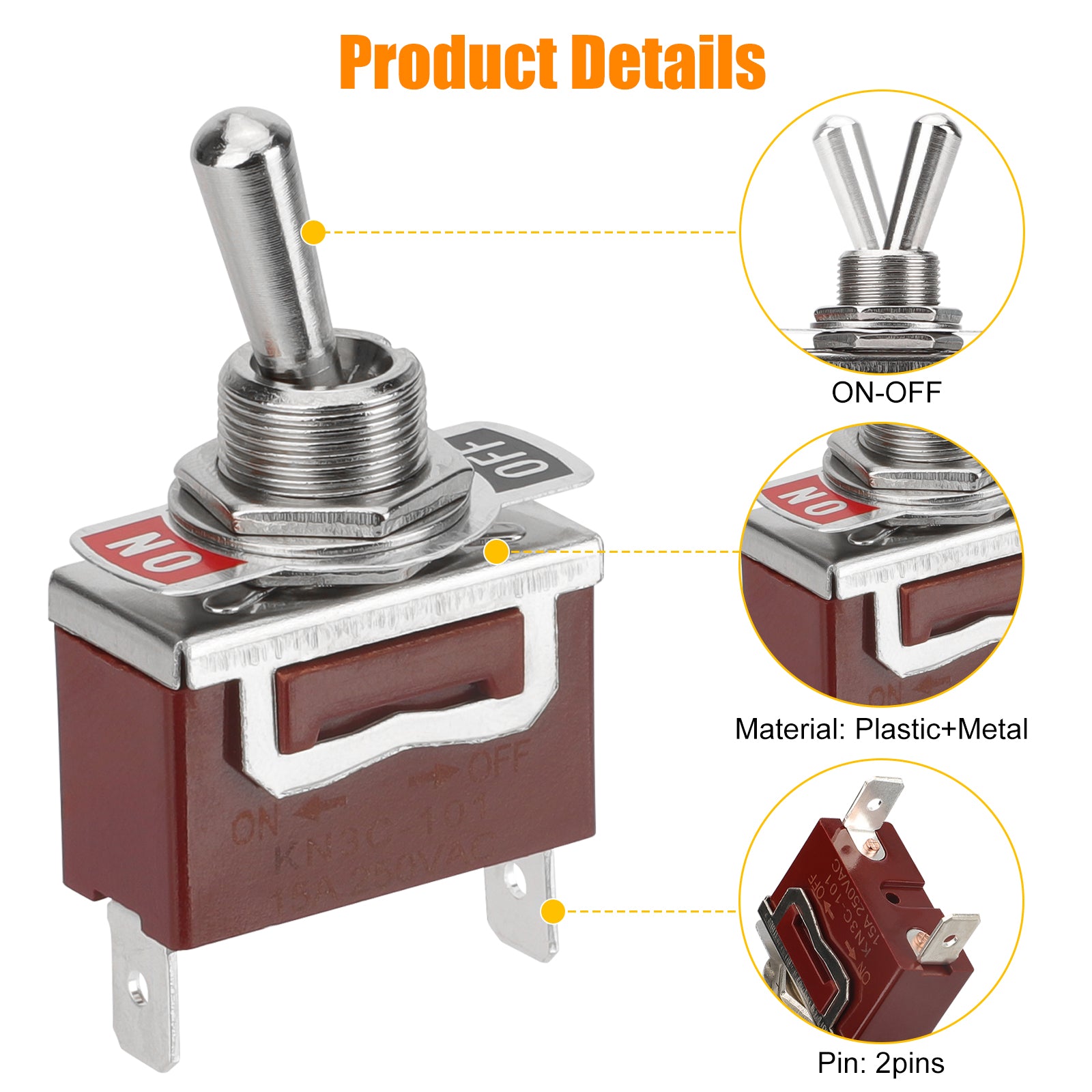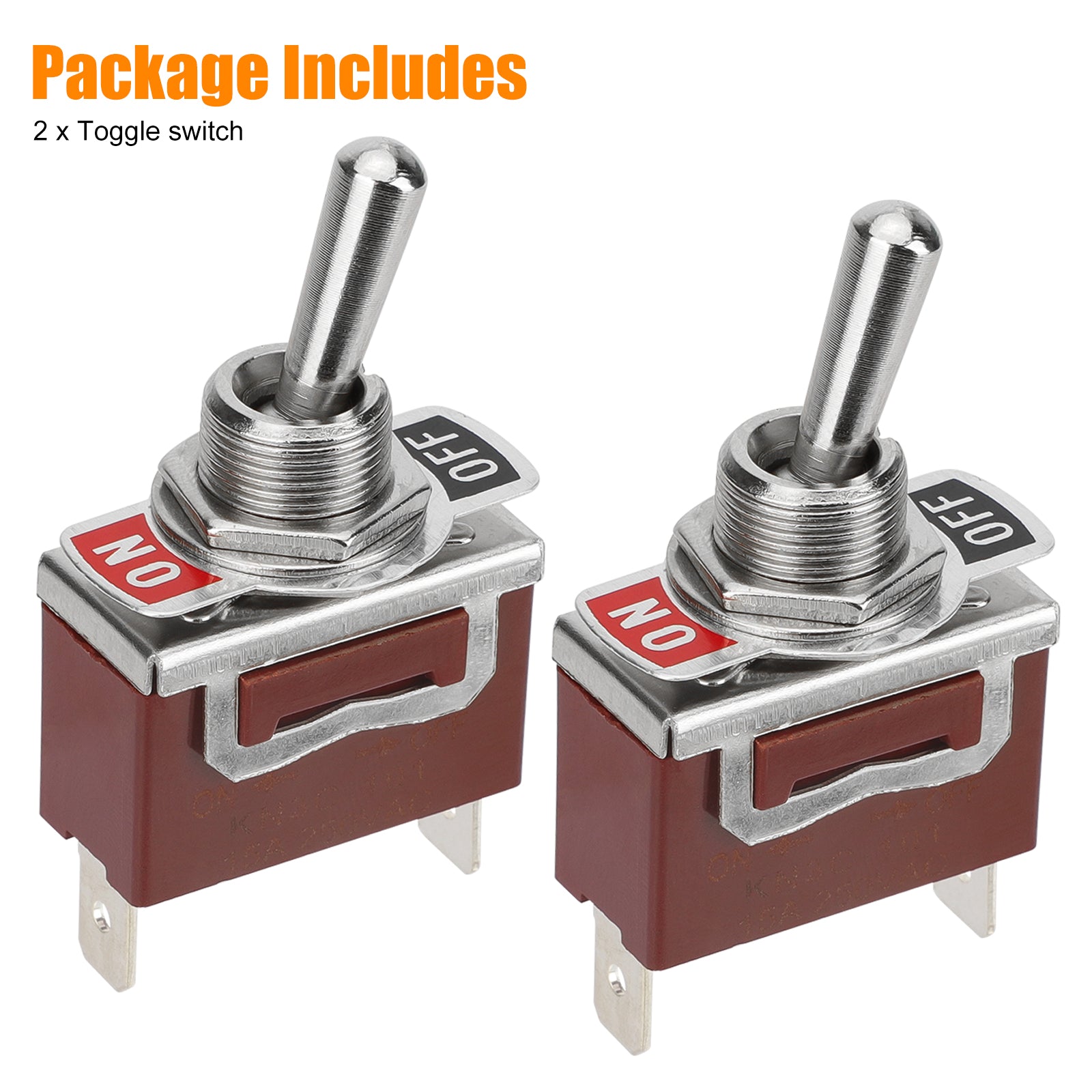 Upgrade your control options with our Multifunctional 2-Pin SPST Toggle Switch. Designed for easy ON-OFF operation, this heavy-duty switch boasts a robust metal and plastic construction with reinforced handles and flame-retardant housing, ensuring lasting durability. With screw terminals for quick installation, it's ideal for various applications, including automotive, marine, and household appliances.