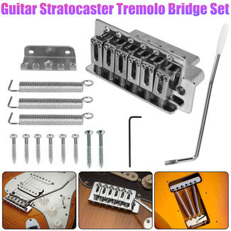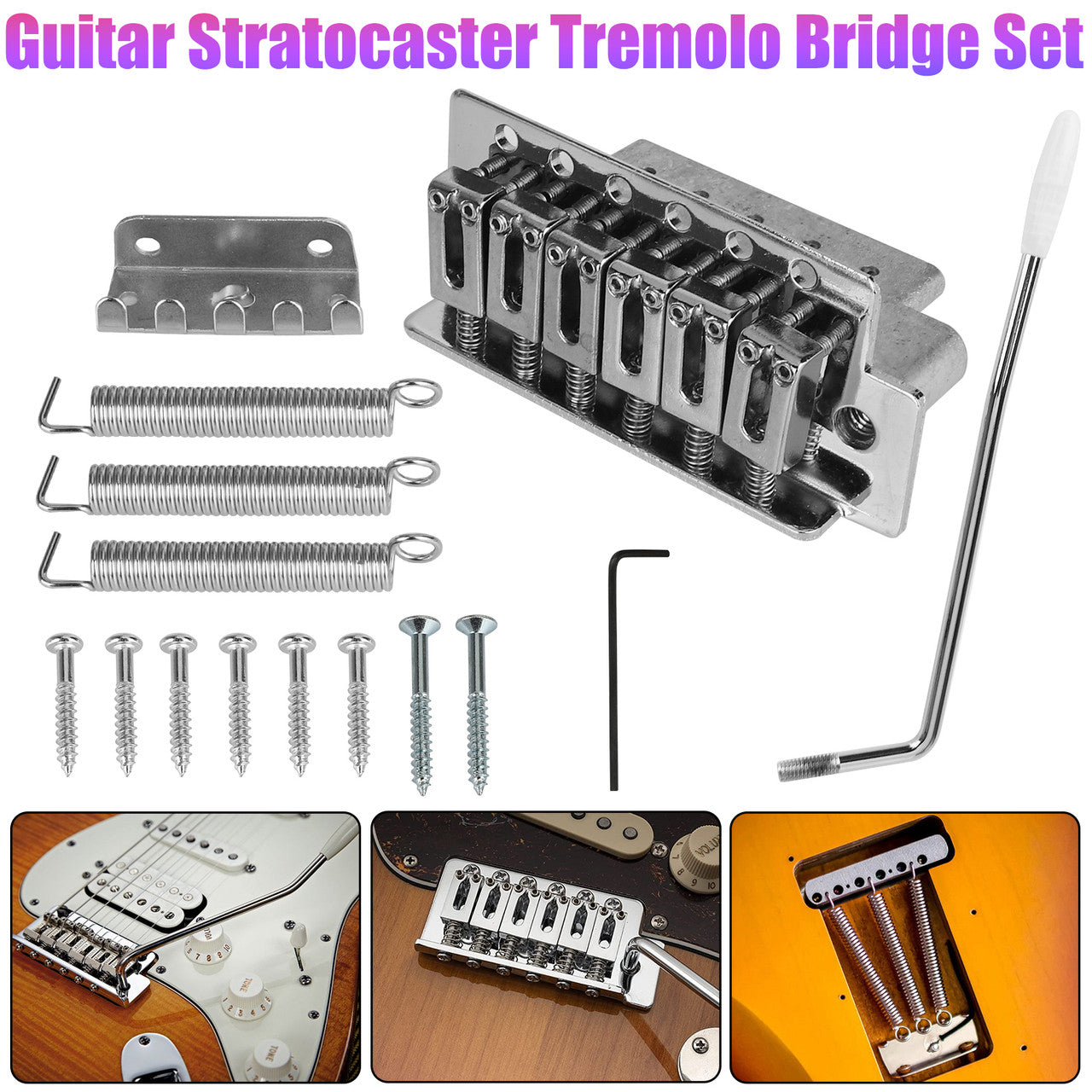 Product Features:● Fits for Fender Stratocaster or Squier Style Electric Guitar High gloss chrome unit with six individually adjustable nickel plated bent steel saddles. ● Length 84.3mm, Width 42mm, Strings spacing and screw hole spacing from E to E 52.5mm. Block Depth 35mm. The depth of the block will fit most Stratocaster style guitars particularly thinner bodied models. ● The base plate and saddles are made of steel, the block is made of cast metal, Chrome plated base plate and saddles. Complete with tremolo block, tremolo arm, springs & retainer, all screws & Allen key.