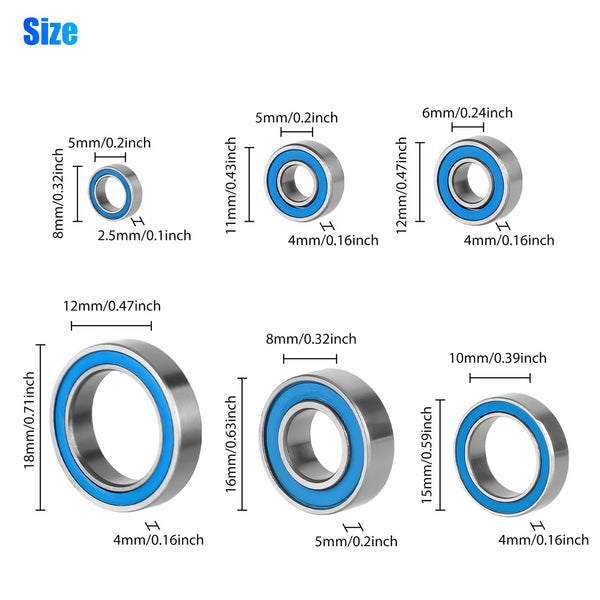 5 X 10x15x4mm # 6700-2RS-BU1 X 12x18x4mm # 6701-2RS-BU7 X 5x11x4mm # MR115-2RS-BU4 X 5x8x2.5mm# MR85-2RS-BU