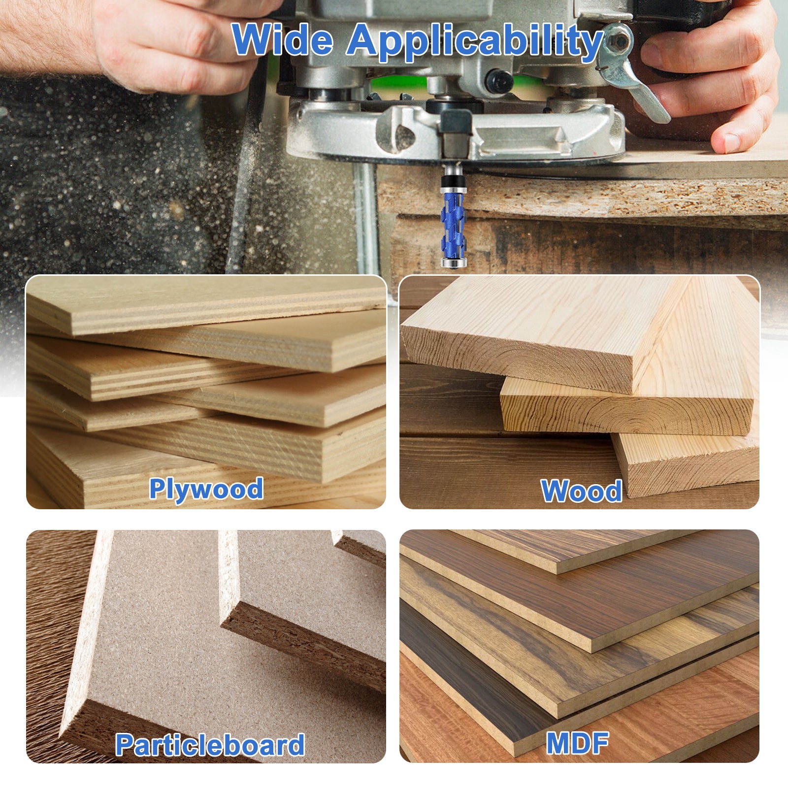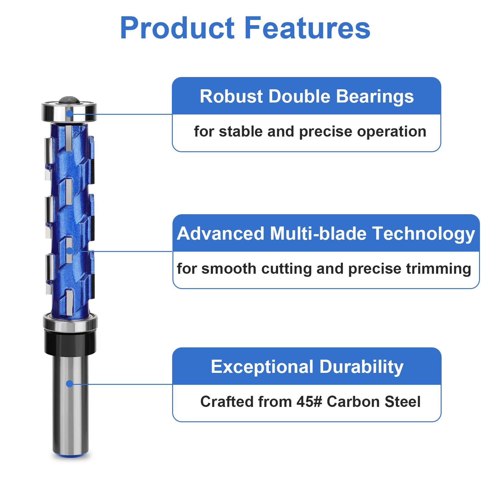Crafted with thickened tungsten steel, our two-piece spiral flush trim router bit set ensures exceptional durability and precise wood trimming. Enhance your woodworking efficiency and safety with advanced multi-blade technology and robust double bearings. Perfect for sanding patterns or edges on solid wood boards, particle boards, and MDF.
