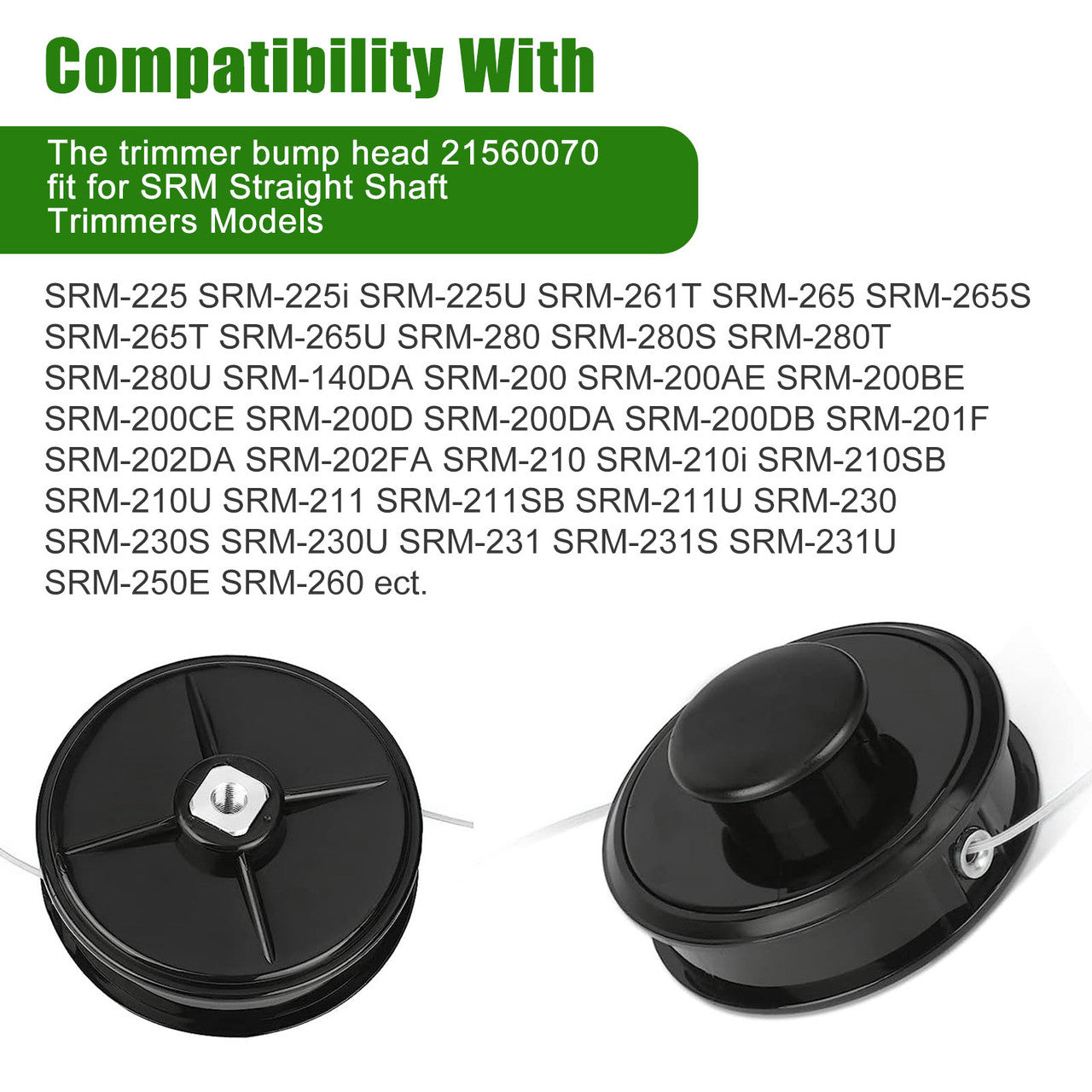 Our replacement trimmer bump head is compatible with various Echo models and provides a convenient and efficient solution for your trimming needs. It fits SRM Straight Shaft Trimmers and Echo models such as GT225, PAS-225, SRM225, SRM230, SRM265, and more. The trimmer bump head is easy to install, allowing you to reload the spool without turning the trimmer upside down. Its split design reduces tangles and wire bonding, ensuring a smooth trimming experience. Made of high-quality ABS and PVC materials, this trimmer head is durable and abrasion-resistant, guaranteeing long-lasting performance.