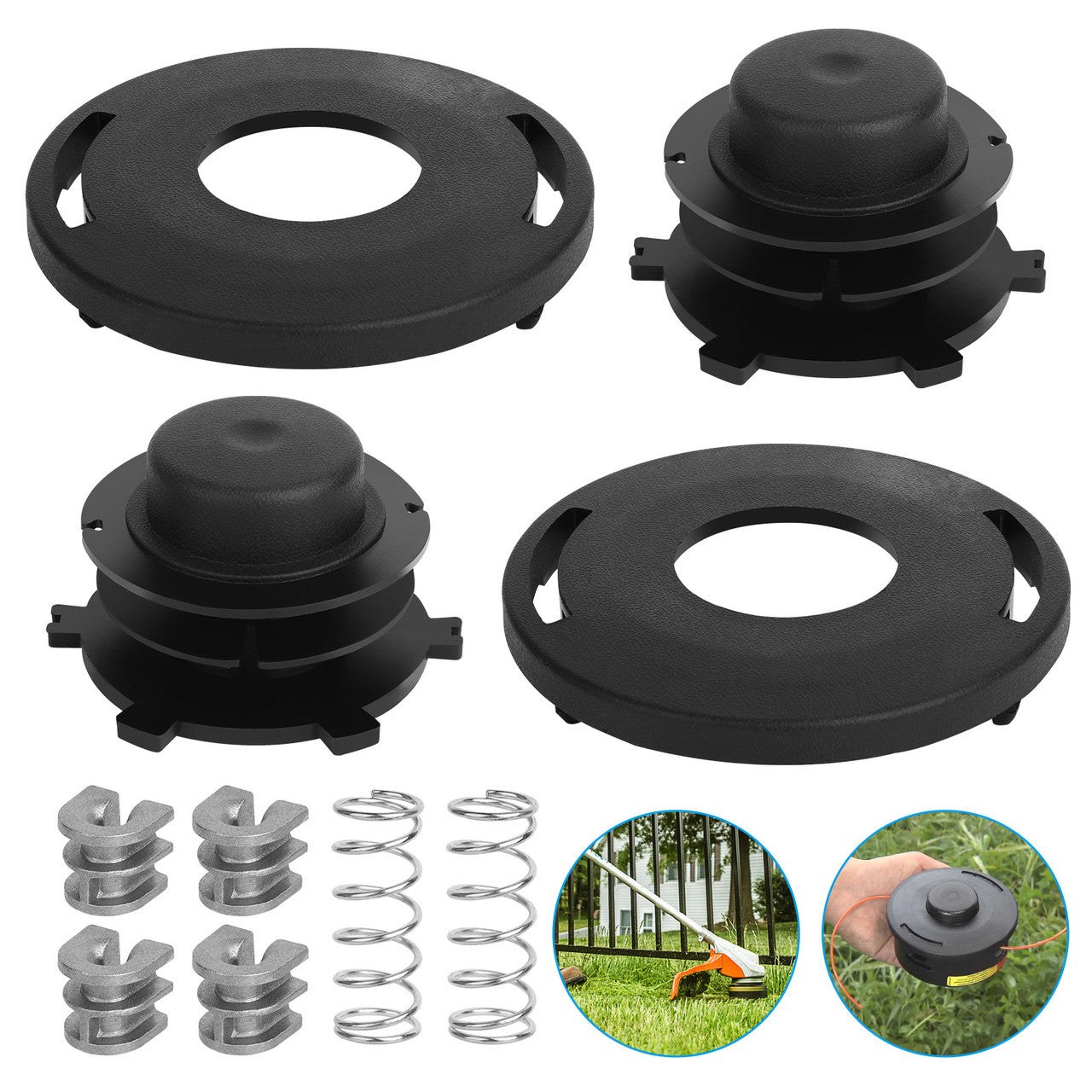 2 X Trimmer Head Spool2 X Trimmer Head Cover2 X Trimmer Head Spring4 X Line Feed Eyelets