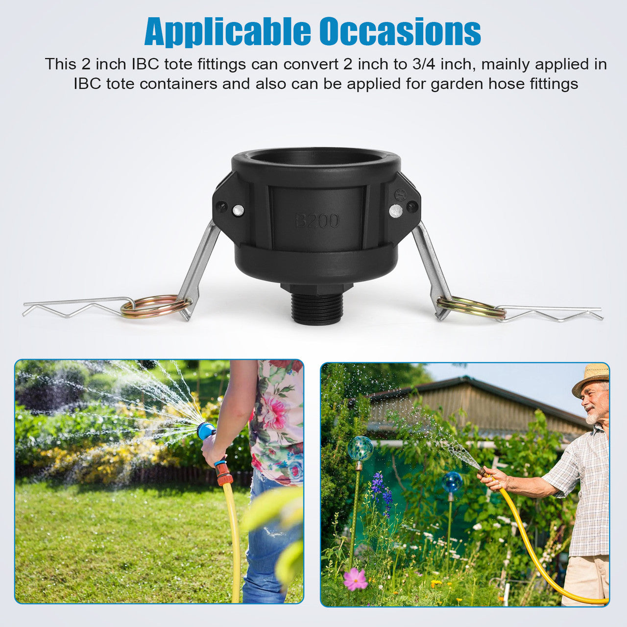 Product Features:● This 2 inch IBC tote fittings can convert 2 inch to 3/4 inch ● Mainly applied in IBC tote containers and also can be applied for garden hose fittings
