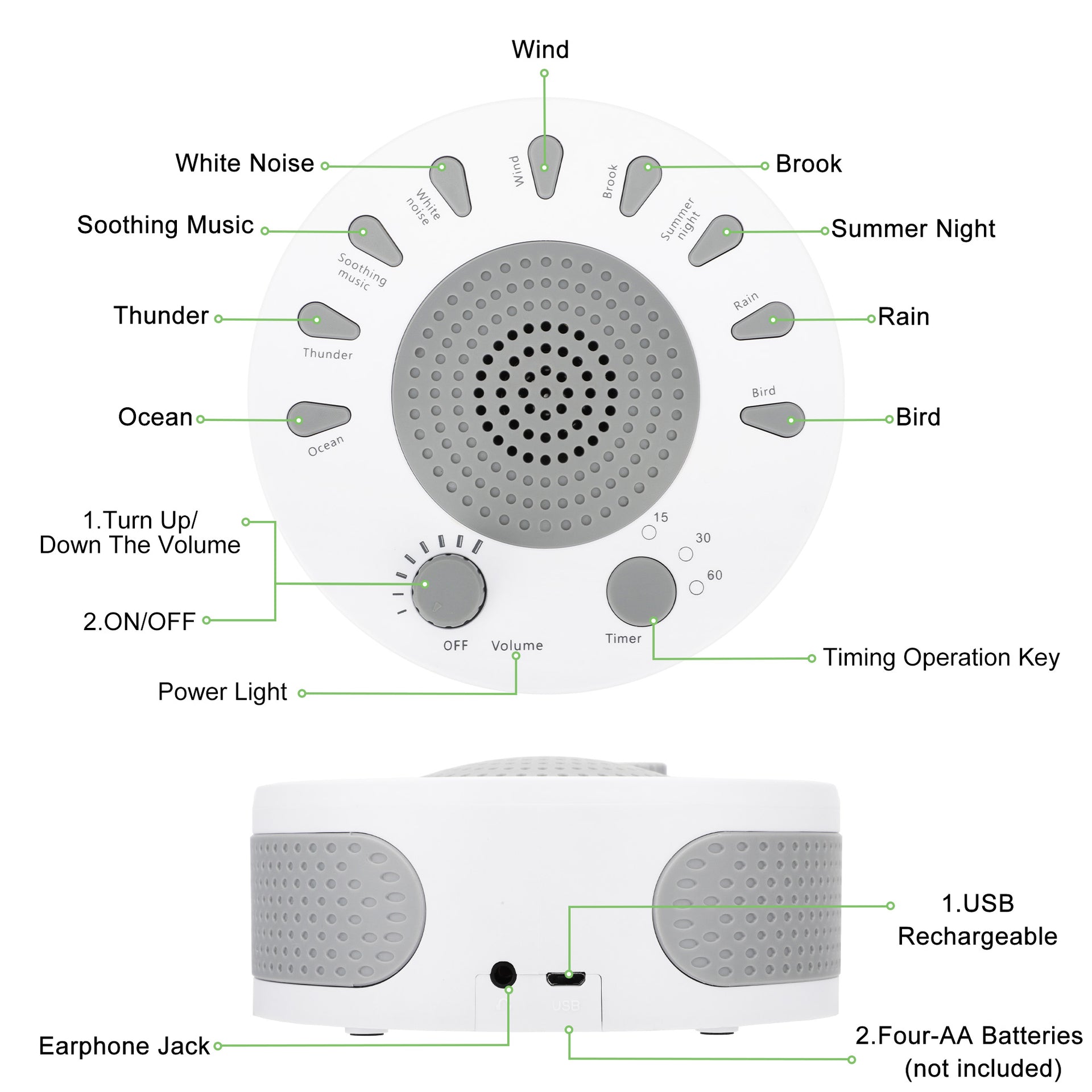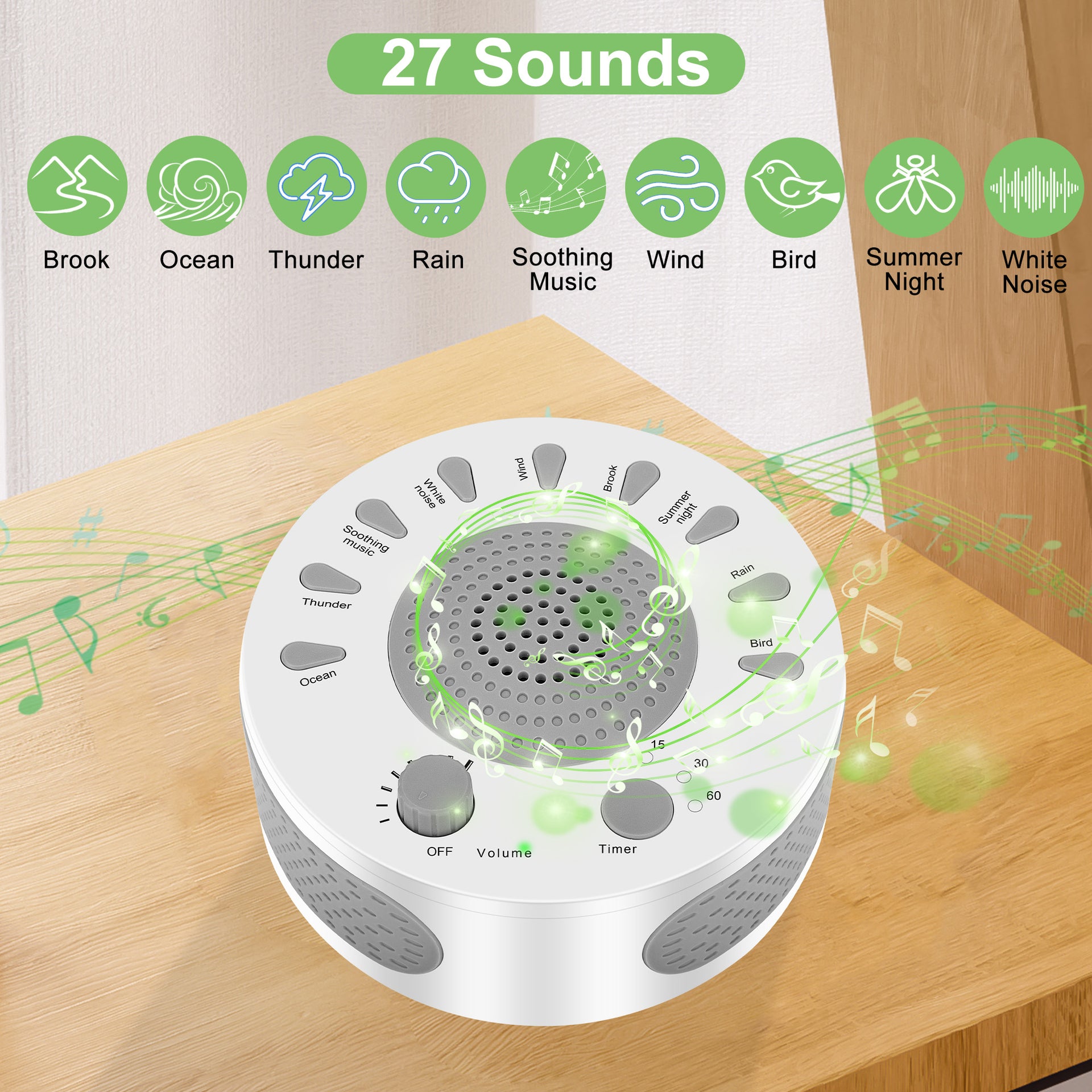 Craft your personal oasis of calm with our White Noise Machine. Featuring 27 diverse sounds, a convenient timer, and memory function, this portable sound machine creates a tranquil atmosphere that promotes deep sleep, relaxation, and concentration. Whether at home, in the office, or on the move, find your Zen with this versatile sleep aid and sound therapy companion.