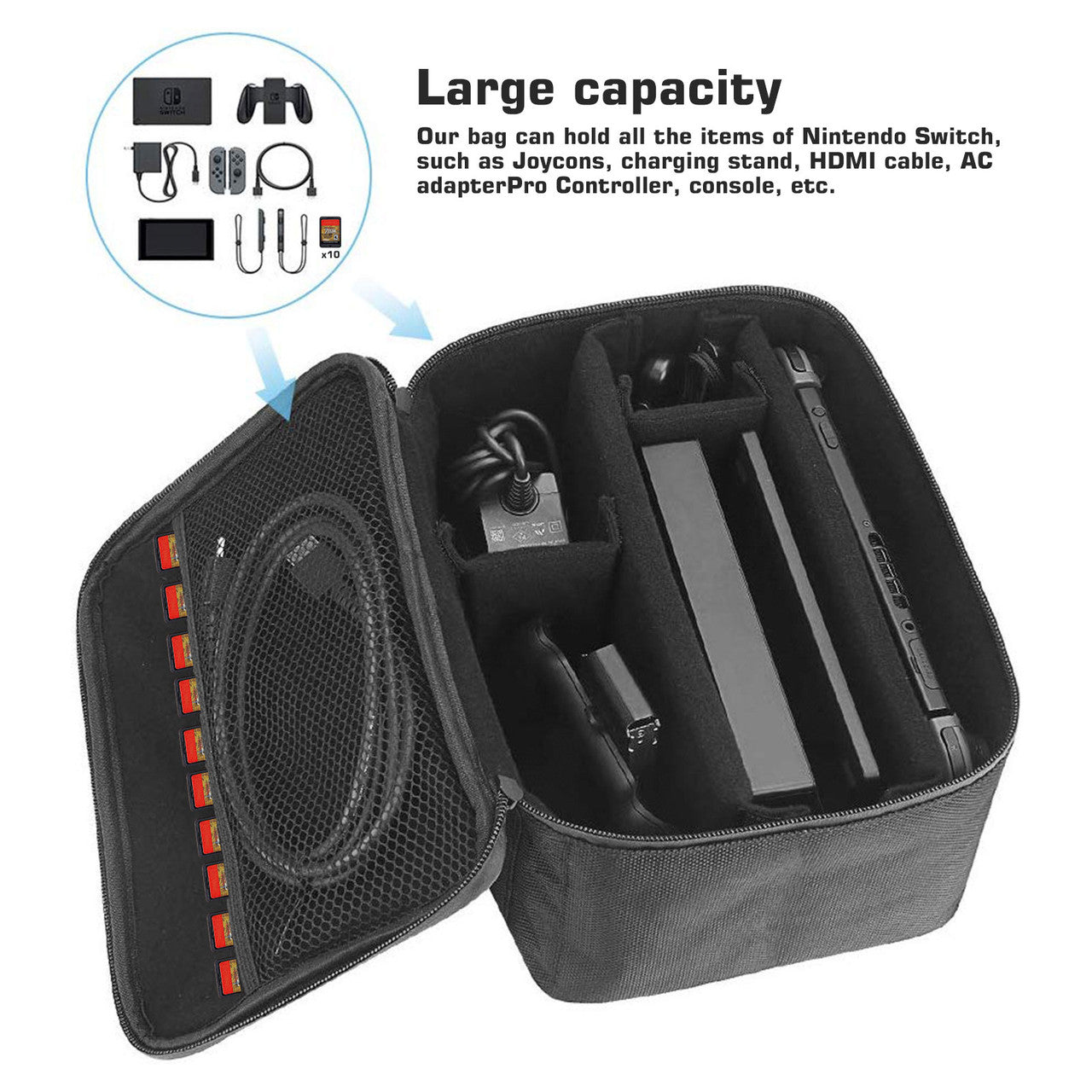 ✅Large Capacity: It can hold everything of the Nintendo Switch, such as, Joycons, Charging Cradle, HDMI cable, AC adaptor, Pro Controller, Console, etc.