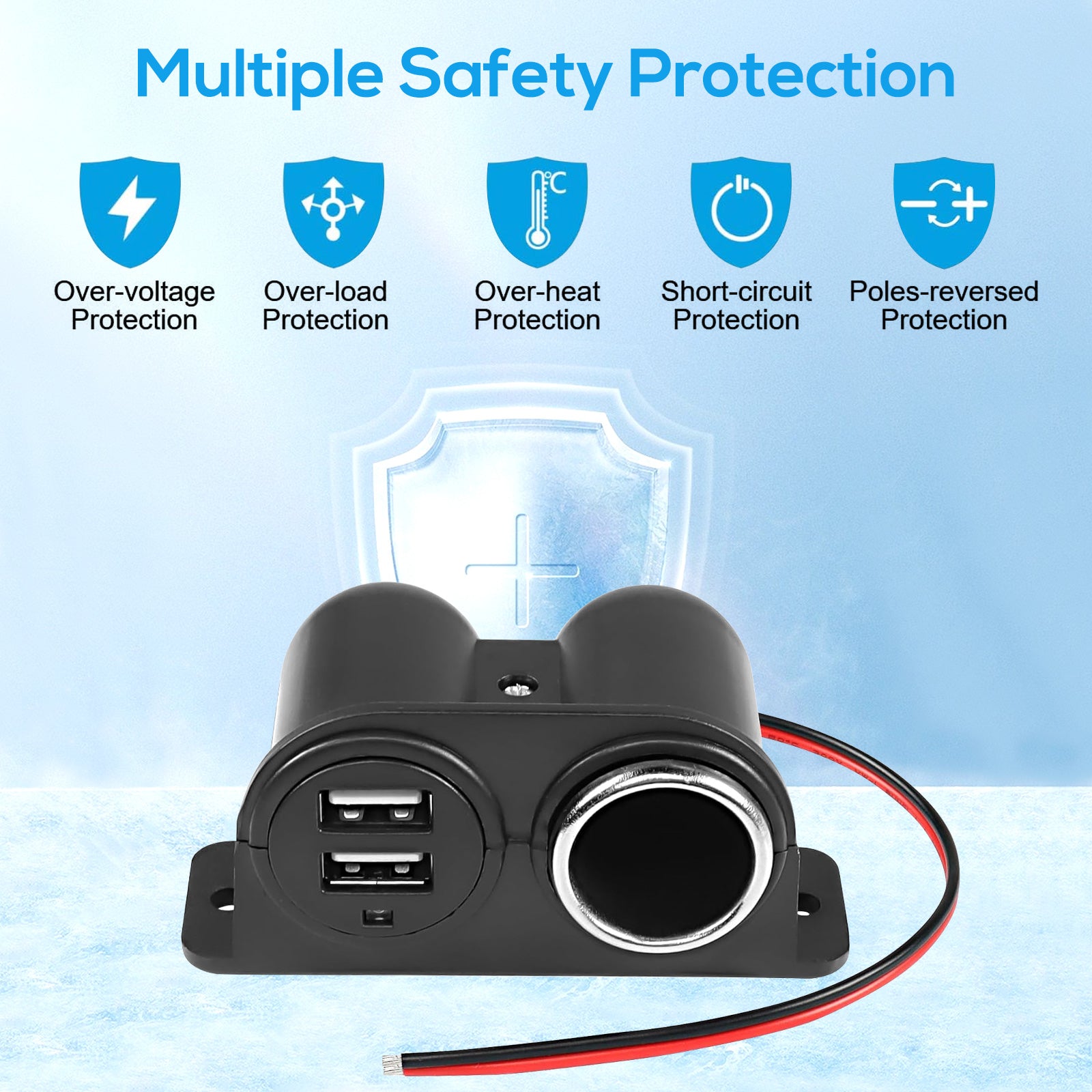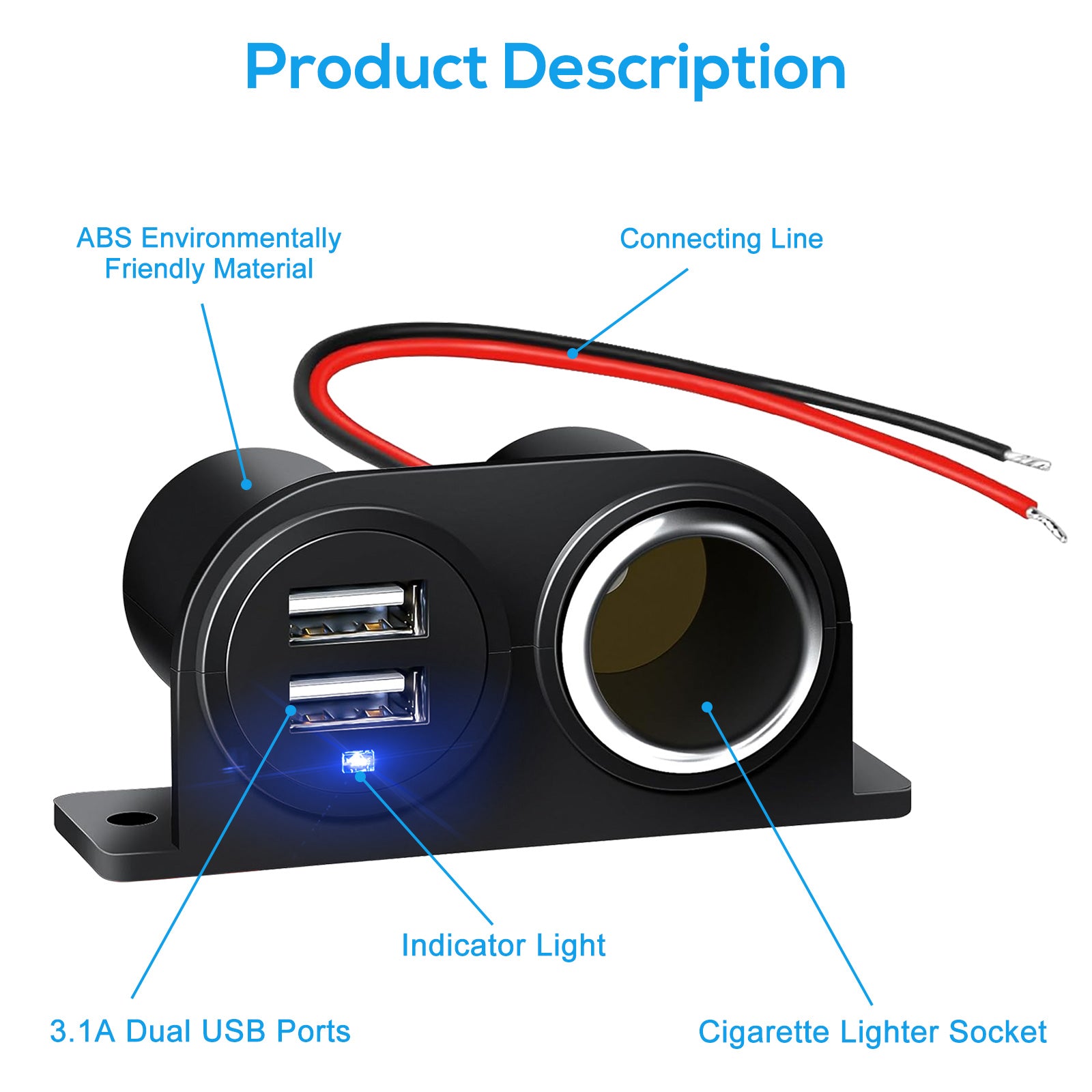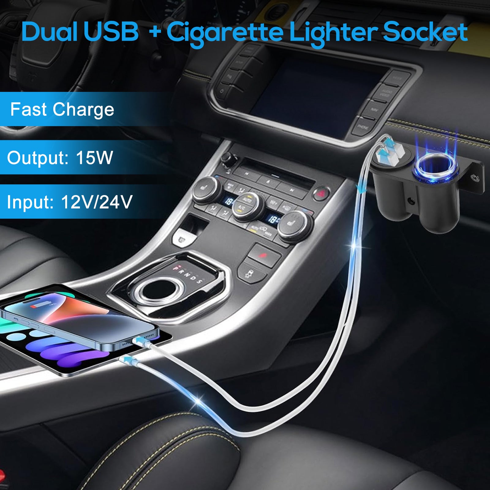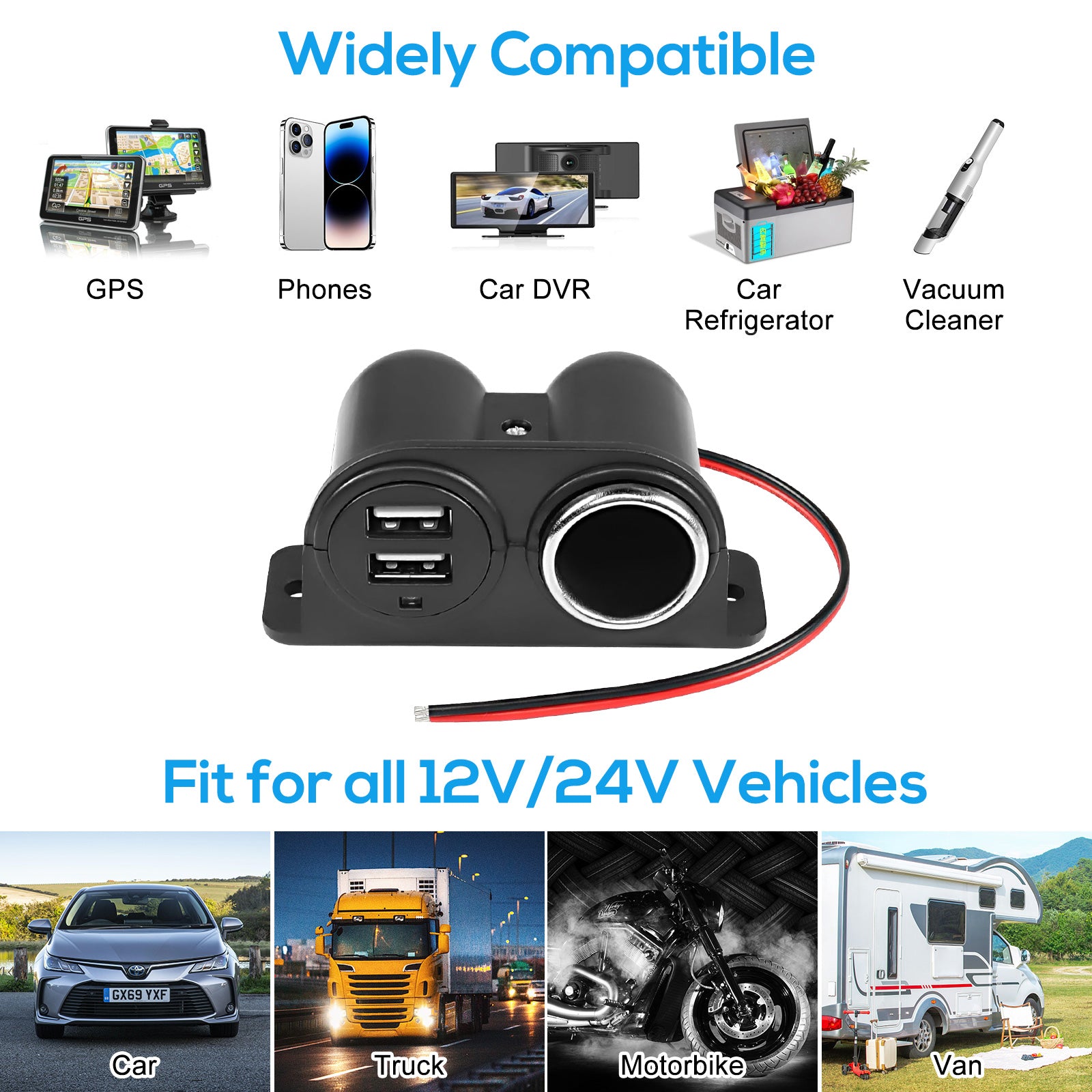 Upgrade your vehicle's charging capabilities with our Dual USB Car Cigarette Lighter Socket Splitter. Designed for convenience and compatibility, this 12V/24V power outlet ensures you can keep your essential devices fully charged while on the go. Whether you're driving a car, truck, motorcycle, or sailing in a boat, our splitter transforms your cigarette lighter socket into a multifunctional power hub. The durable construction paired with an intelligent LED indicator makes it the perfect companion for all your charging needs.