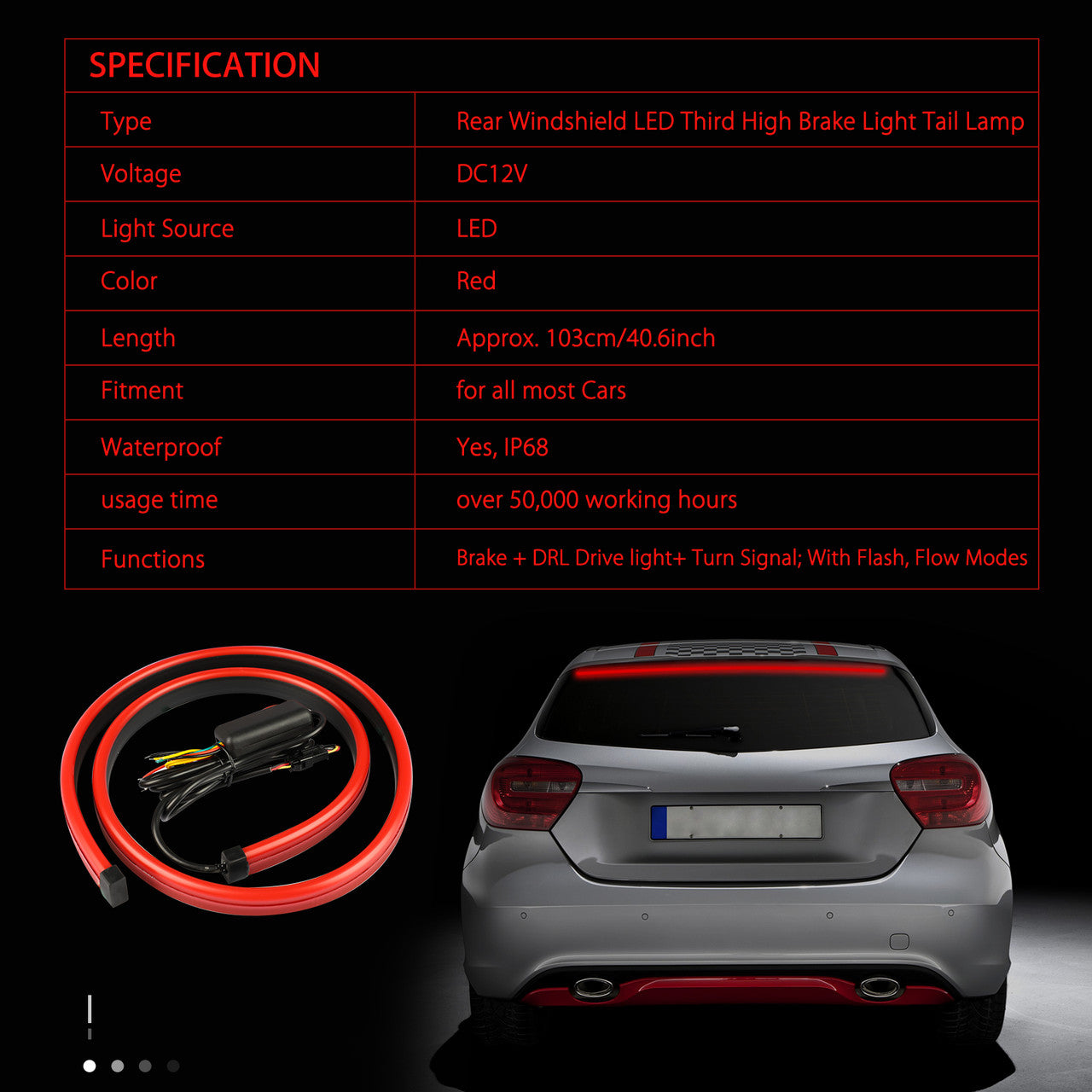Functions: Brake + DRL Drive light+ Turn Signal; With Flash, Flow Modes