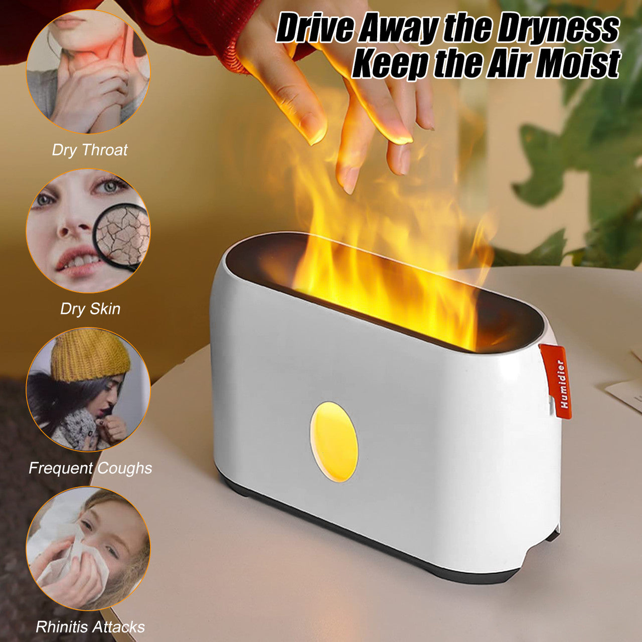 Portable Ultrasonic Noiseless Essential Oil Fire Diffuser With Night Light Flames