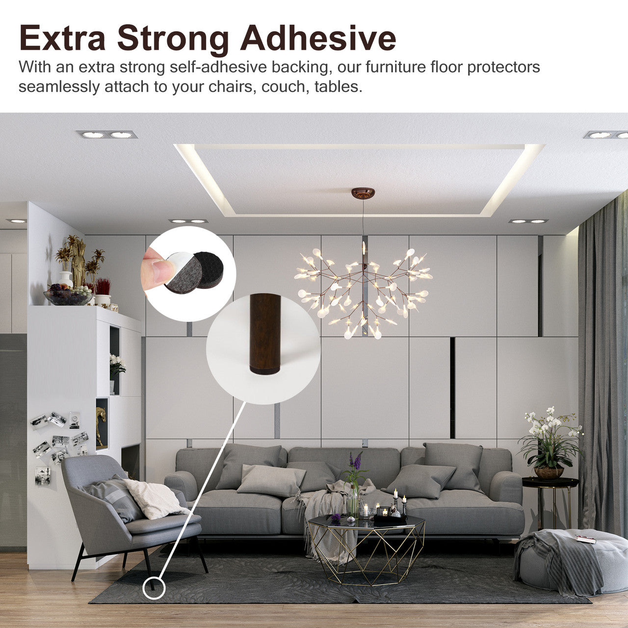 ✅Extra Strong Adhesive: With an extra strong self-adhesive backing, our furniture floor protectors seamlessly attach to your chairs, couch, tables.