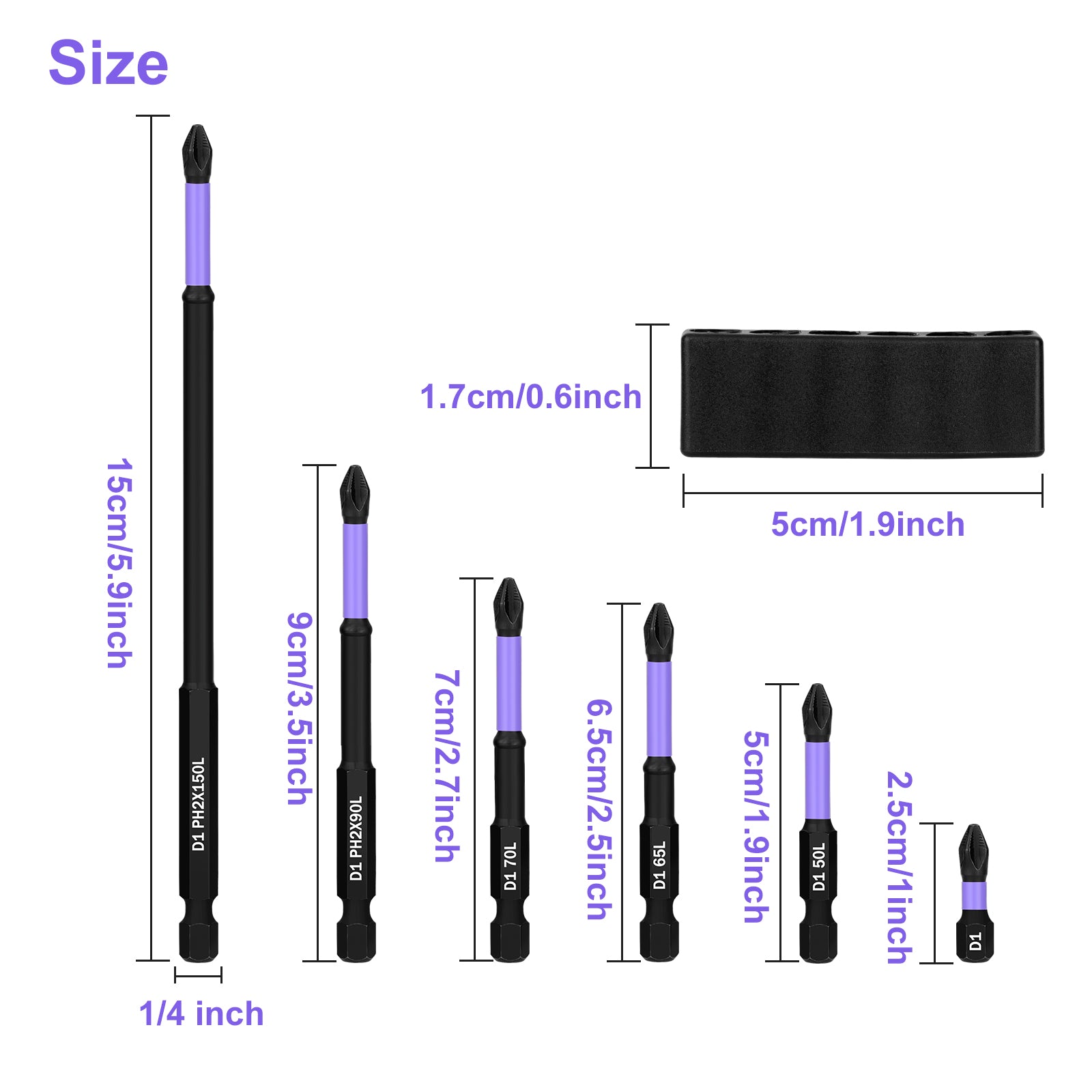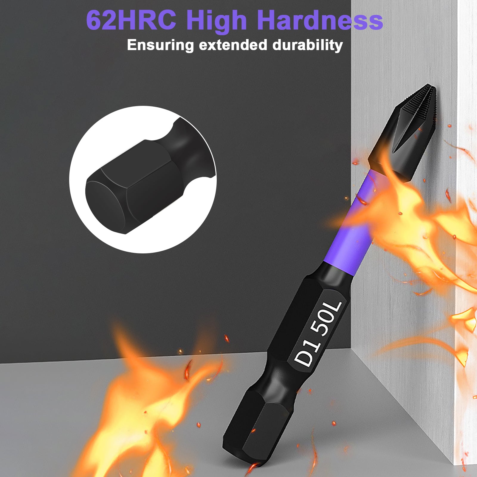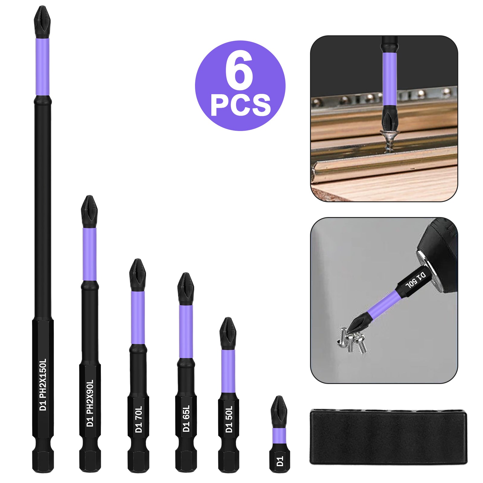 Enhance your toolbox with our 6-piece D1 Anti-Slip Phillips Bits Set. Crafted from durable S2 steel, these bits feature high hardness, magnetic grip, and rust resistance, ideal for various tasks using manual or electric impact drivers.