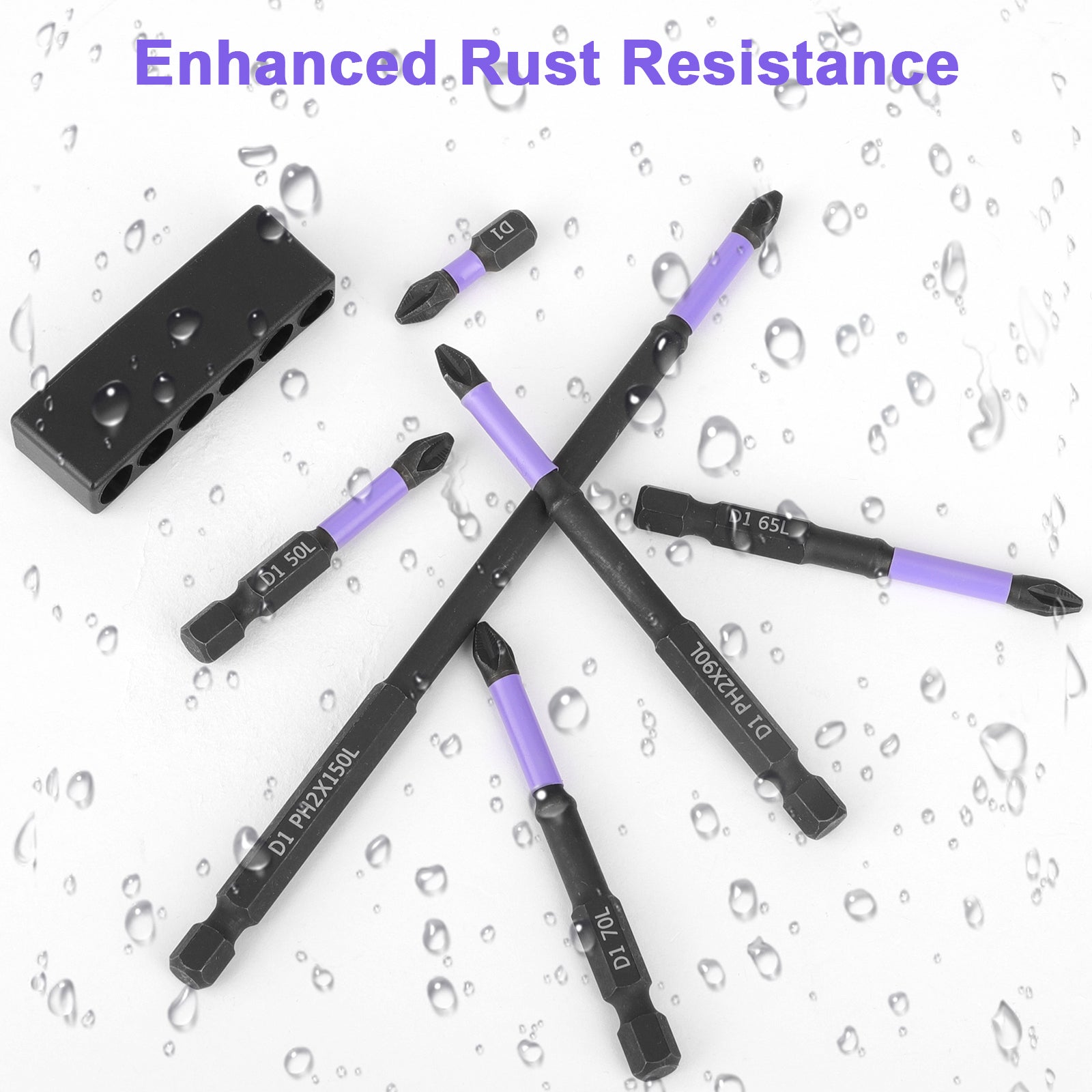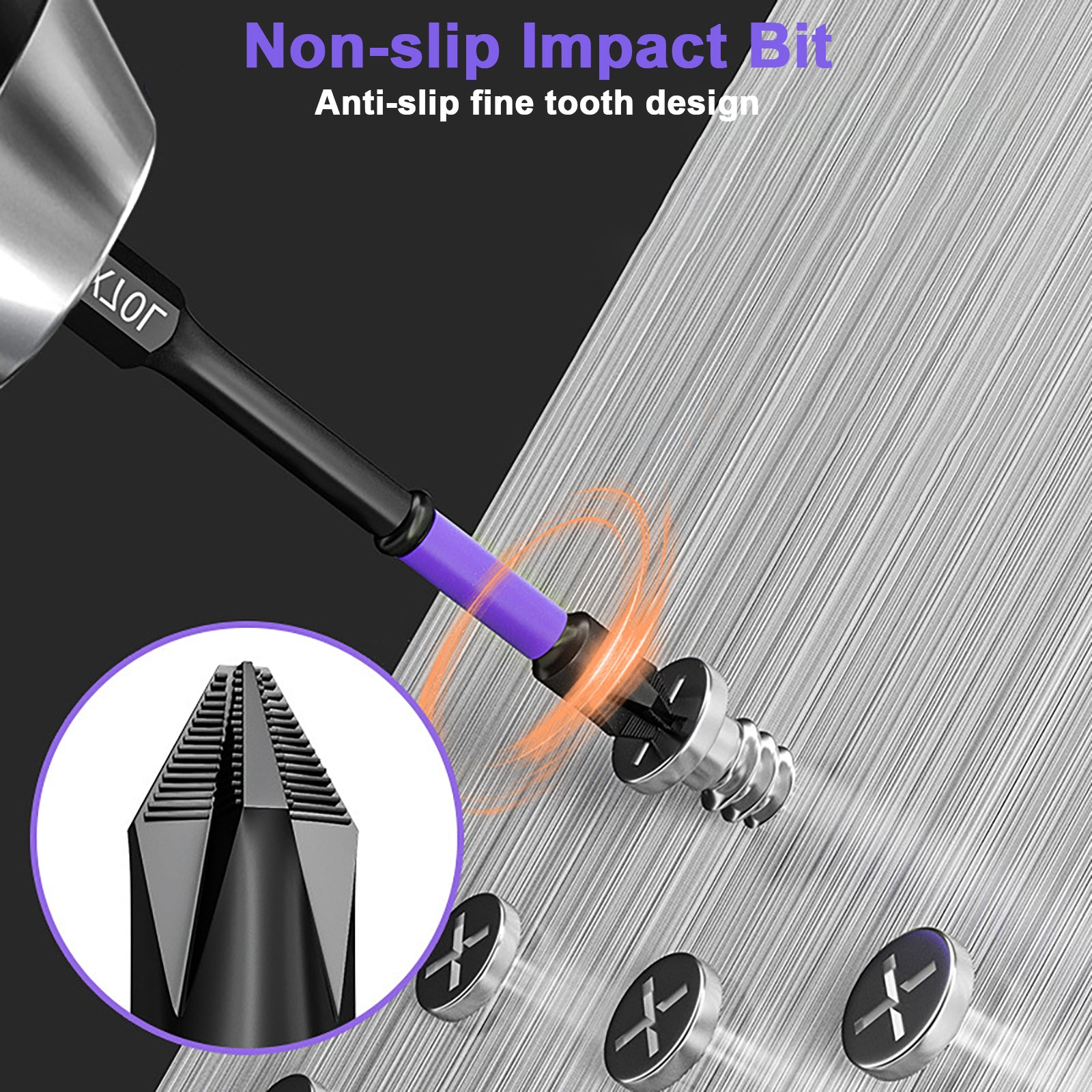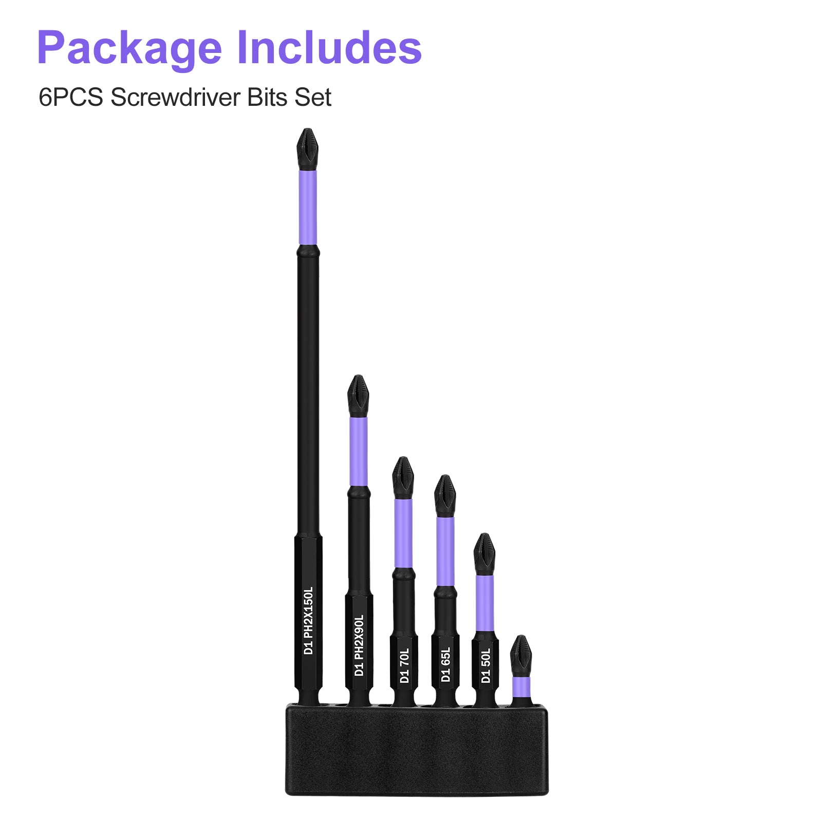 Enhance your toolbox with our 6-piece D1 Anti-Slip Phillips Bits Set. Crafted from durable S2 steel, these bits feature high hardness, magnetic grip, and rust resistance, ideal for various tasks using manual or electric impact drivers.