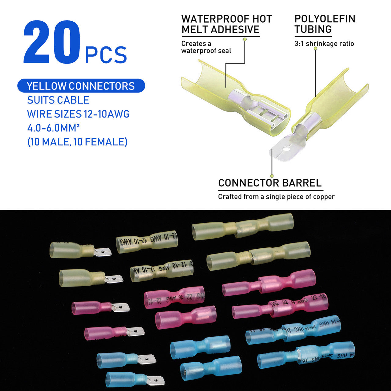 20pcs Yellow connector: Suits cable / wire sizes 4.0-6.0mm² 12-10 AWG (10Femle, 10Male)