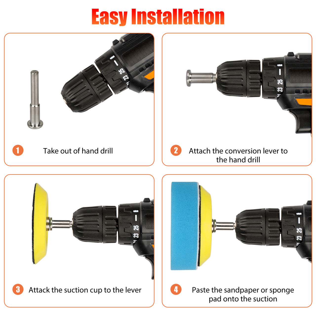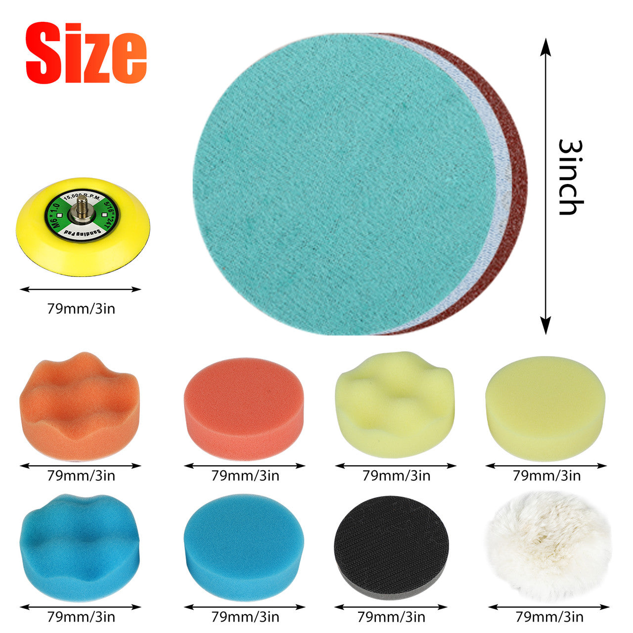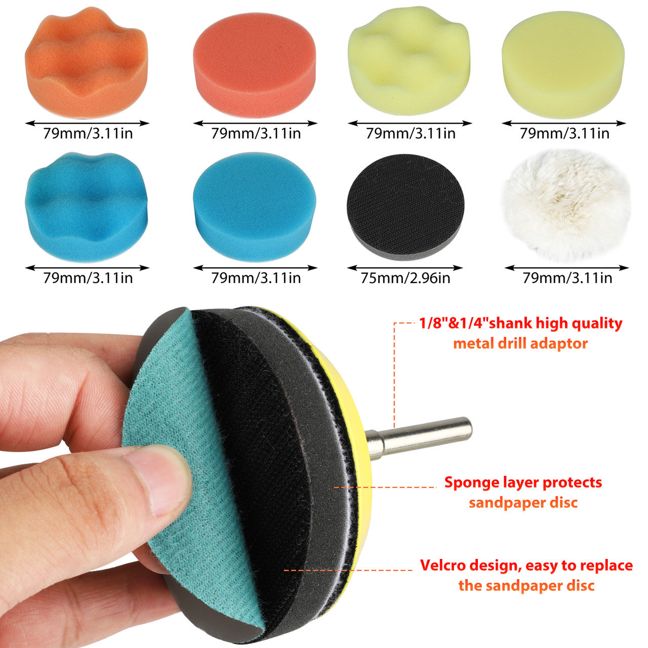Product Features:● High-Quality Sandpaper: This sanding disc kit is made of high quality coated aluminum oxide particles with good abrasion resistance, anti-static and anti-clogging properties, which facilitates the polishing of car surfaces and corner cleaning. ● Practical Accessory: The soft foam cushion pad reduces wobbling and is ideal for polishing uneven surfaces. The foam pad adds support to the sanding pad, prevents pad damage and makes it easy to change the sanding disc. 1/4" and 1/8" shank pads are suitable for most types of rotary tools such as drills, die grinders. ● Sand Paper Variety Pack: Sand paper total includes 120pcs sandpaper,10Pcs of each grit:40/60/100/150/240/600/1000/1200/2000/300 /5000/7000. Wet and Dry Use: Made of high-quality materials ● It can be used wet or dry, efficiently grinding and polishing oxide layers and scratches on cars.Also good for arts and crafts, woodwork, painted surfaces, fiberglass, automotive, metal, jewelry, automobiles, mirrors, and plastic. Wide Applications: The sandpaper disc with sponge pad set is mainly used for polishing and cleaning automotive surfaces, such as headlight cleaning and polishing scratches. ●The sandpaper discs can also be used for wood, stone, lacquered surfaces and mirror finishes. Widely used for removing rust from a variety of complex surfaces on both metallic and non-metallic materials.