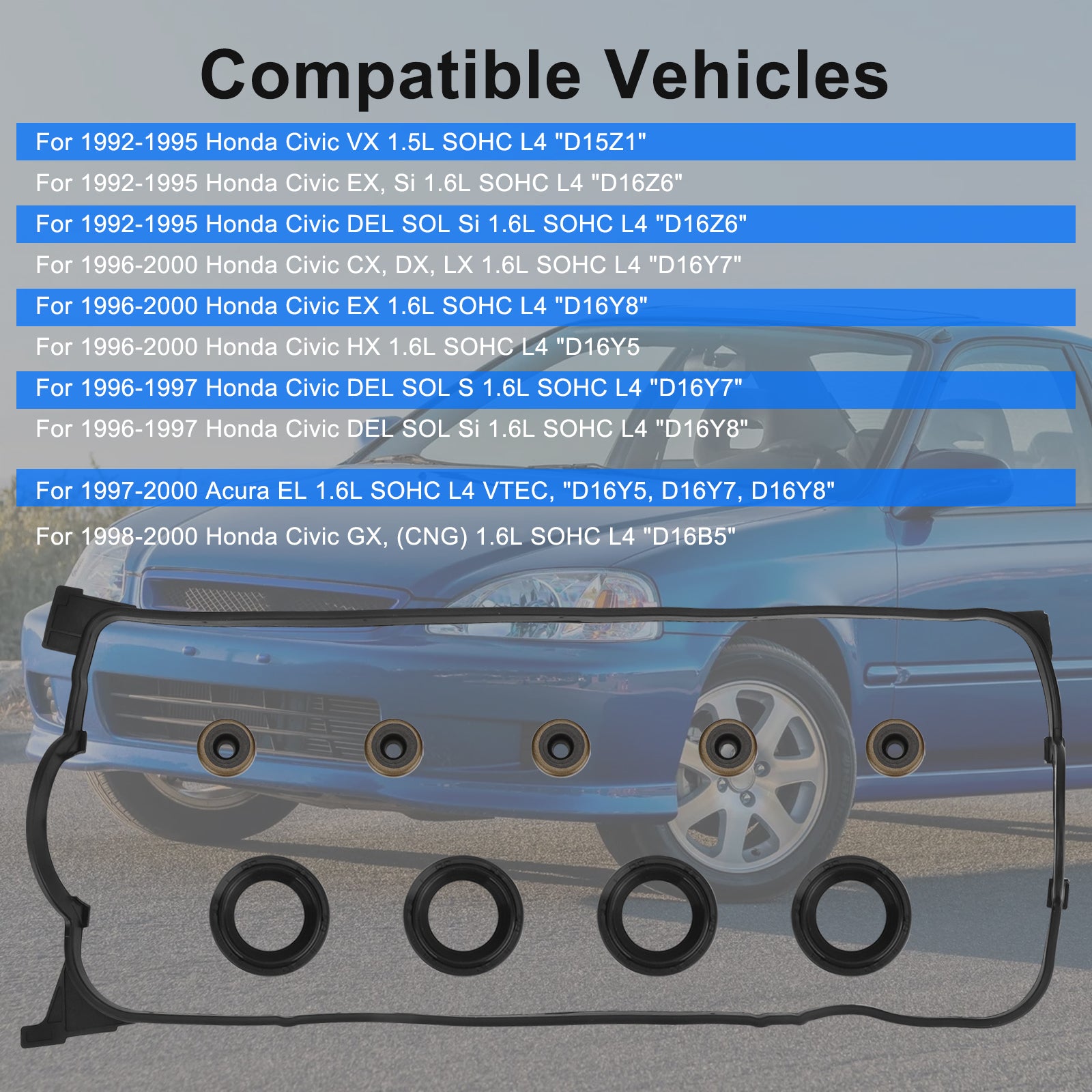 Ensure your Honda Civic or Acura EL remains in optimal condition with the VS50499R Valve Cover Gasket Set. Crafted from premium rubber through one-time vulcanization molding, these gaskets offer superior resistance to high temperatures, aging, and oil. Each gasket is elastomer-coated to provide a strong, perfect fit, ensuring outstanding sealing performance and preventing leaks. Ideal for replacing worn or damaged factory parts, this gasket set is easy to install with no special tools required.