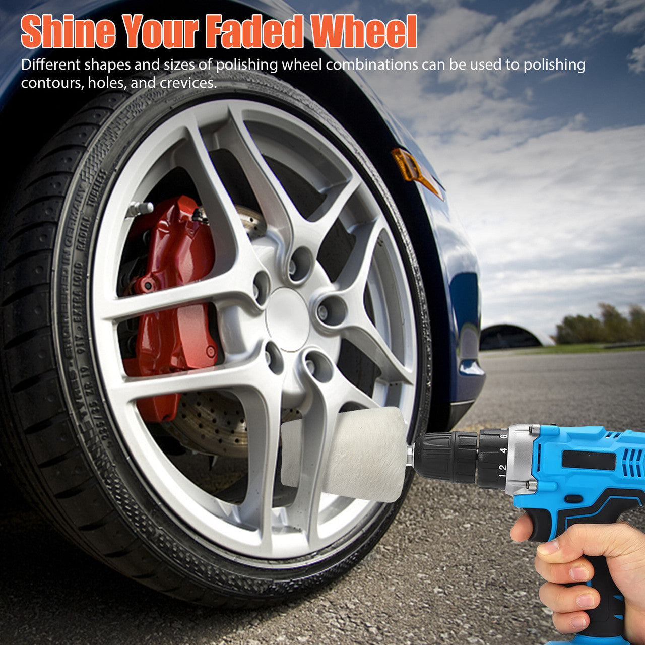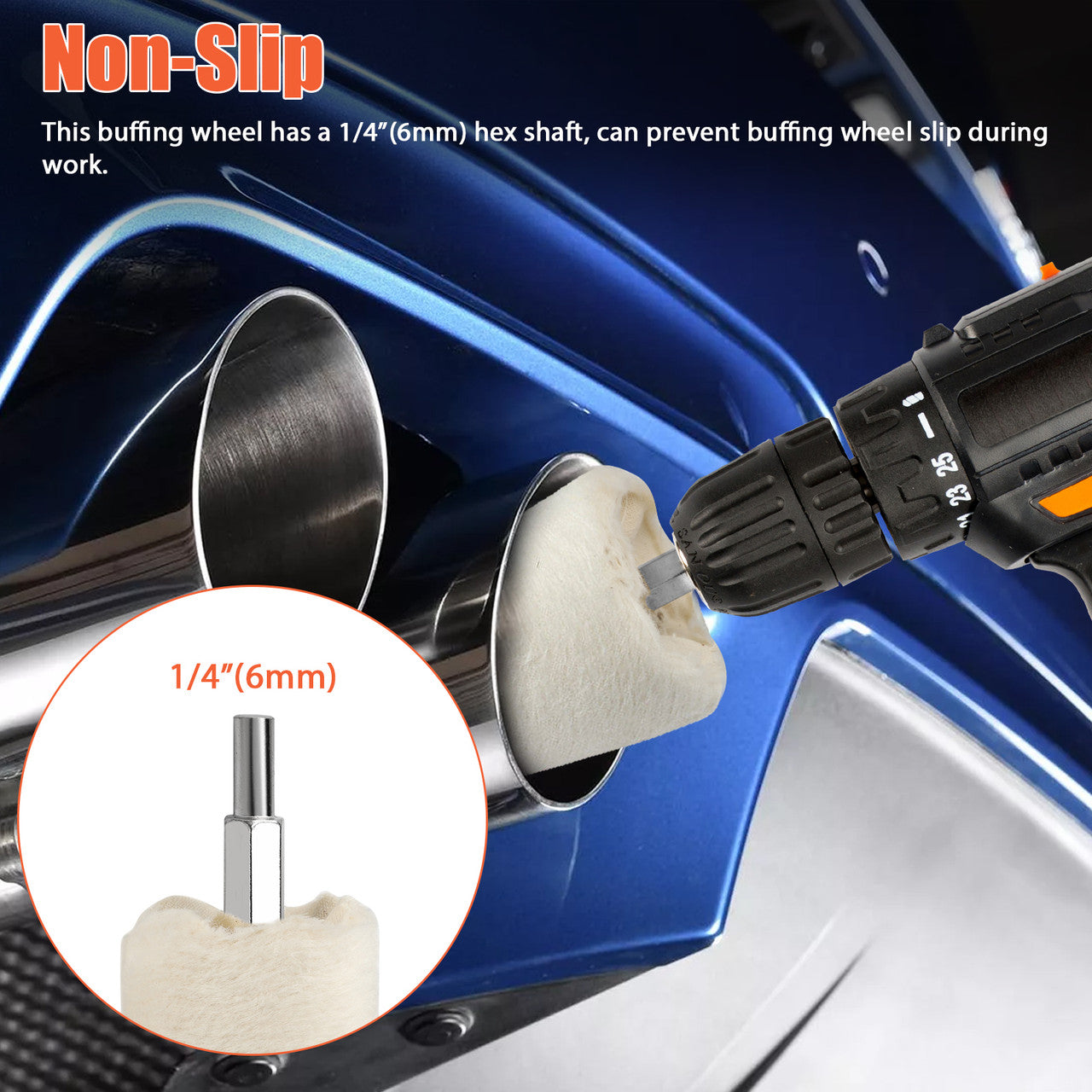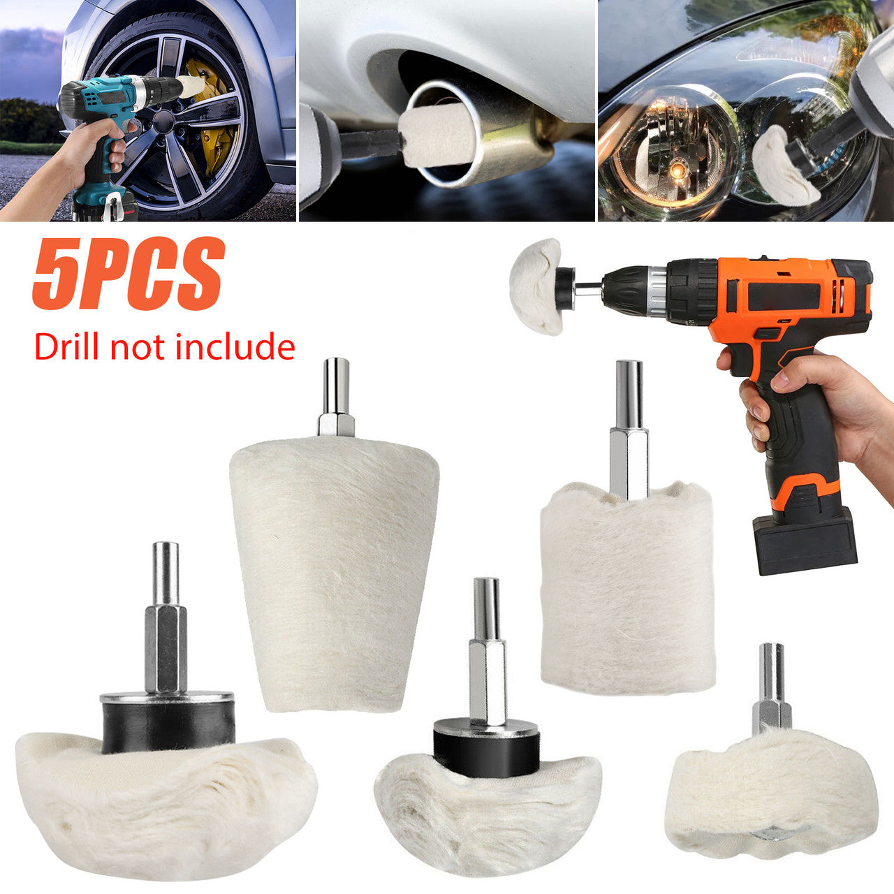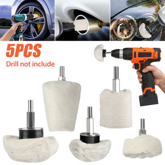 Include: 2Pcs mushroom buffing wheel, 2Pcs cylindrical buffing wheel, 1Pcs conical buffing wheel. (Total 5Pcs)