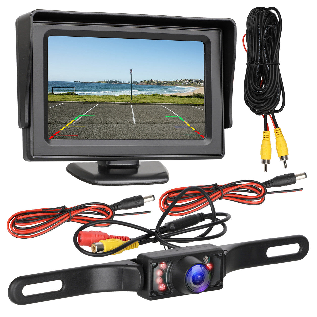 Backup Camera Monitor Kit for car, Universal License Plate Reverse Waterproof Night Vision Rearview HD Reversing Camera+4.3 inch LCD Rearview Monitor