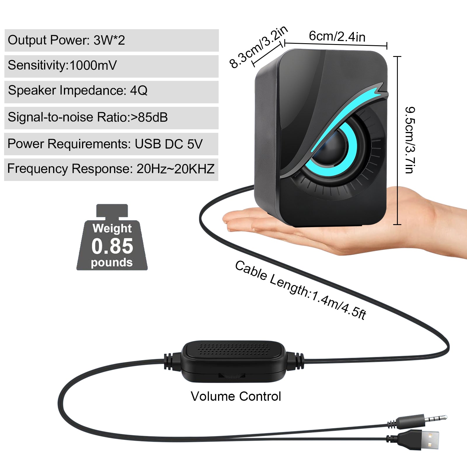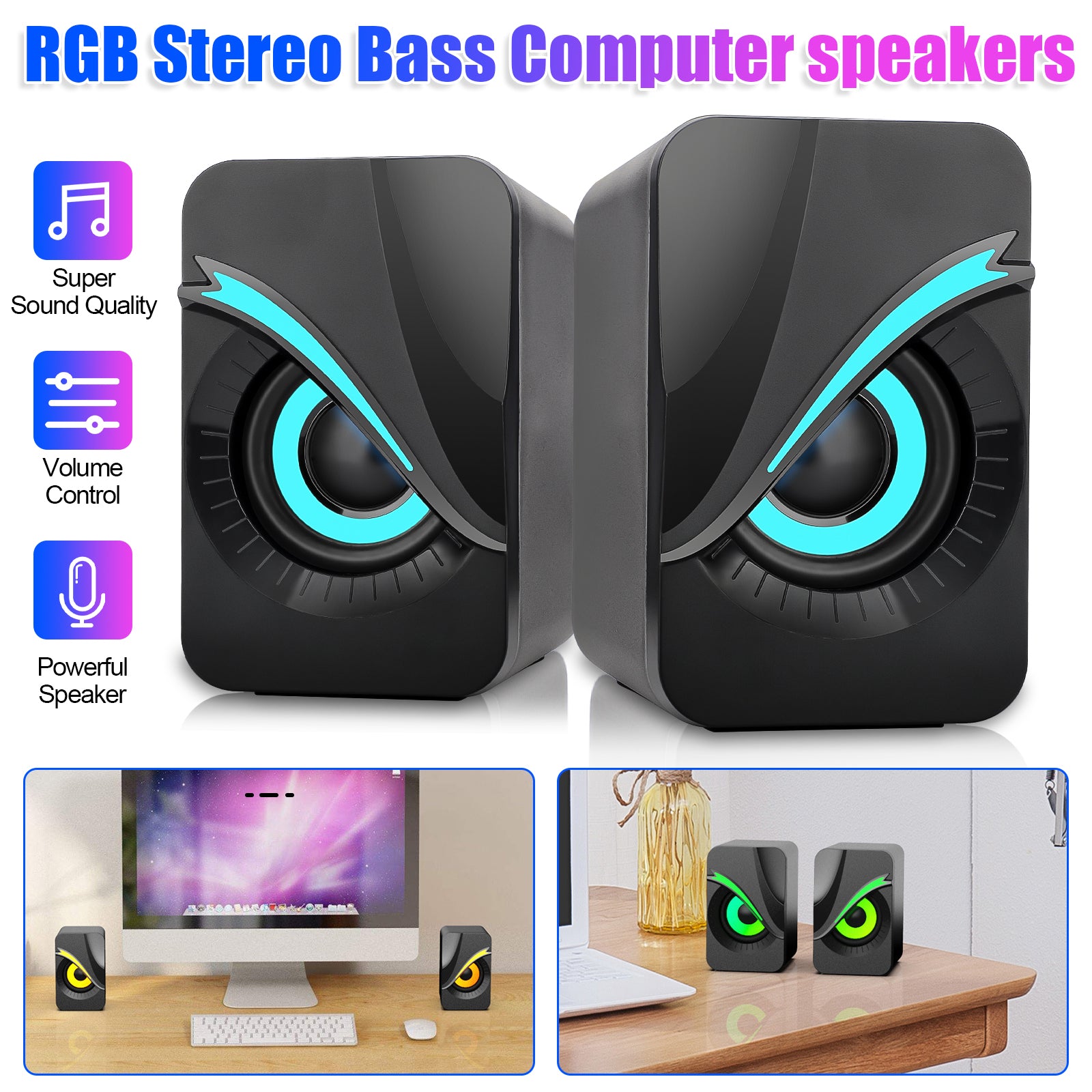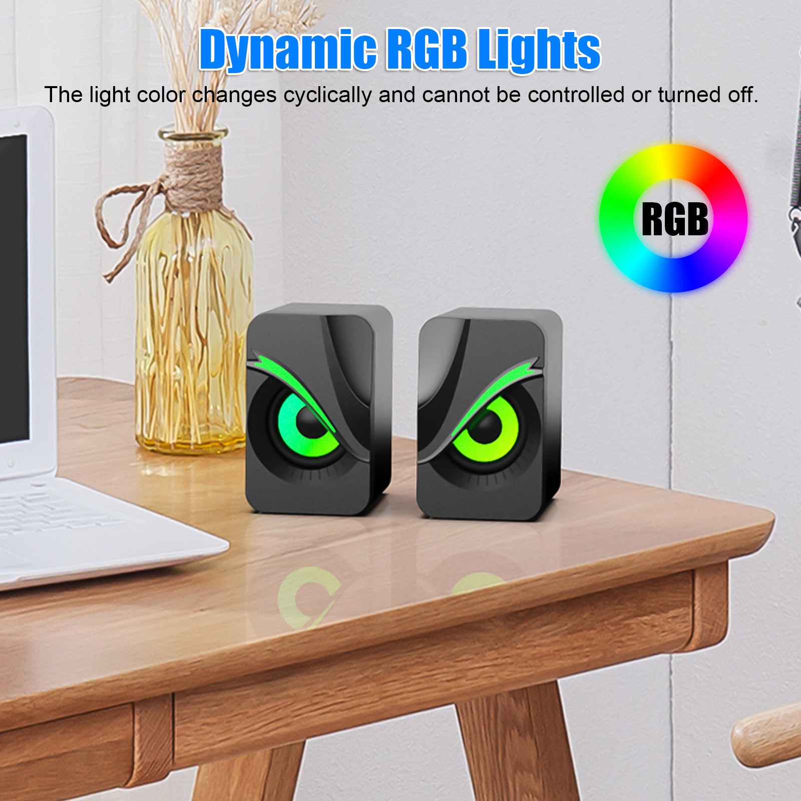 Discover an auditory delight with our RGB Wired Computer Speaker, where superior sound meets vibrant lighting. With two high-quality 3W speakers, this speaker system provides a total of 6W of rich audio output, ensuring immersive sound for all your music, movies, and gaming needs. The charming and changeable RGB LED lights create an engaging rhythm and atmosphere, perfect for modern homes and offices with a flair for style. This speaker’s compact size, combined with powerful bass and clear trebles, offers a portable yet potent sound solution that’s compatible with a multitude of devices.