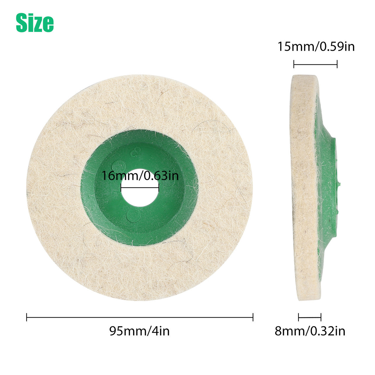 Product Specifications:✅Material: Wool fiber + Plastic✅Diameter: 4-Inch✅Bore Diameter: 16 mm✅Thickness: 8 mm