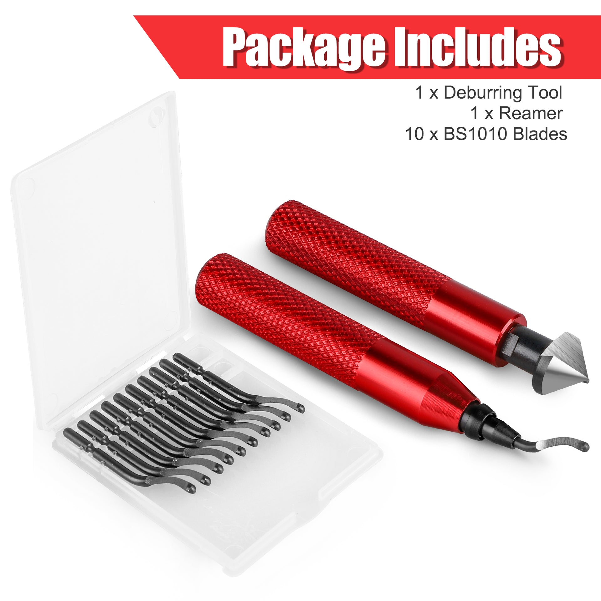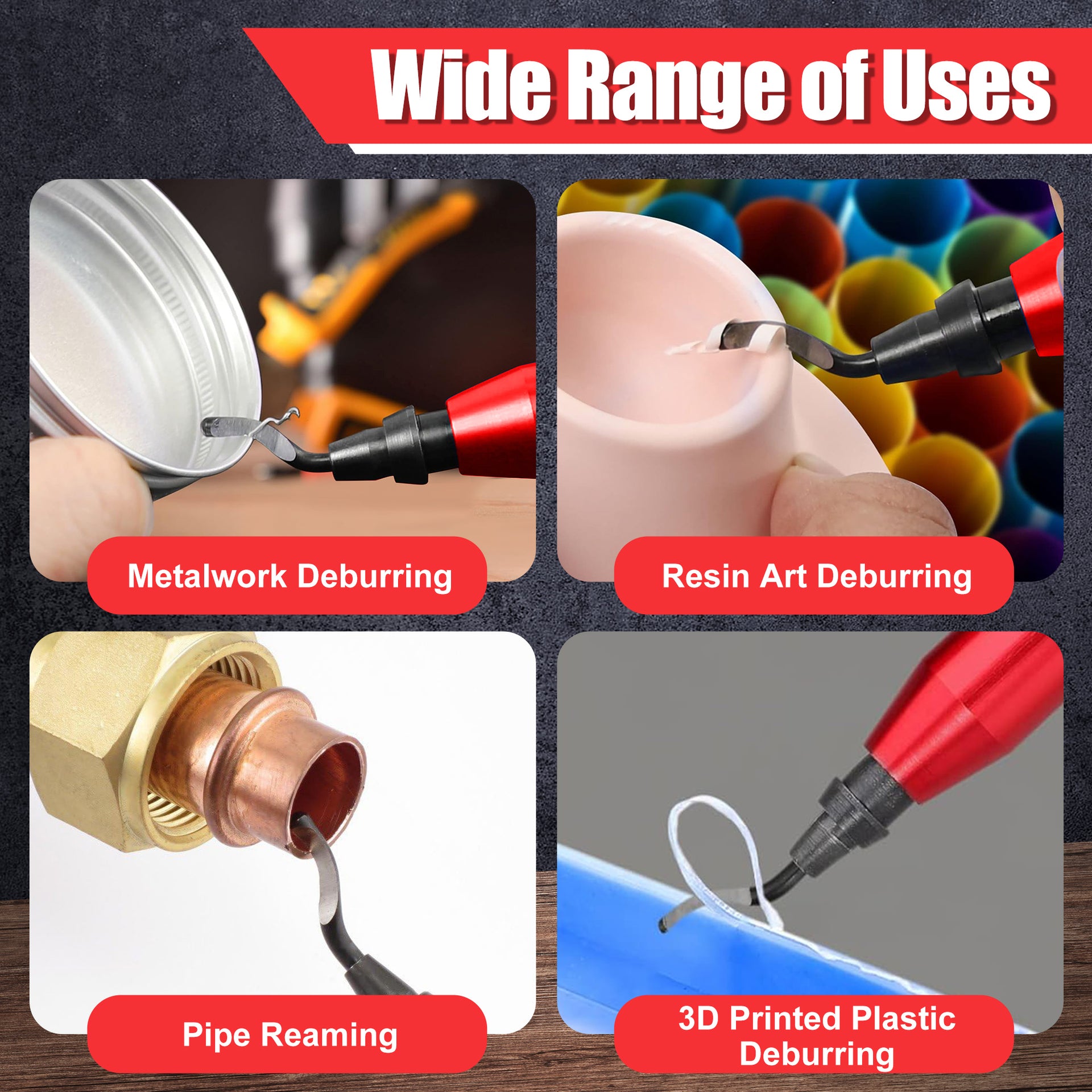 Our durable high-speed steel (HSS) blades outperform regular steel blades by 80%, ensuring prolonged sharpness, strength, and resistance to wear, even in demanding applications. The ergonomic aluminum handle of the deburring tool is tailored for a secure and comfortable grip, enabling precise and smooth operation every time.