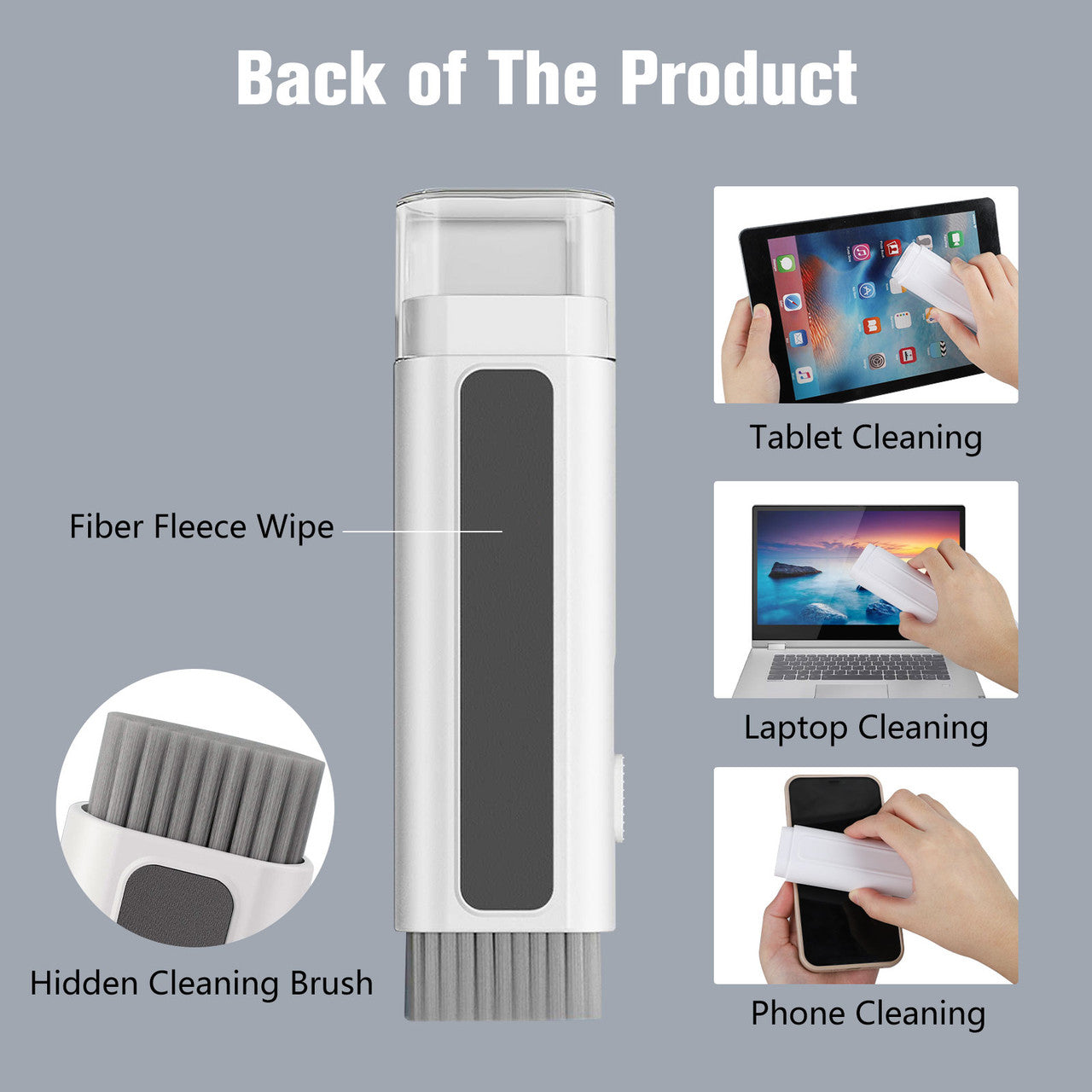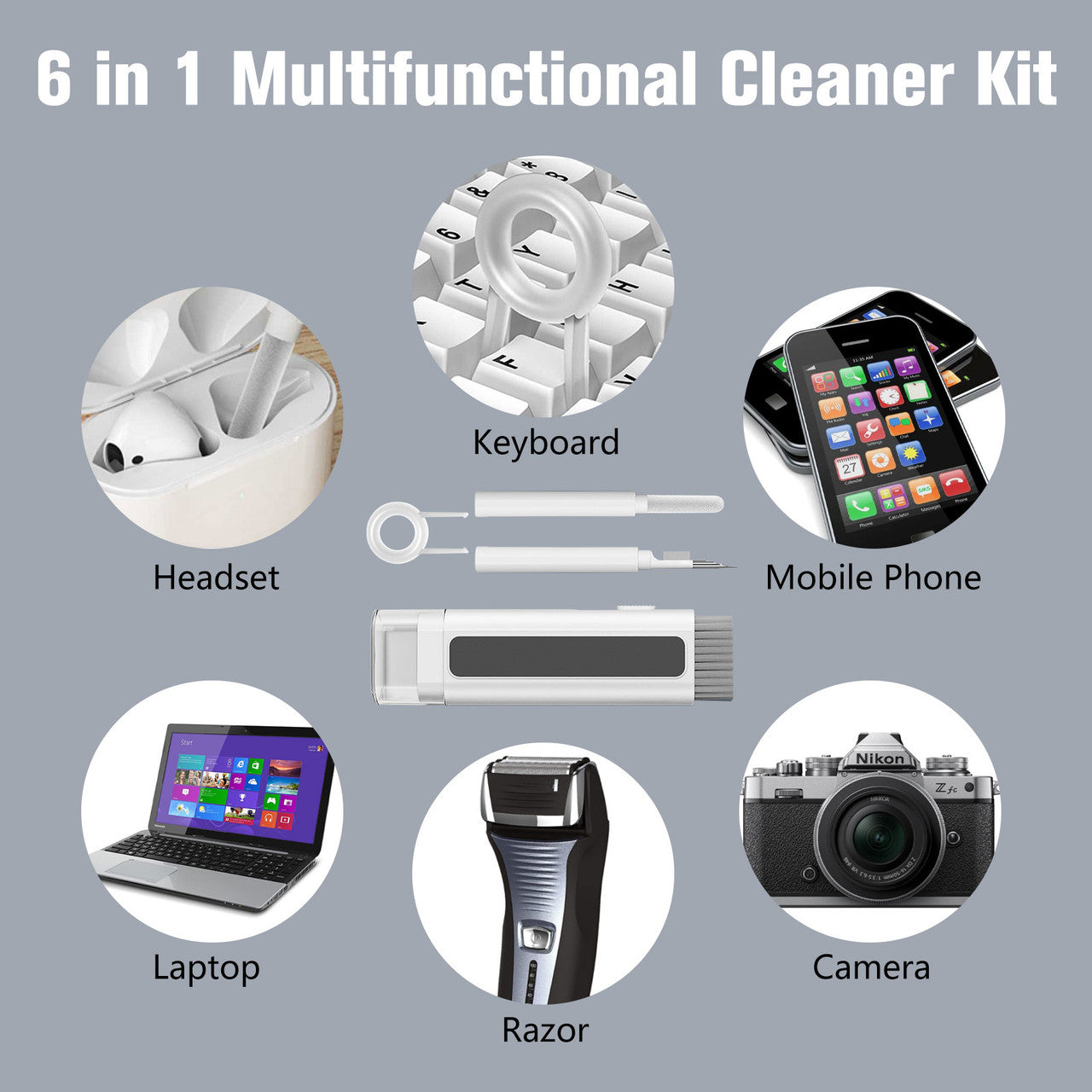 Product Features:● 6 in 1 Multifunctional Cleaner Kit: Electronic cleaning kit includes a cleaning pen for Airpods, flocking sponge brush, mini brush, high-density soft brush, fiber fleece swipe and keycap buckle. The kits can clean headphones, keyboards, PC monitors, phones, cameras, etc. ● Multifunctional: The metal nib can clean dust and dirt from the earbuds holes; a mini brush can clean the surface of the earphone mesh; a flocking sponge brush is used for cleaning the charging case and dirt which you can't reach out. ● Efficiently Clean the Screen: Spray an appropriate amount of cleaning liquid on the screen, and then wipe the screen with a fiber fleece swipe, it's so simple and efficient! The fiber fleece swipe can easily remove dirt from cell phones, computers, monitors, lenses, etc, and fingerprints. ● High-Density Soft Brush & Keycap Buckle: High-density brush has dense and moderately soft bristles, it's great for cleaning dust in various keyboards and monitor crevices. The keycap buckle allows for effortless removal of the keys for deeper cleaning(note: the keycap buckle only fits mechanical keyboards). ● Easy to Carry and Store: Laptop cleaner kit is smaller than the palm of your hand, you can take it anywhere. Various cleaning tools can meet your different needs, it's a good tool for (more...)