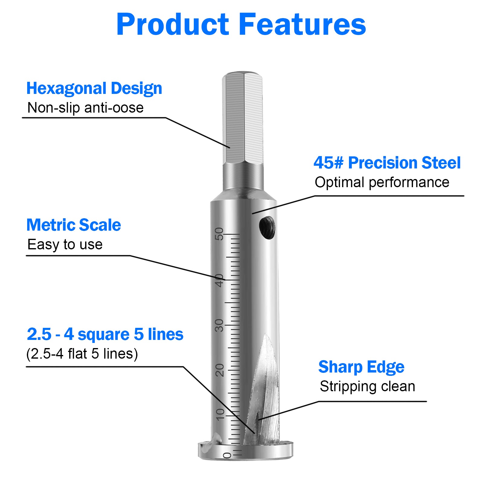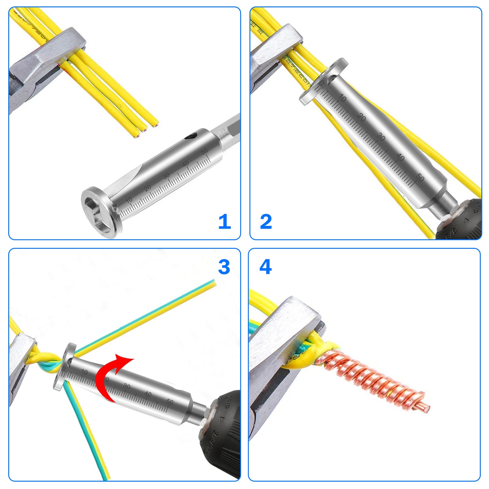 Simplify your wire twisting tasks with our premium Wire Twisting Tool crafted from high-quality 45# precision steel. Effortlessly stripping and twisting wires simultaneously, this versatile tool accommodates various specifications (2.5-4 square 5 lines) and offers manual and electric drill modes for different applications. The built-in metric scale ensures accurate wire length measurement, enhancing precision for a variety of projects. Easy to use, it streamlines the workflow by efficiently peeling off wire insulation, making it ideal for professionals and DIY enthusiasts alike.