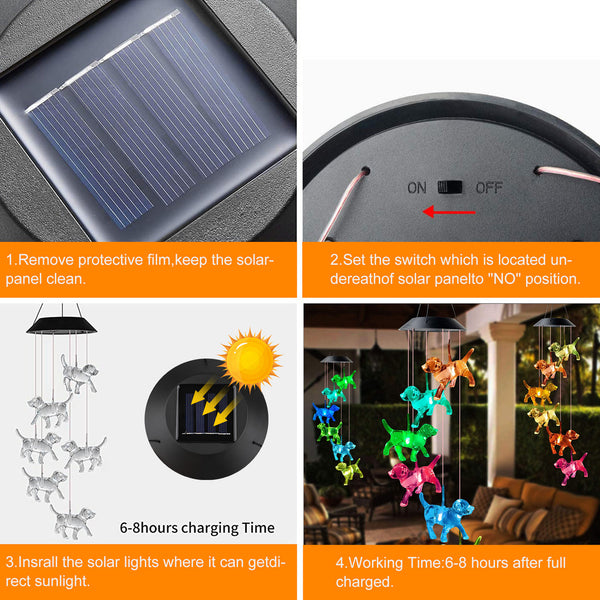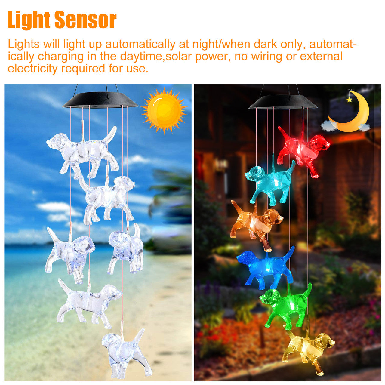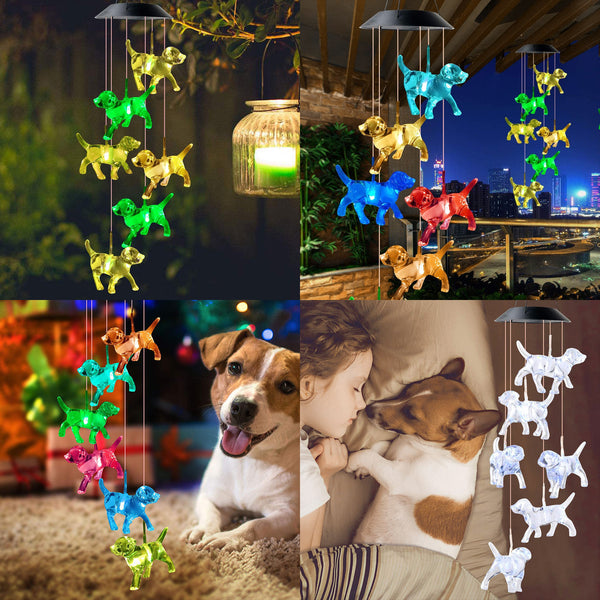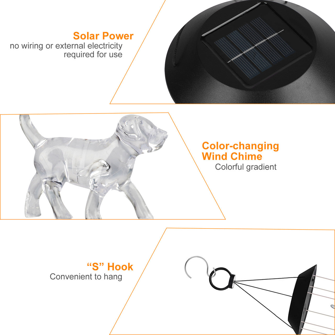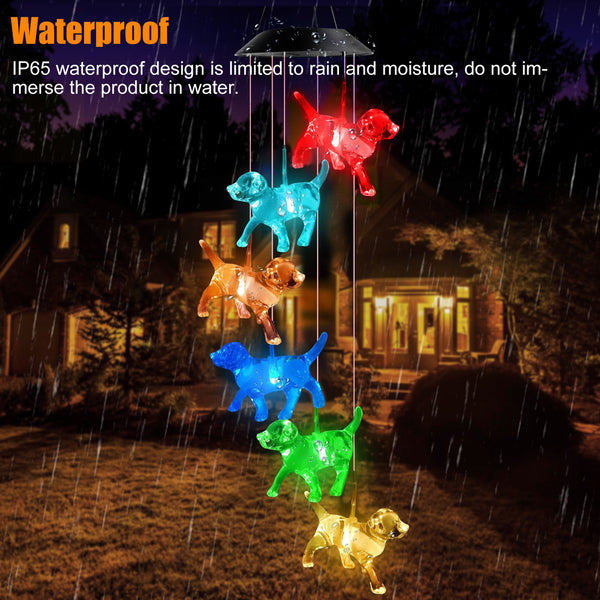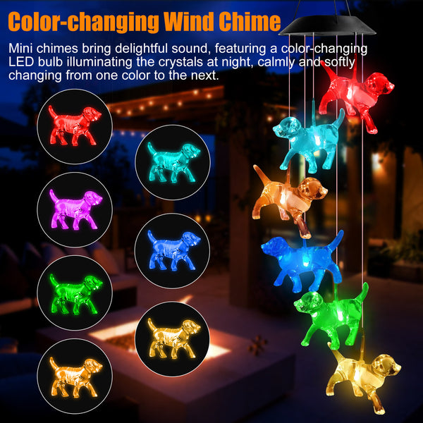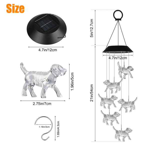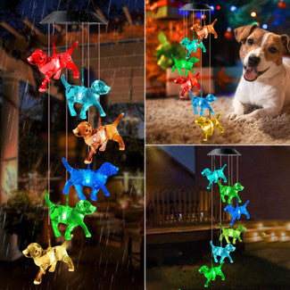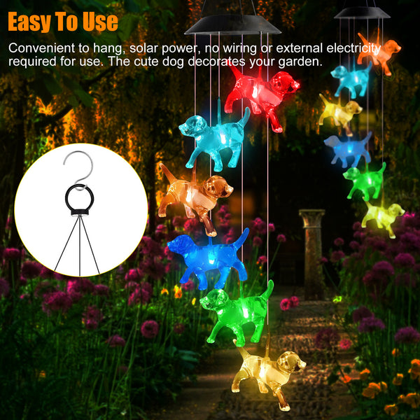 Crystal Dog Solar Powered Waterproof Color Changing LED Wind Chimes for Home, Garden