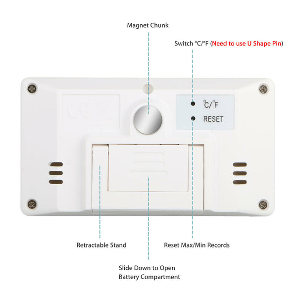 The outdoor sensor will automatically transmit temperature and humidity signal to the Weather Station after batteries inserted.