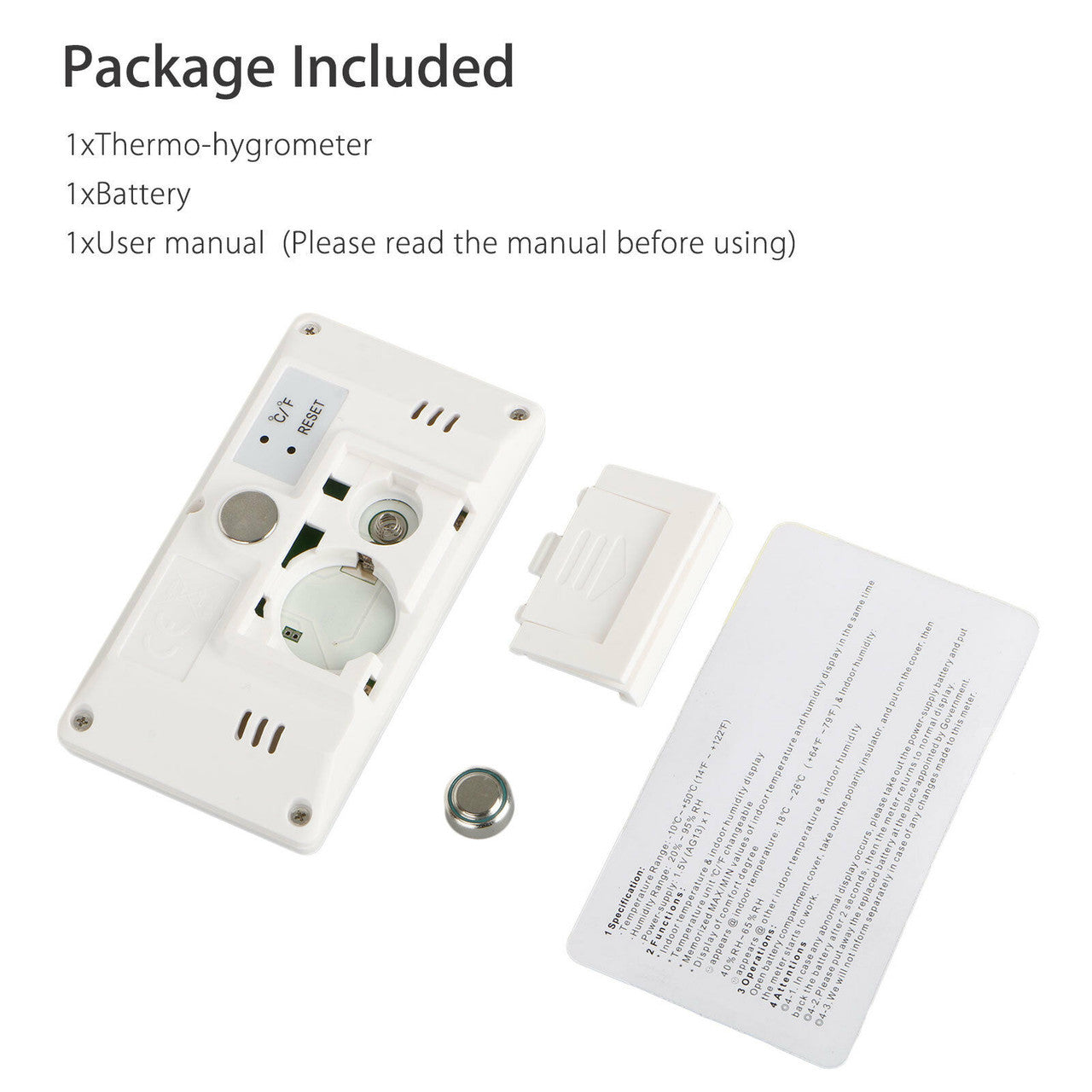Indoor temperature measurement ranges: -9.9°C (15°F) to 50°C (122°F)
