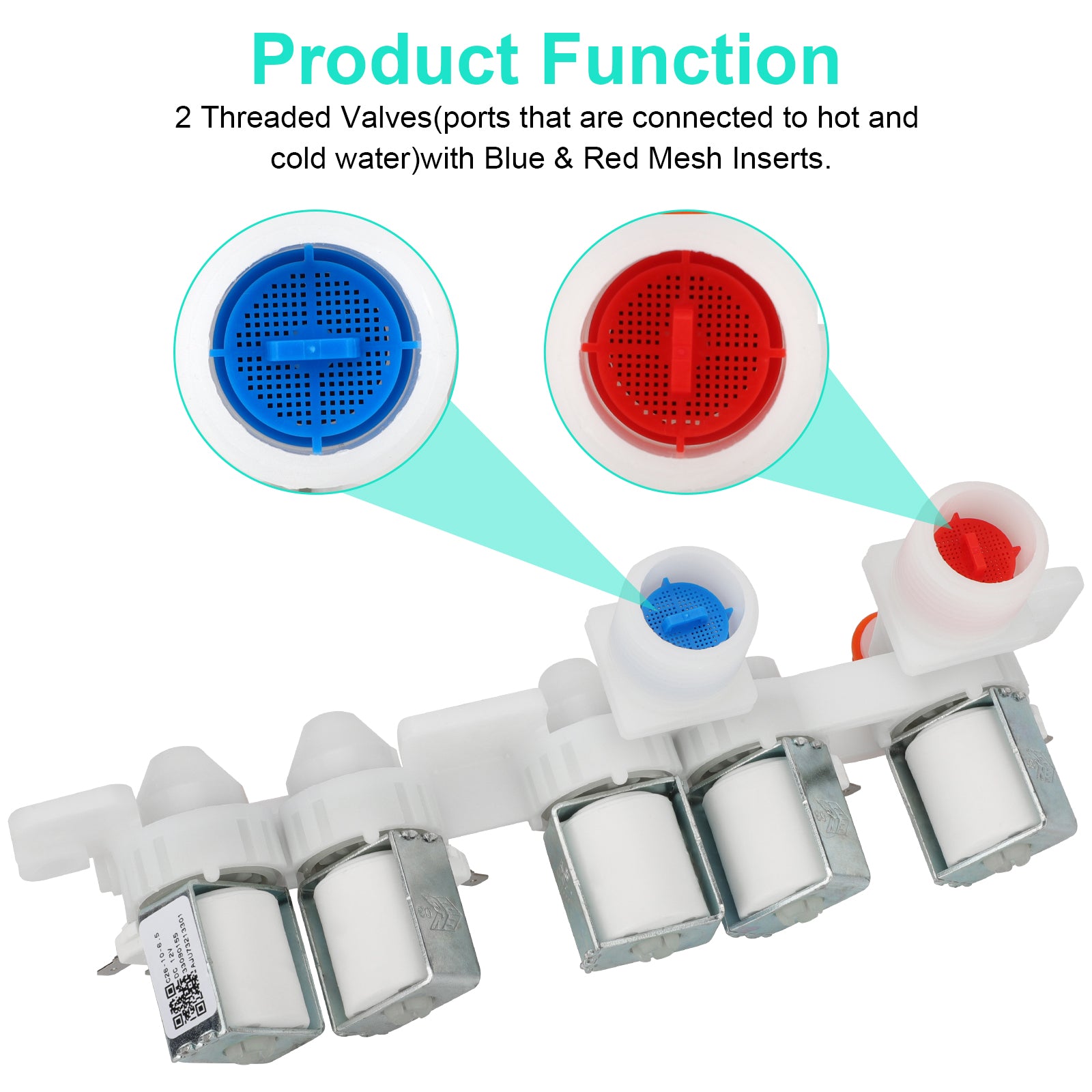 AJU73213301 Water Inlet Valve - Replacement for LG Kenmore Washer, Fits LG Washer Water Inlet Valve 5221EA1008F, AJU73213301, AJU75152601, 33090048, TAW35618287, and more