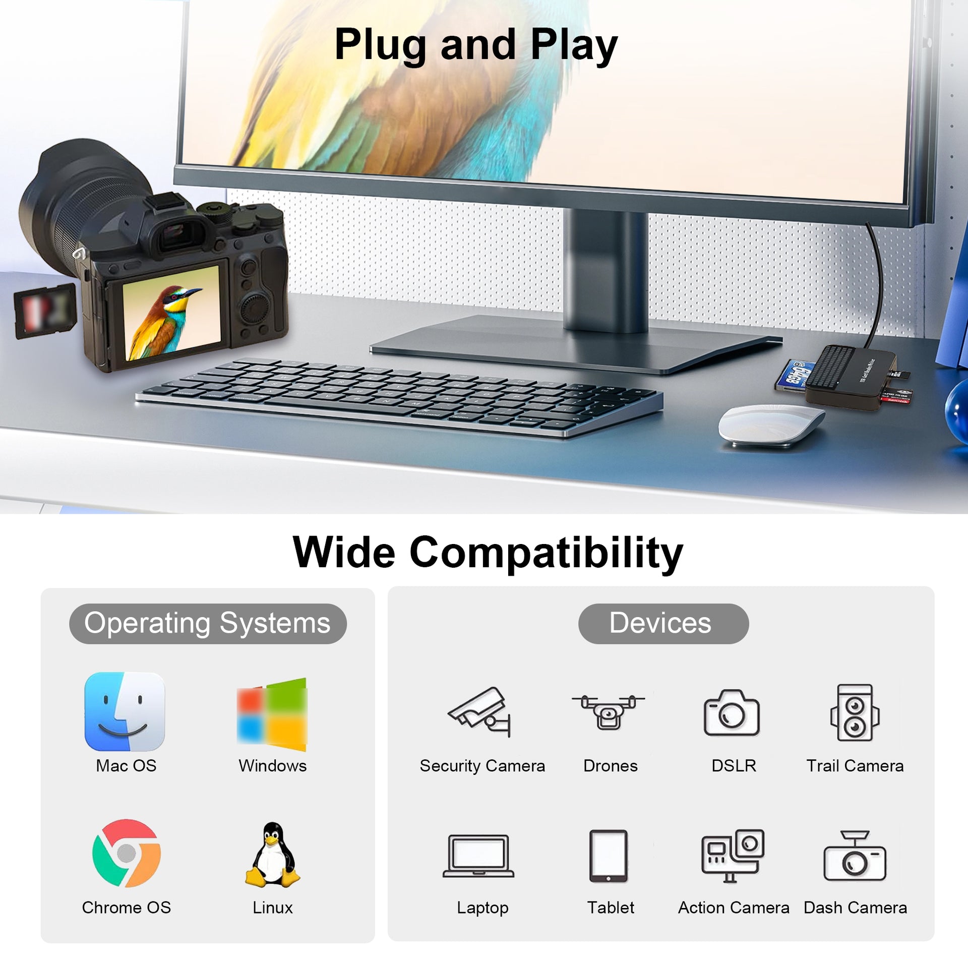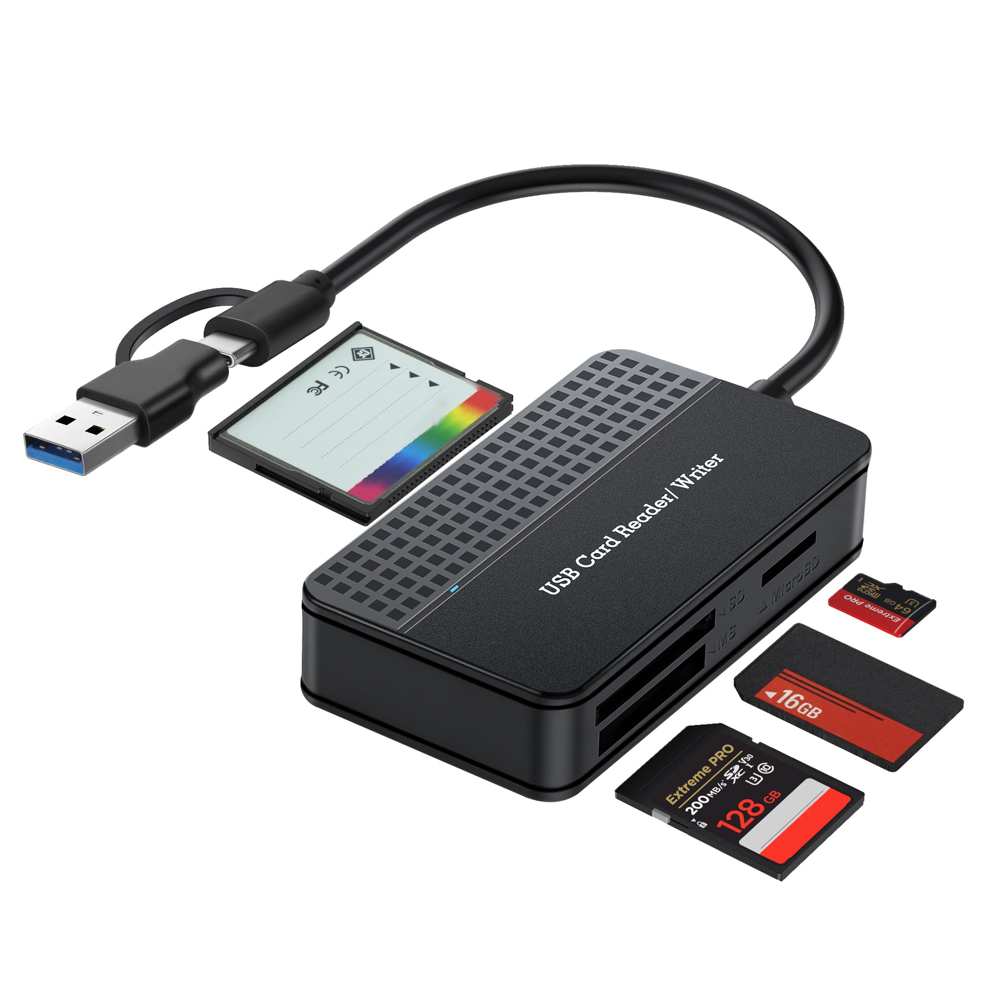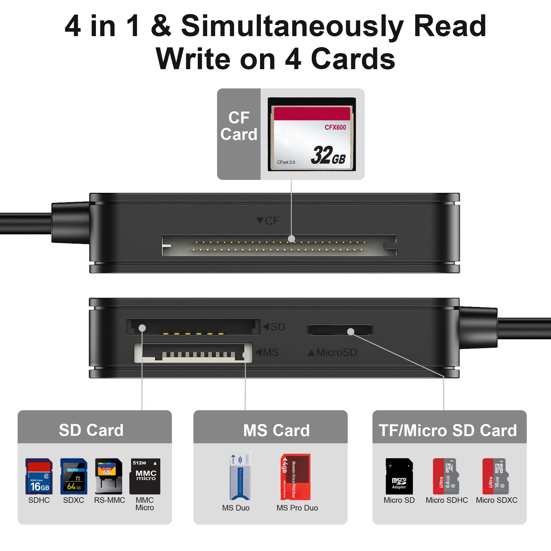 4-in-1 USB Card Reader/Writer - Compact High-speed Usb 3.0 Multi Card Reader for SD/SDHC, Micro SD, CF, XD, MS/Pro & Duo Cards (Black)